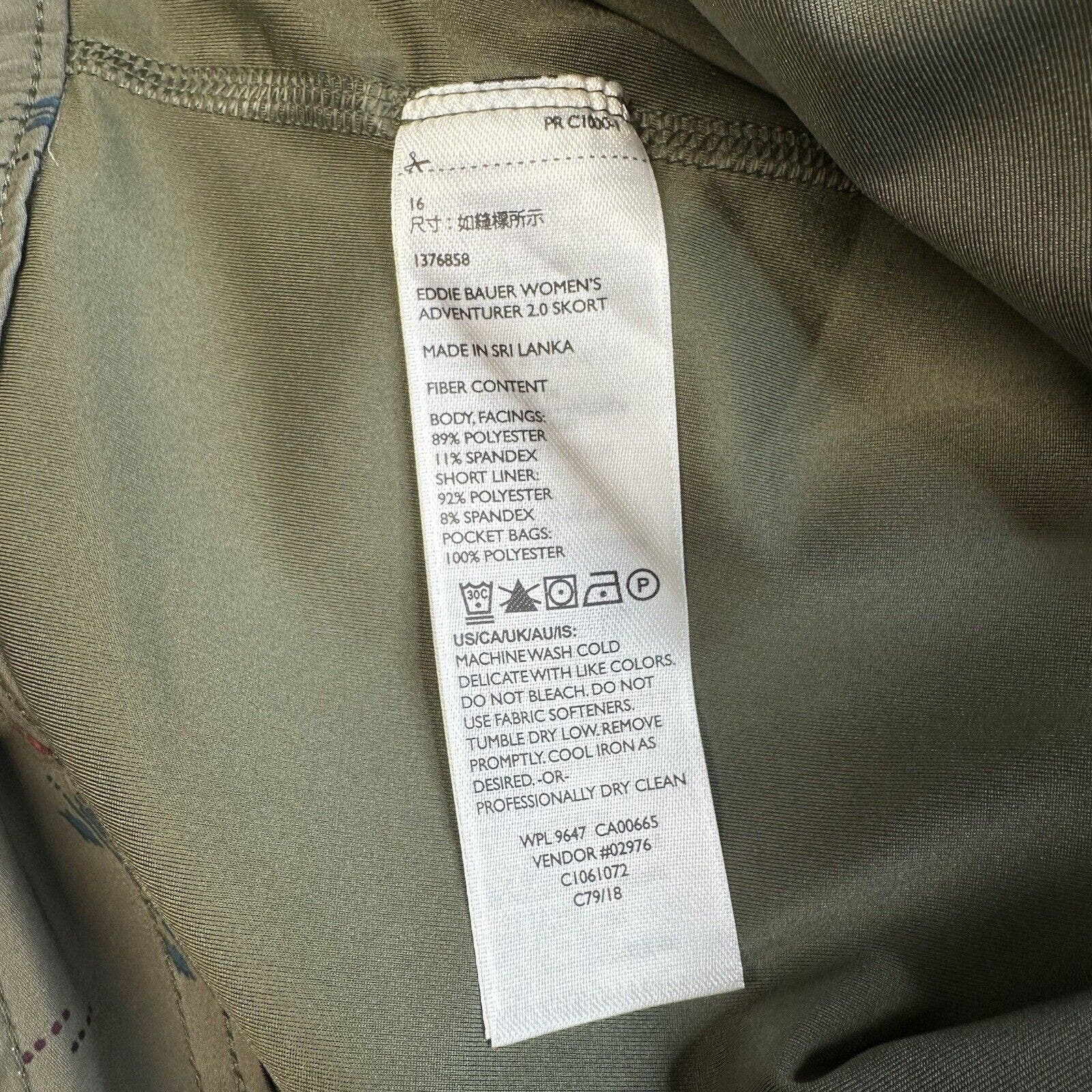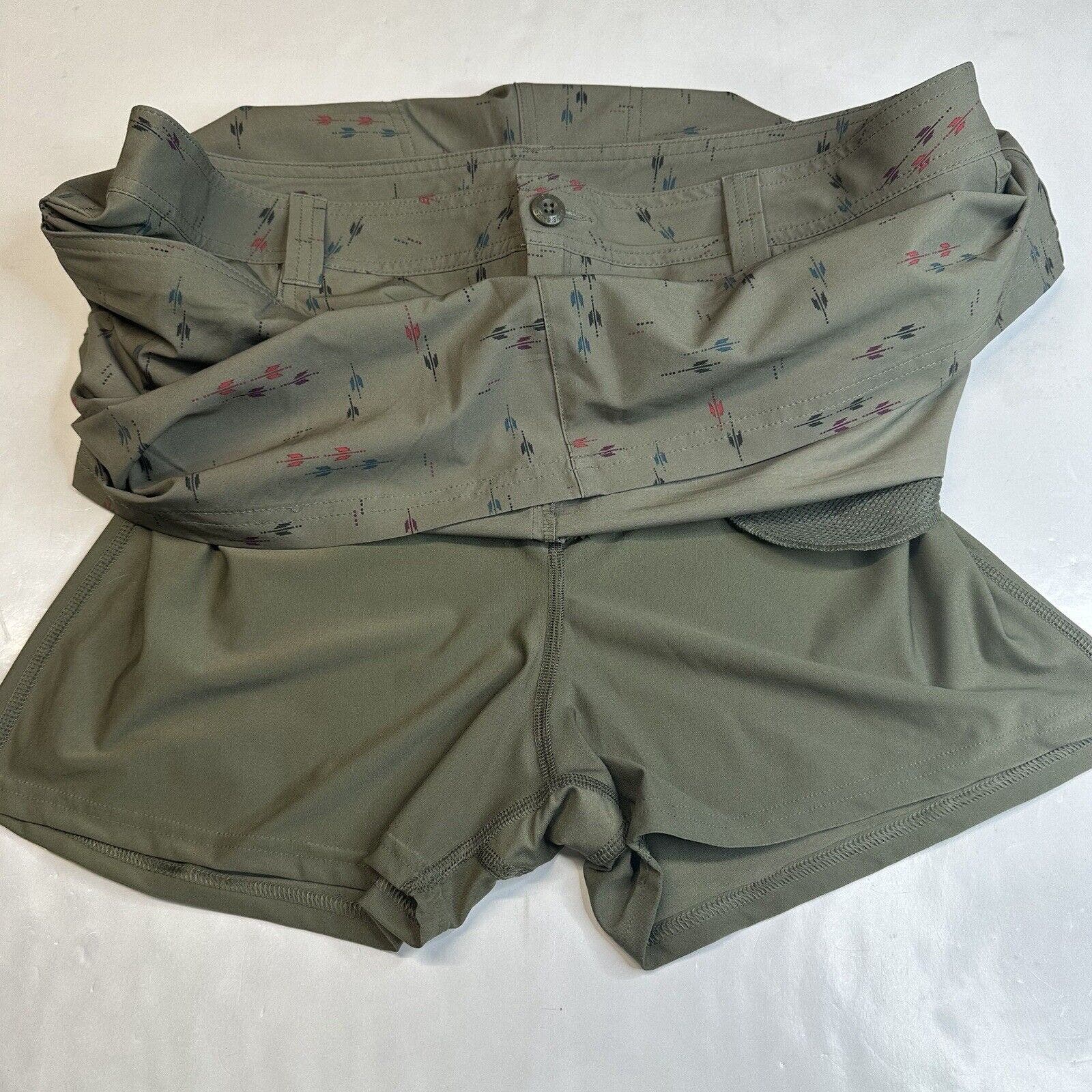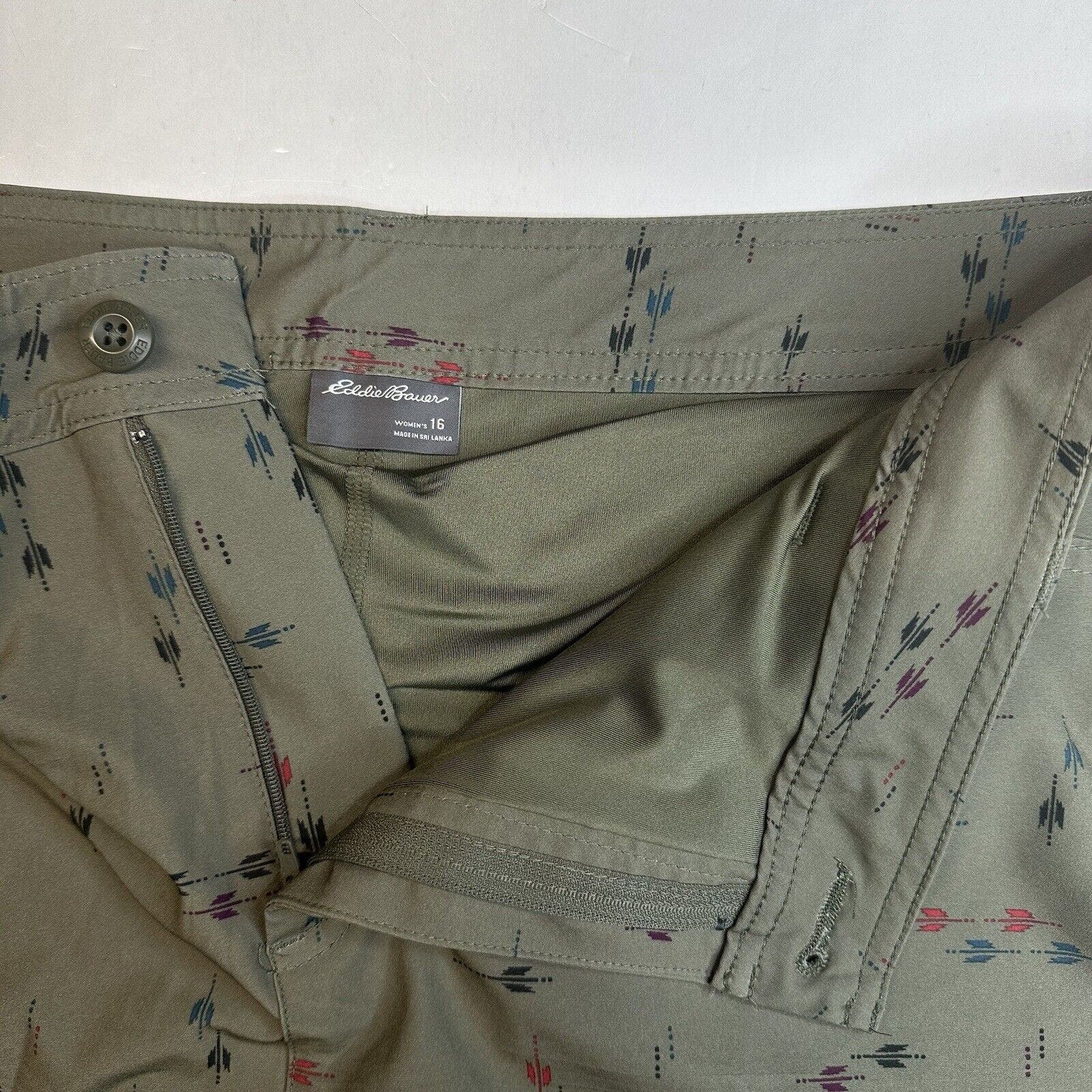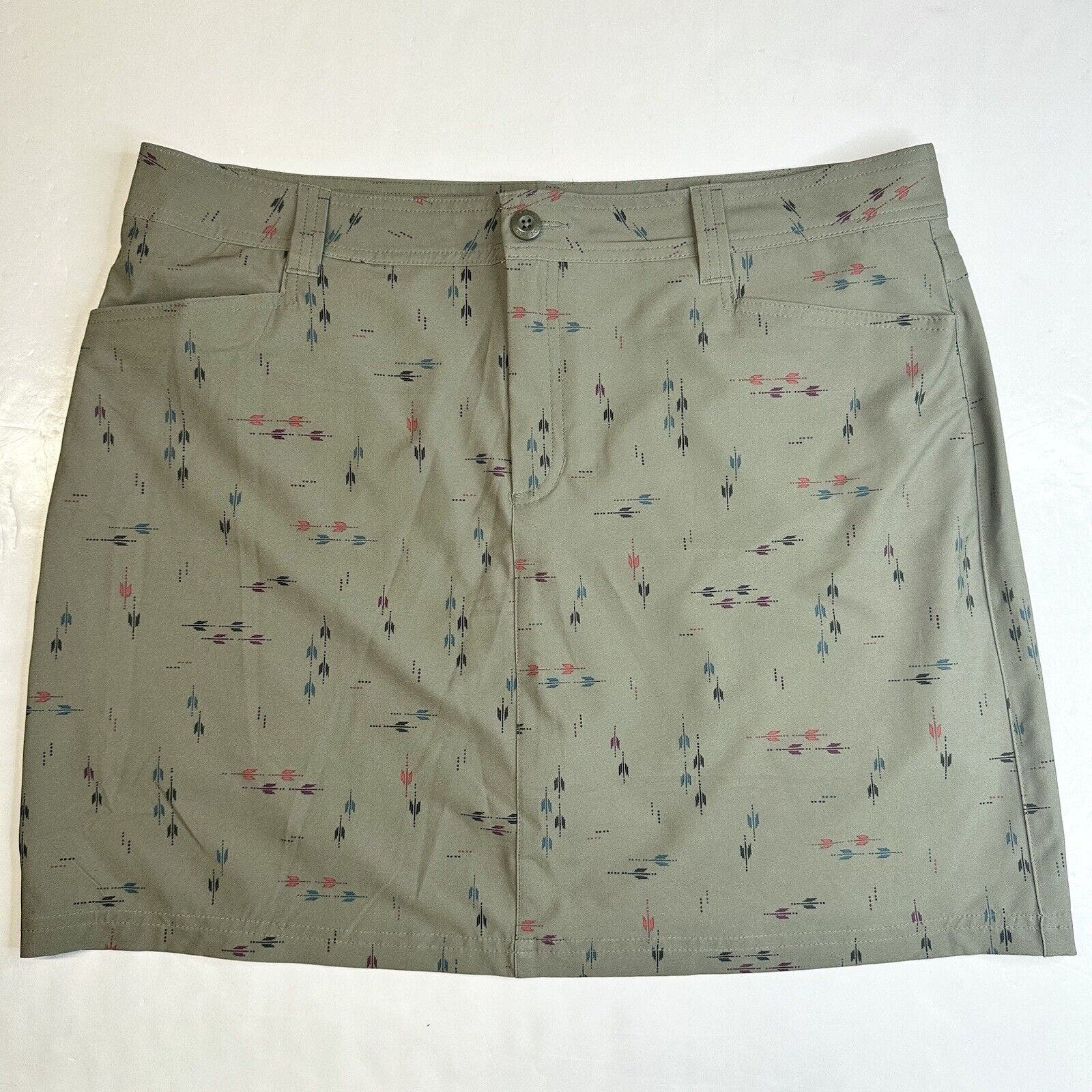 Eddie Bauer Skort Womens 16 Olive Green Arrow Pattern Active Casual Golf Hiking Skirt With Built In Shorts EUC