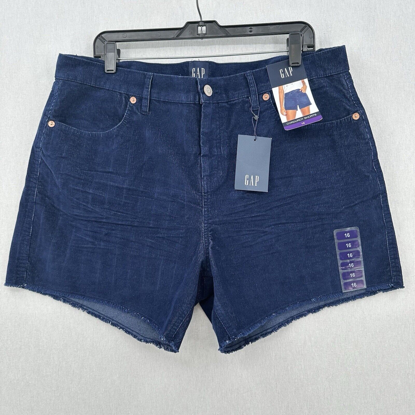GAP Shorts Womens 16 Corduroy Relaxed Cut Off Dark Blue Fray Hem Preppy NEW