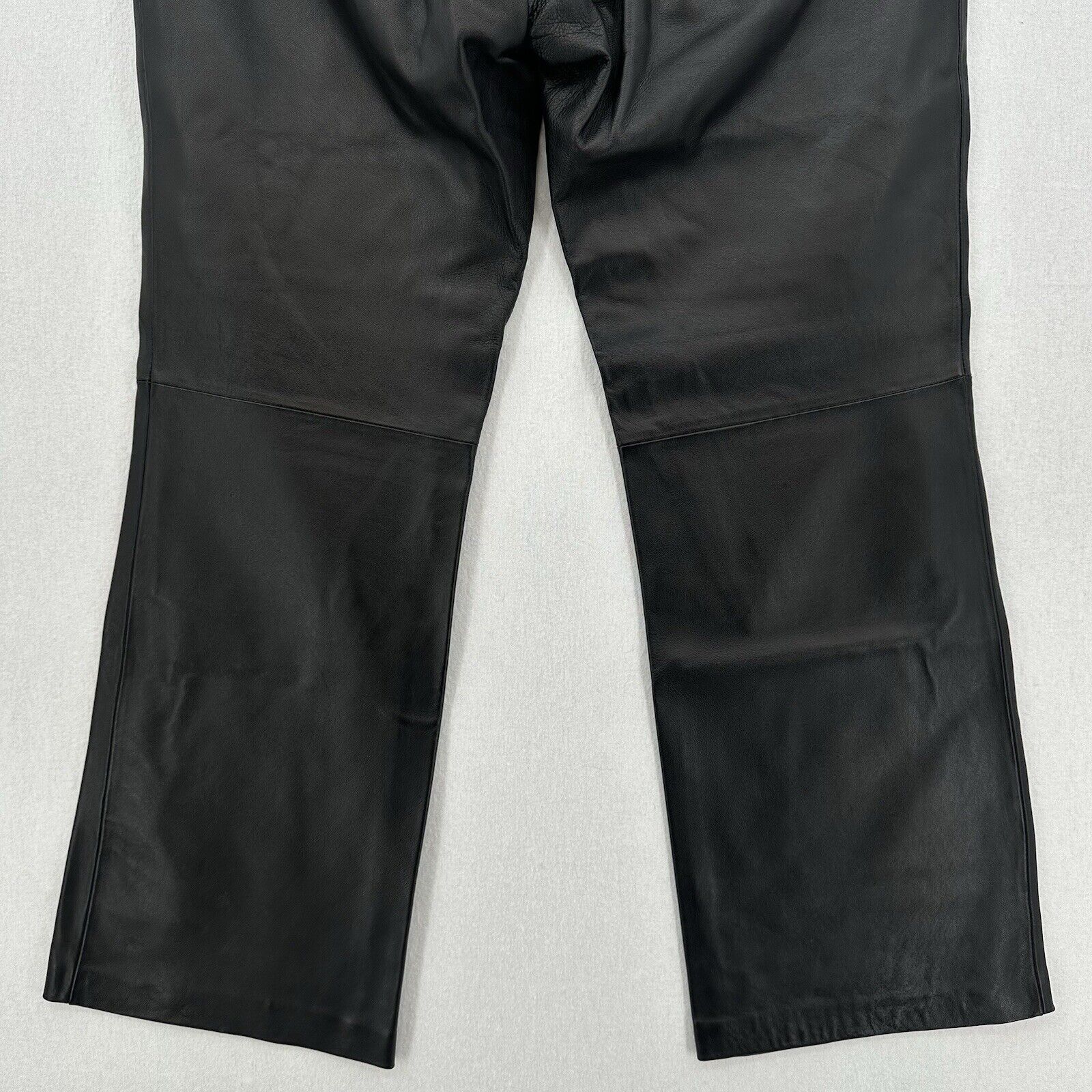 Giovanni Navarre Leather Pants Womens 14 Black Wide Flared Leg Lined Baddie Moto