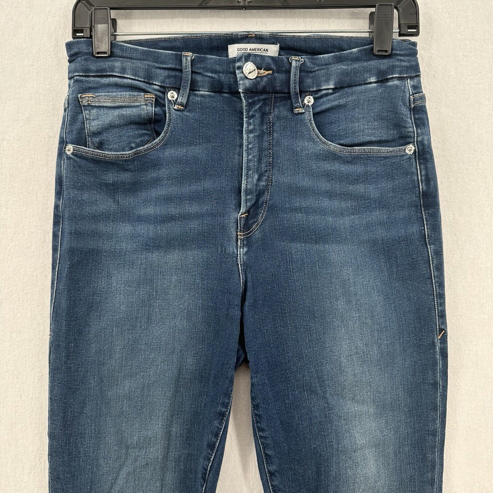 Good American Jeans Womens 8 29 Good Waist Crop Skinny Ankle Blue Denim Dark Wash Raw Hem Fray