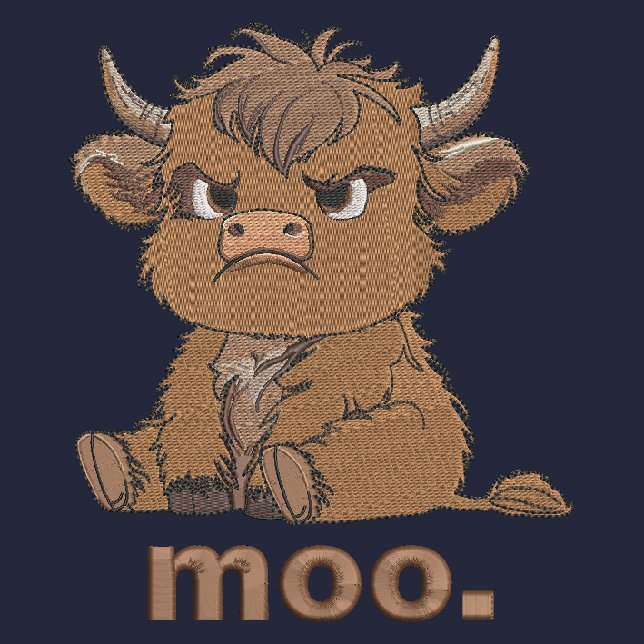 Grumpy Fluffy Scottish Highland Cow Embroidered Youth Crewneck Sweatshirt Cozy Pullover Long Sleeve Top Farm Animal Lover Cute Gift