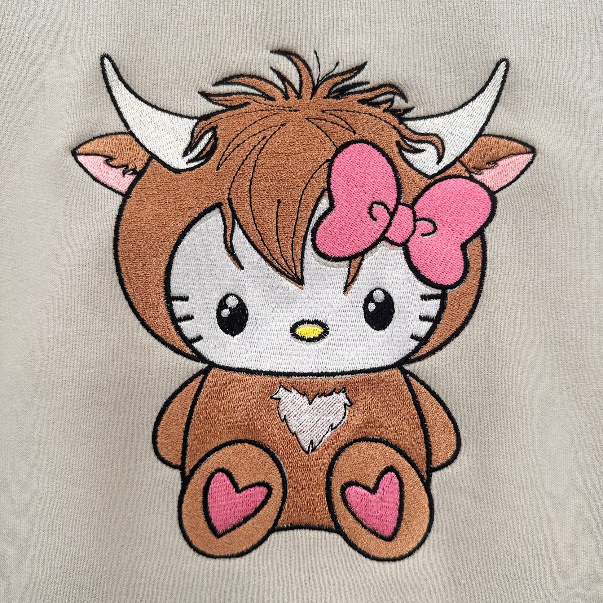Hello Kitty Highland Cow Embroidered ADULT Hoodie / Crewneck Sweatshirt Unisex