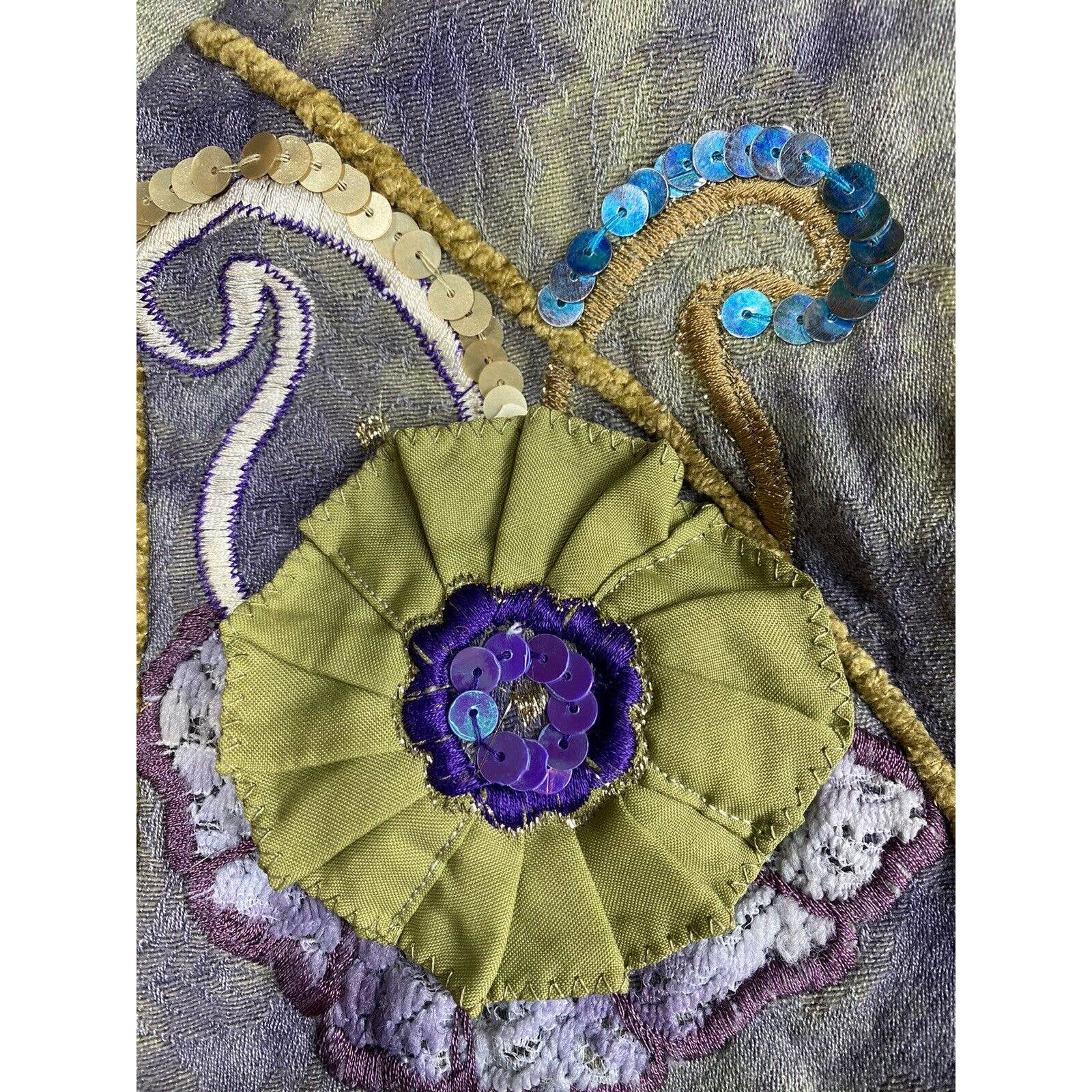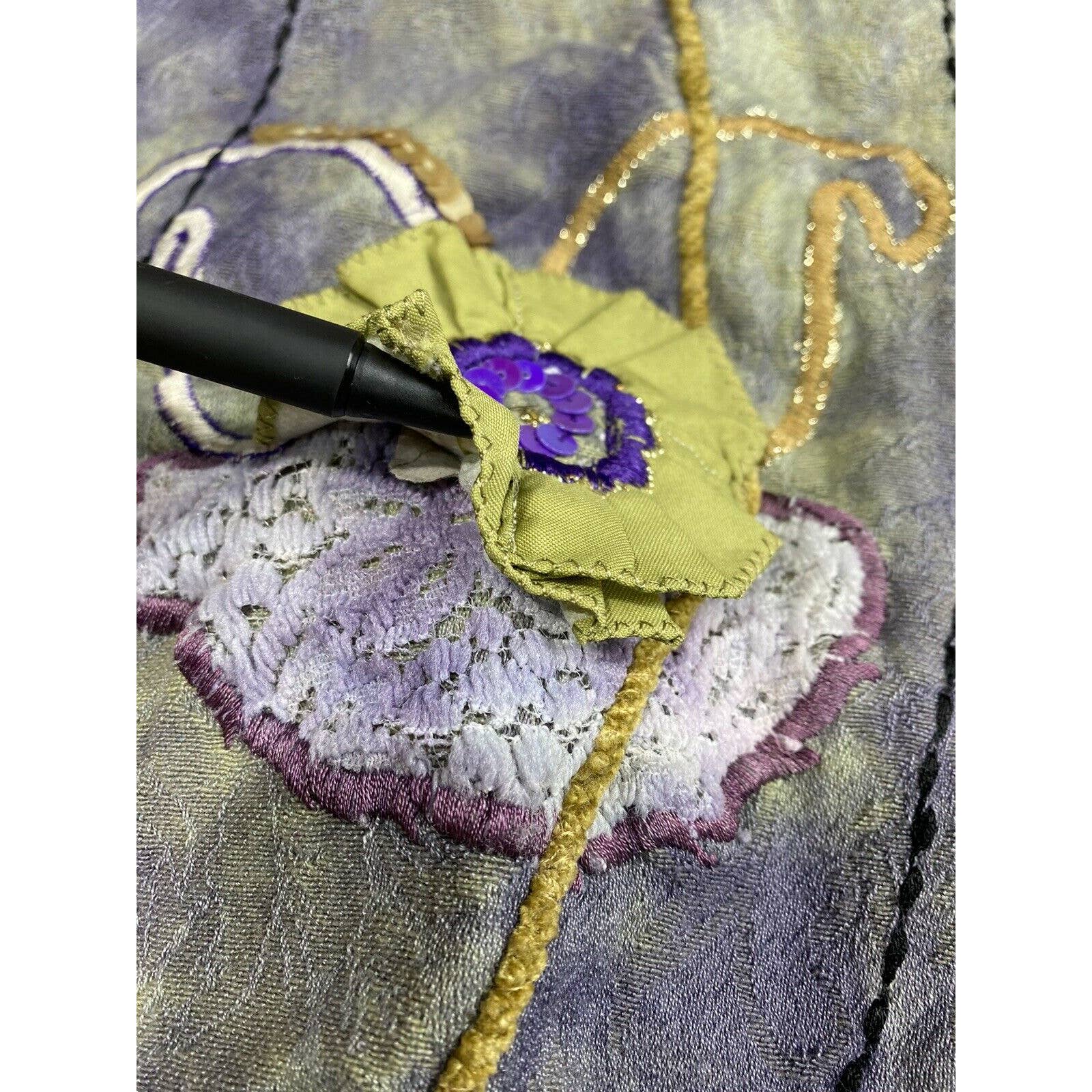 Indigo Moon Jacket Sz Small ART TO WEAR Sequins Flowers Embroidered Green/Purple