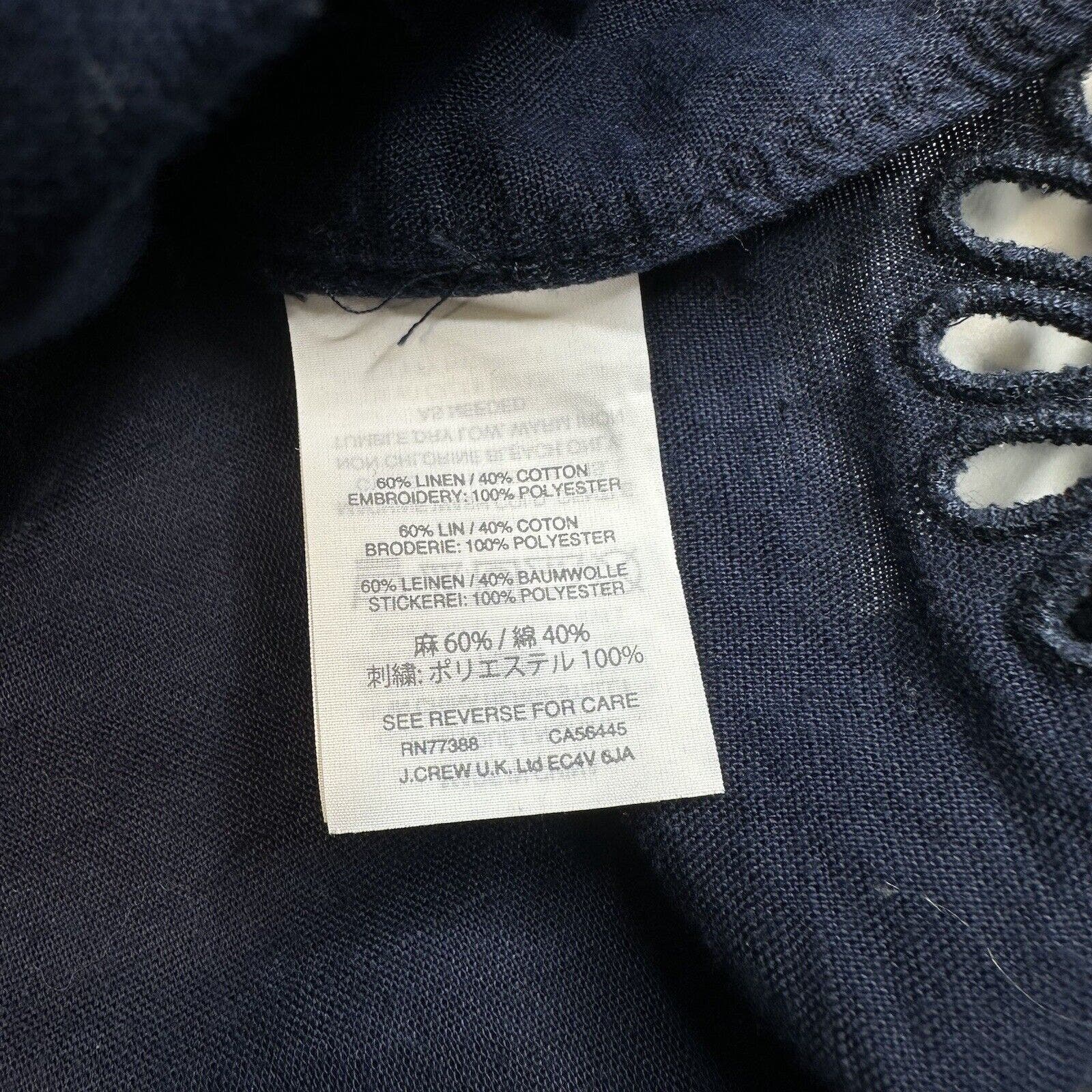 J Crew Dress Medium Navy Blue Linen Cotton Lightweight Womens Short Sleeve Eyelets Elastic Top And Cuffs Coastal Beachy Summer Vacation Breathable **Shown On A Size 6 Mannequin**