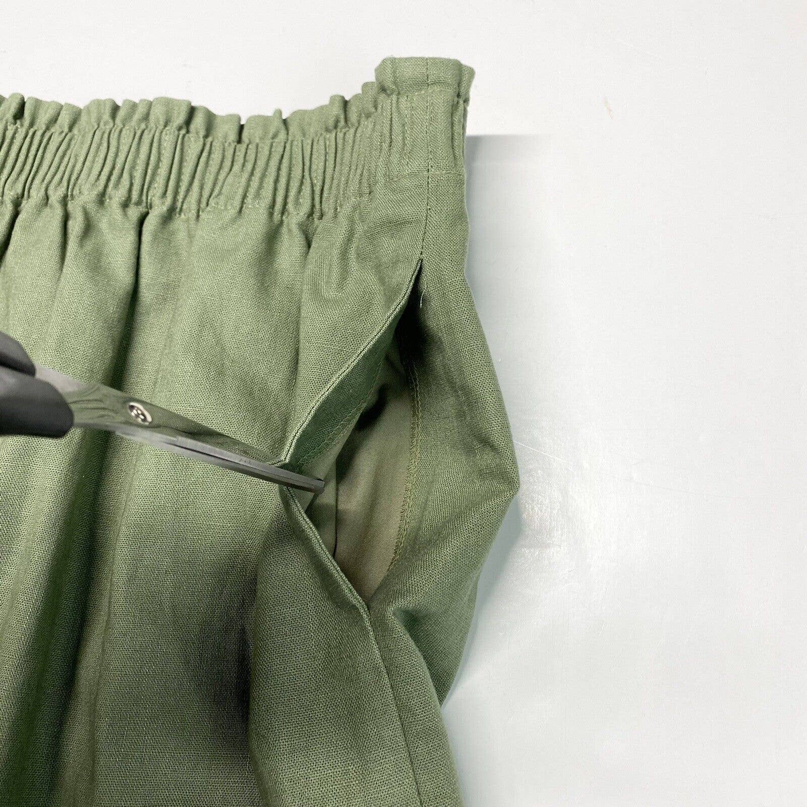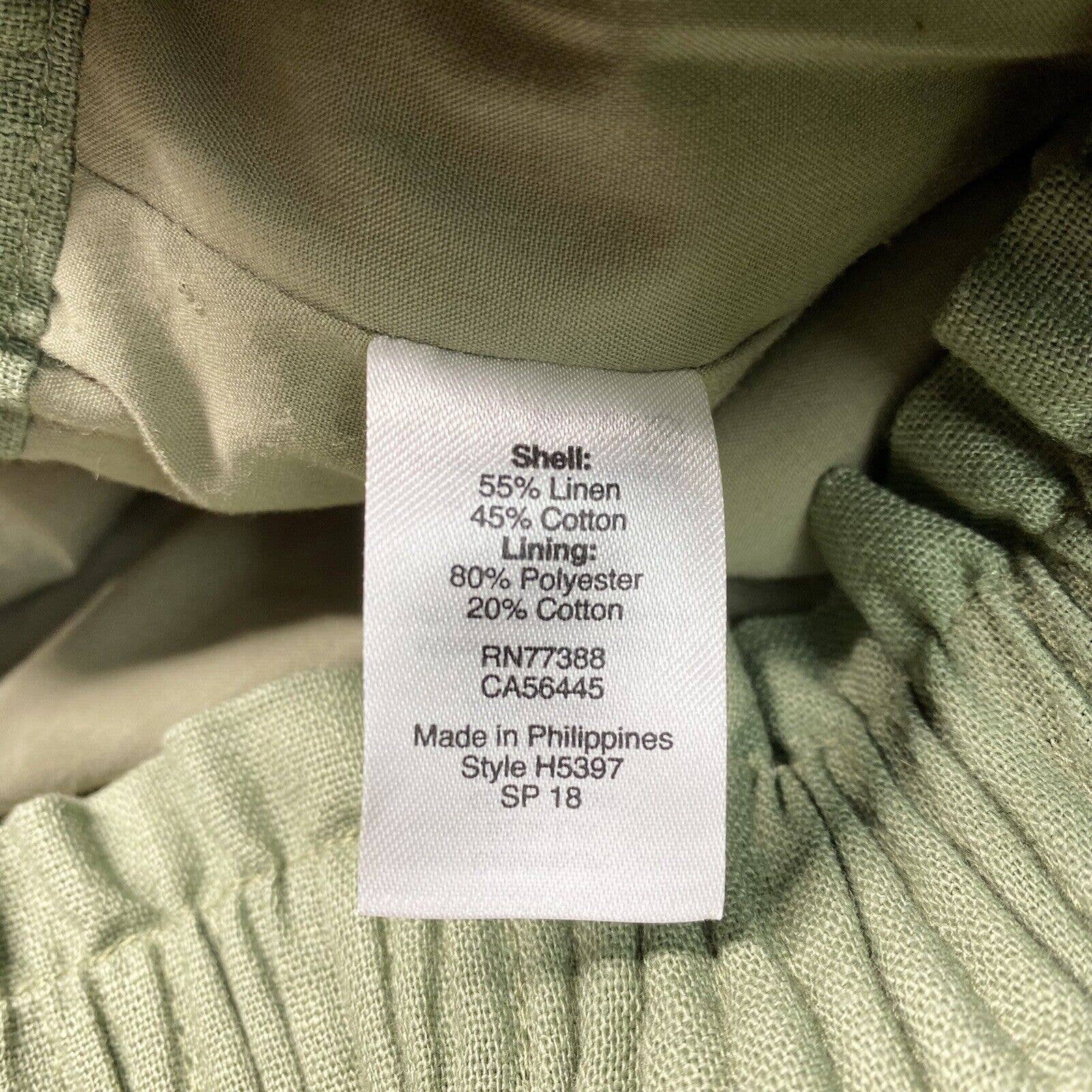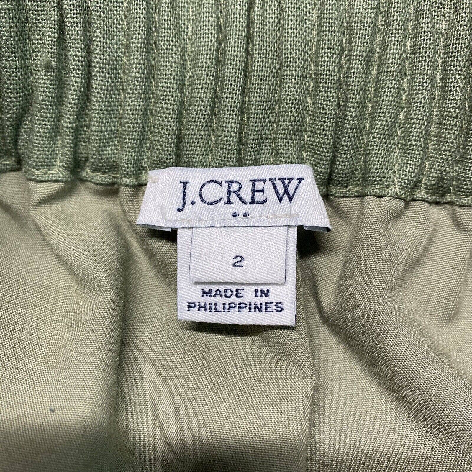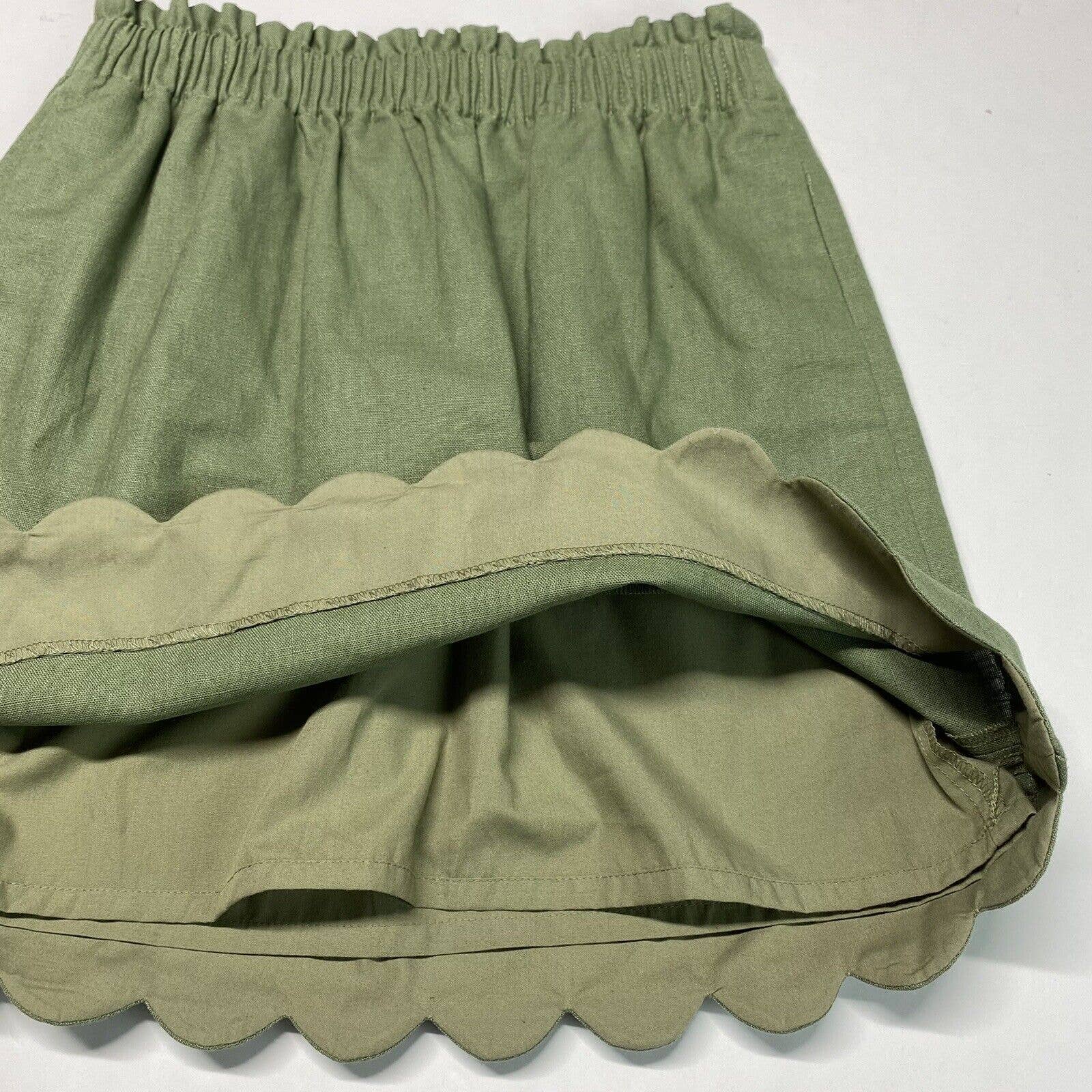 J. Crew Linen Cotton Blend Pull On Mini Skirt Sz 2 Womens Green Lined Short Skirt With Scalloped Hem, Elastic Waist And Pockets. Summer Beach Vacation