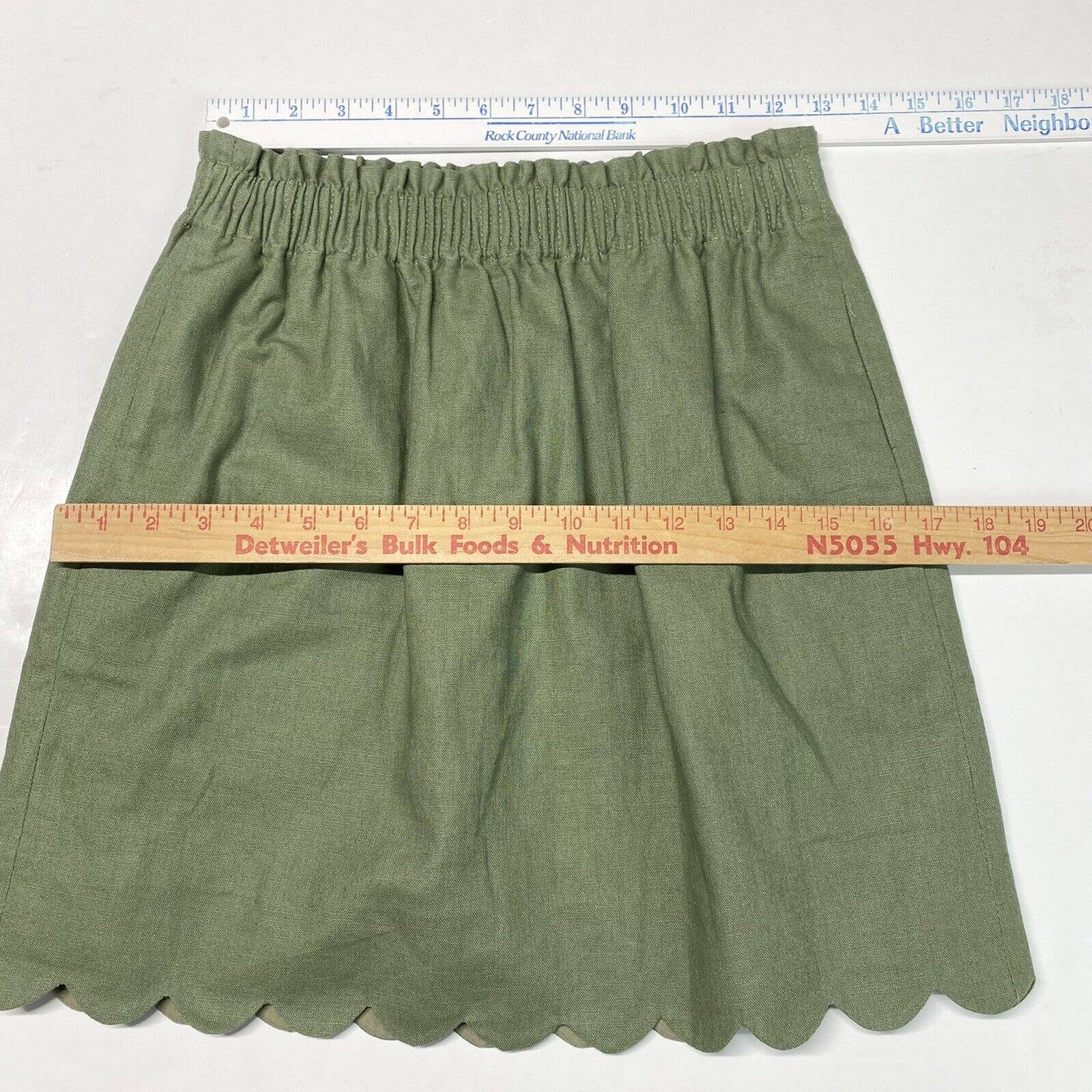 J. Crew Linen Blend Pull On Mini Skirt Sz 2 Green Lined Scalloped Hem Pockets