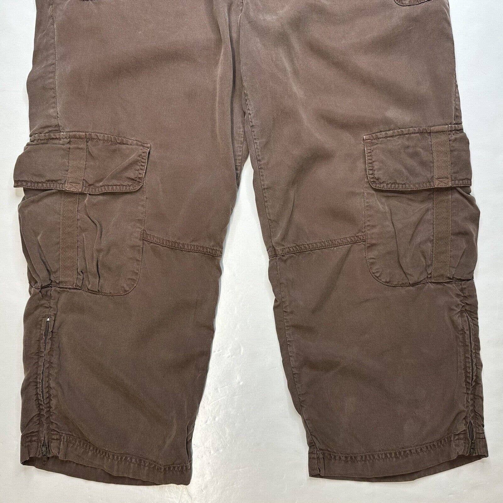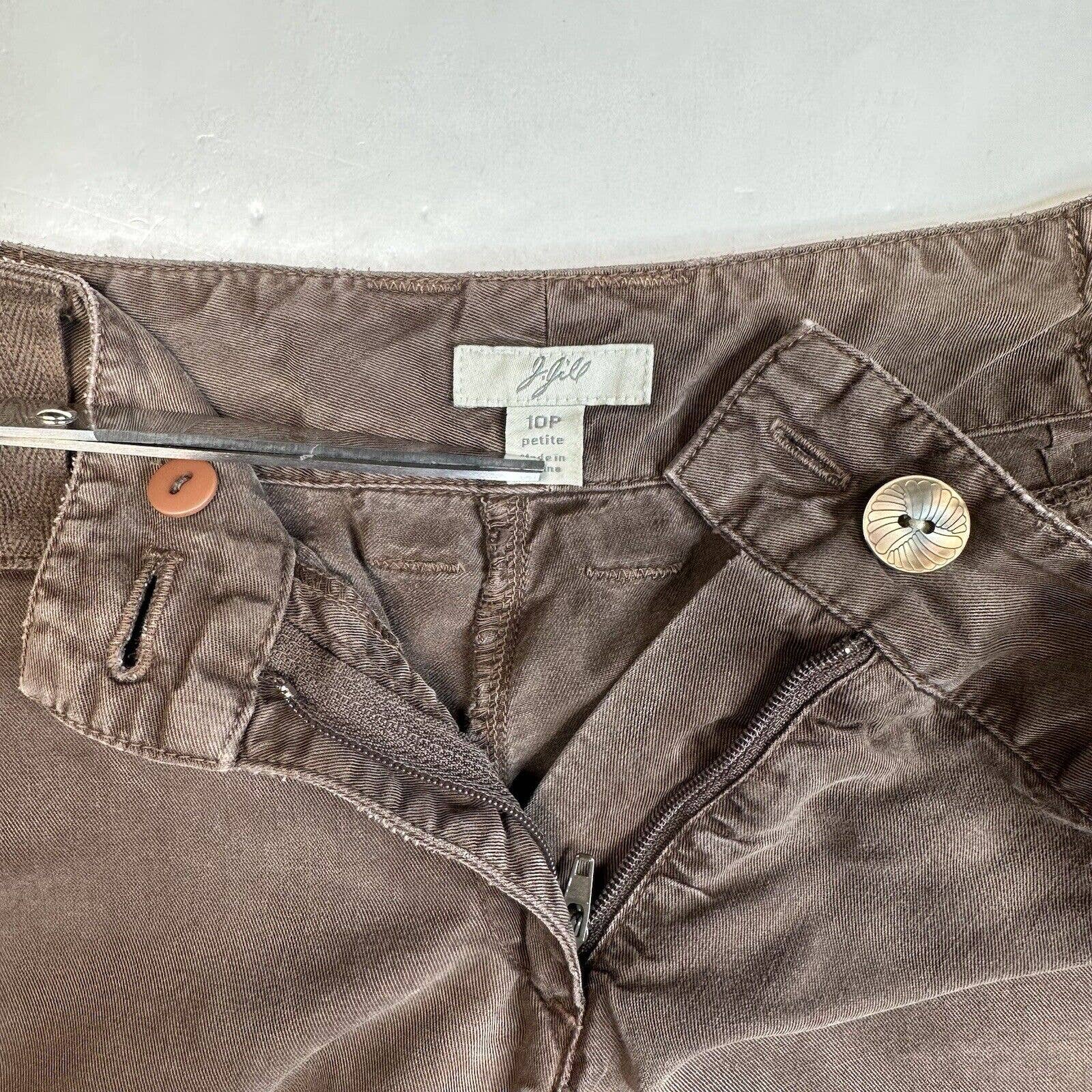 J Jill Cargo Crop Pants Womens 10 Petite 10P Brown 100% Tencell/Lyocell Lounge Weekend House Casual Vacation Leisure Straight Leg Cropped Pant With Zipper Closure.