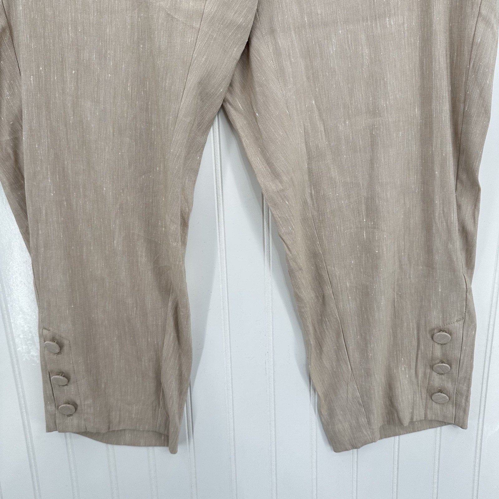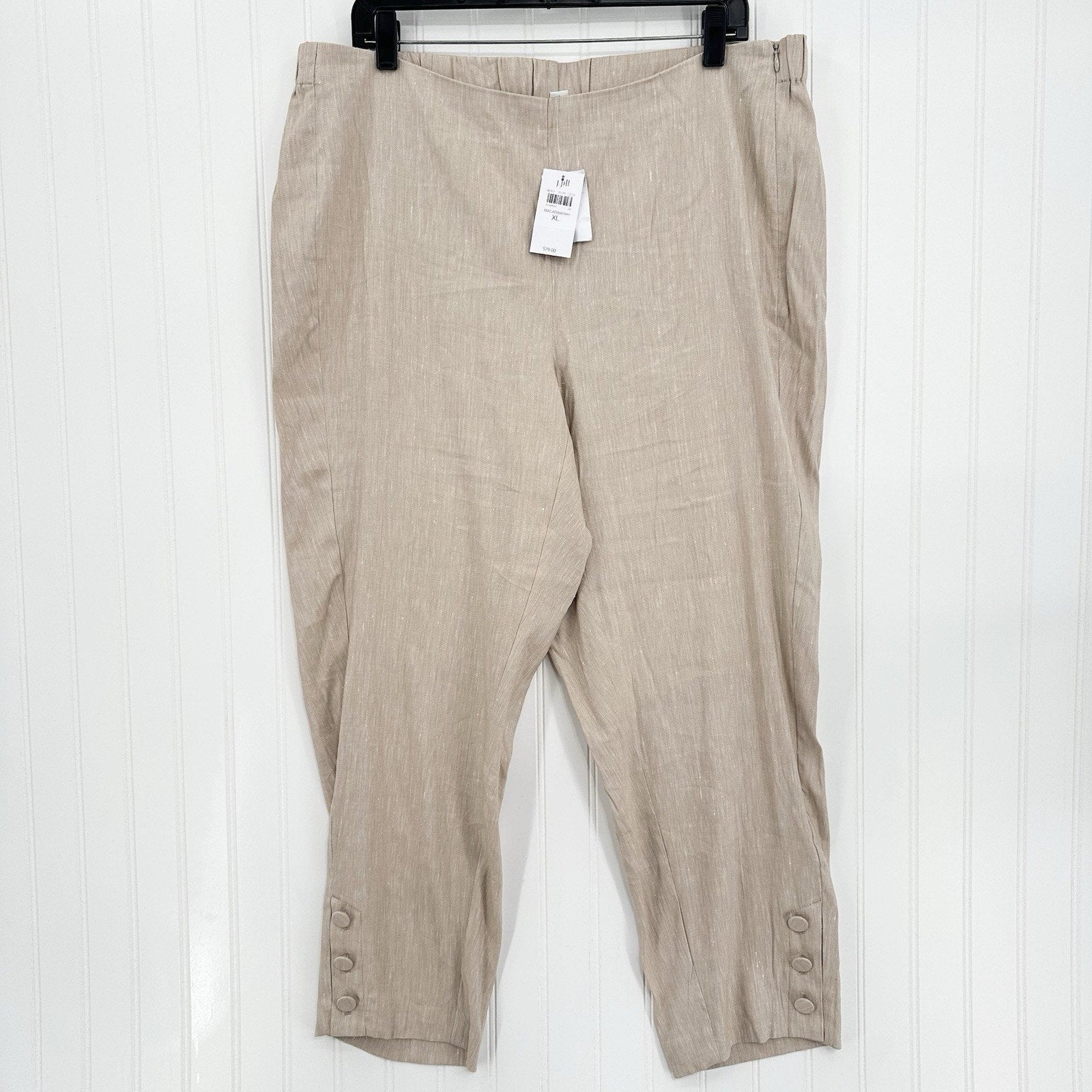 J Jill Pants Womens XL Linen Blend Stretch Beige Straight/Tapered Ankle Side Zipper Accent Buttons On Bottom Hem Area Do Not Open Coastal Beach Minimalist NEW Summer Casual Lounge Resort Vacation