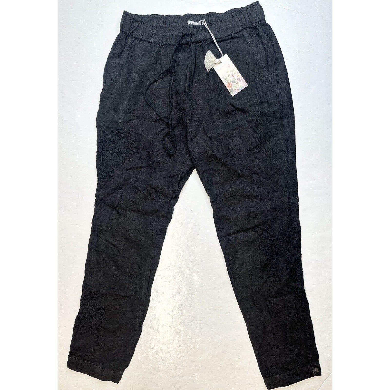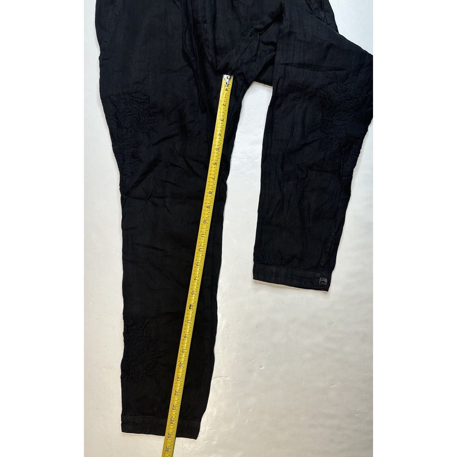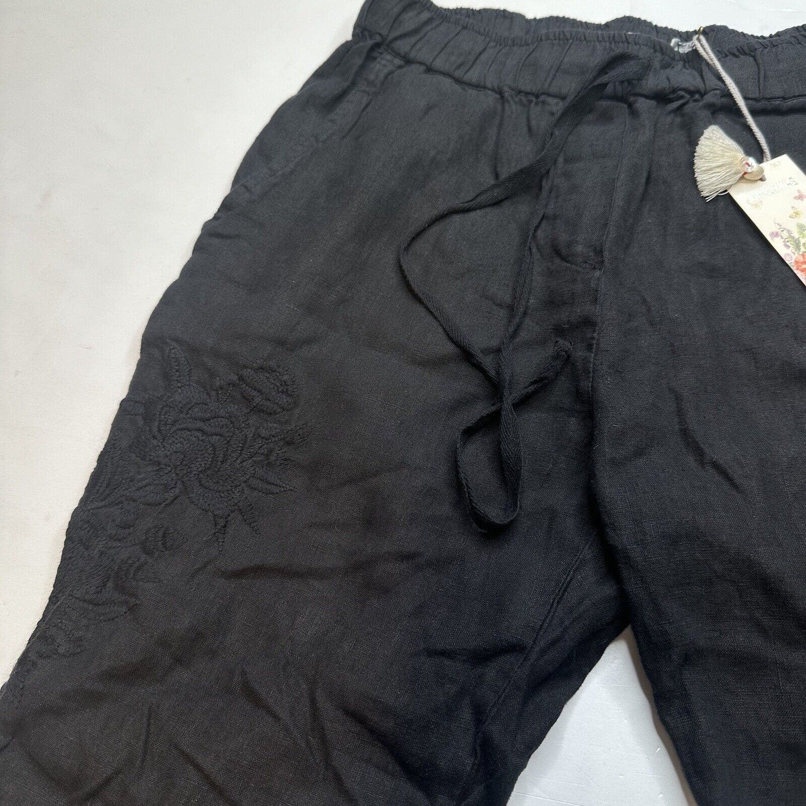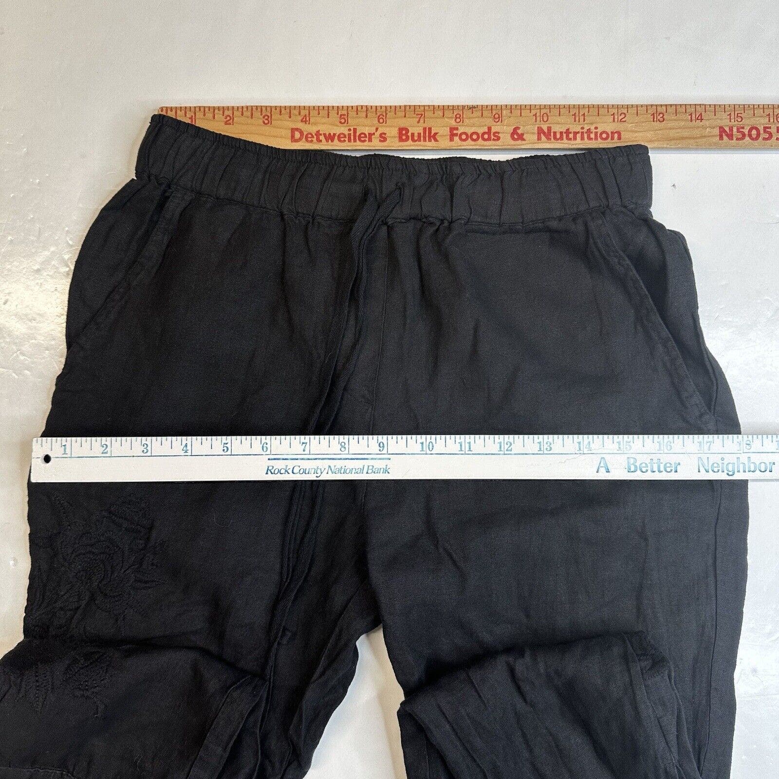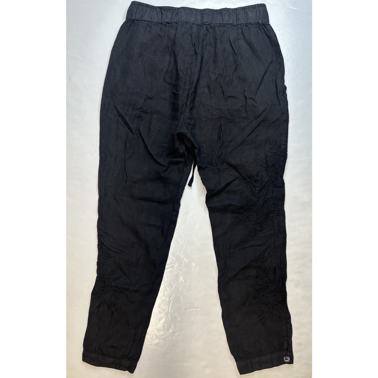 Johnny Was Sadie Jogger Womens XS Black 100% Linen Pull On Pants Floral Embroidery NEW. Summer Casual Coastal Vacation Beach Lounge Boho