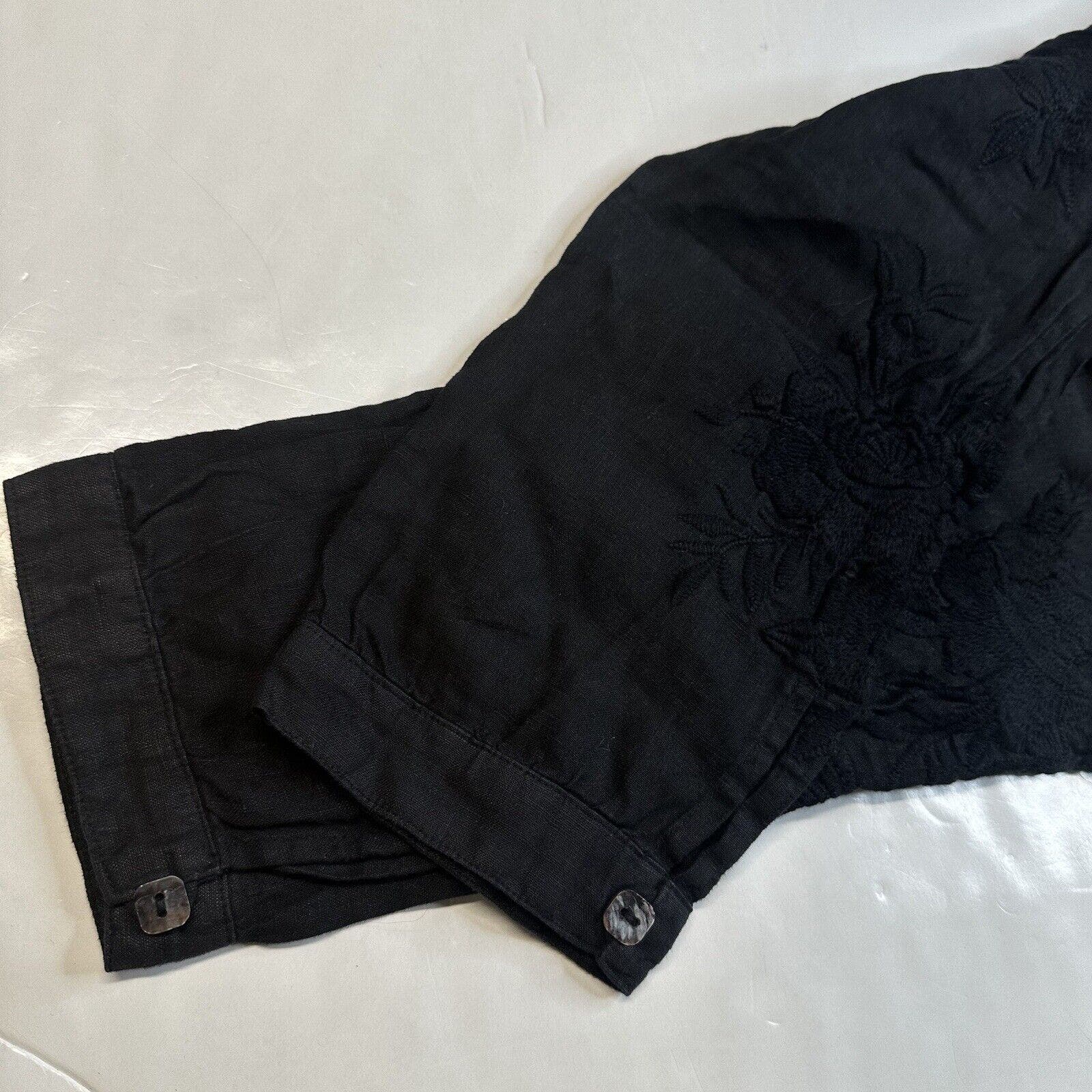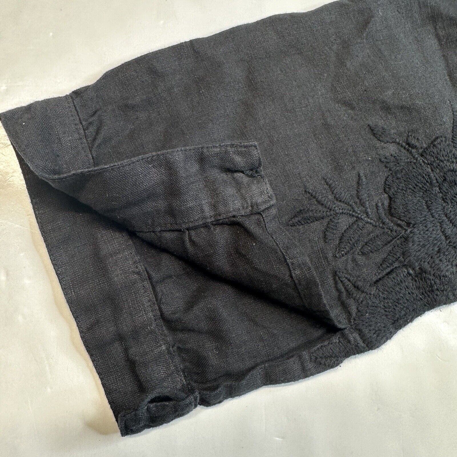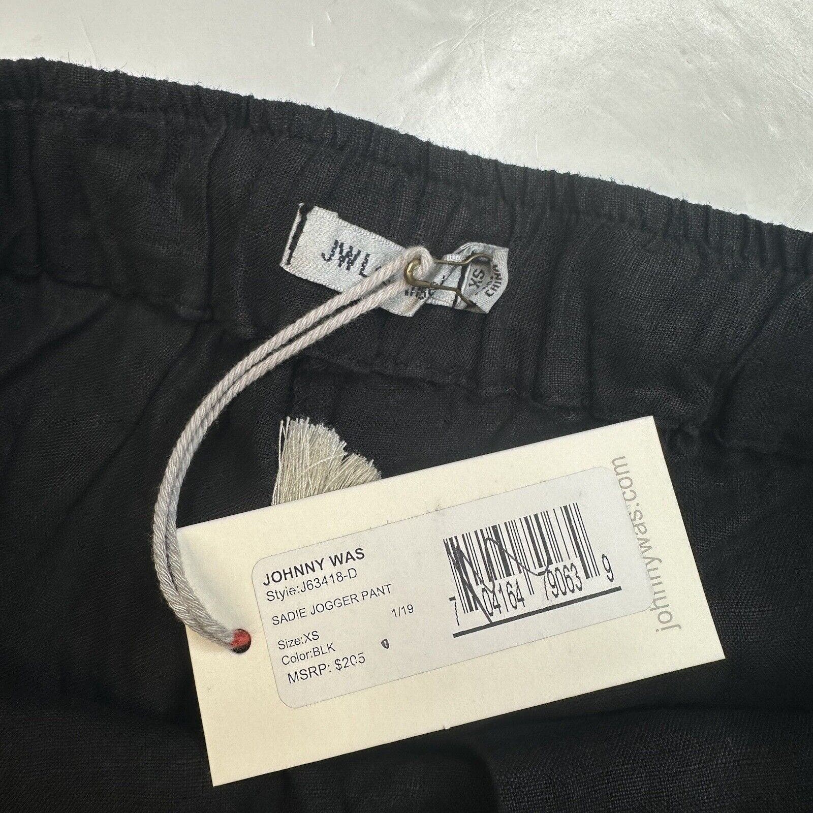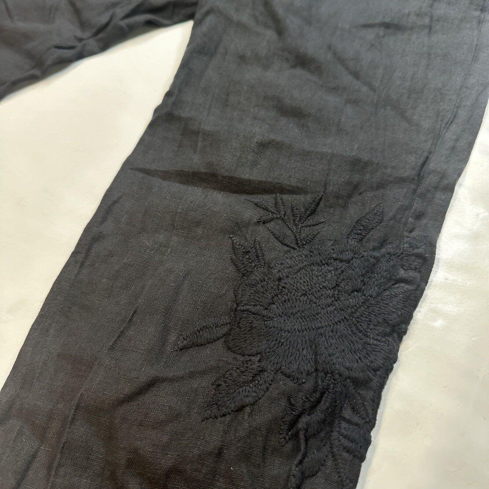 Johnny Was Sadie Jogger Womens XS Black 100% Linen Pants Floral Embroidery NEW