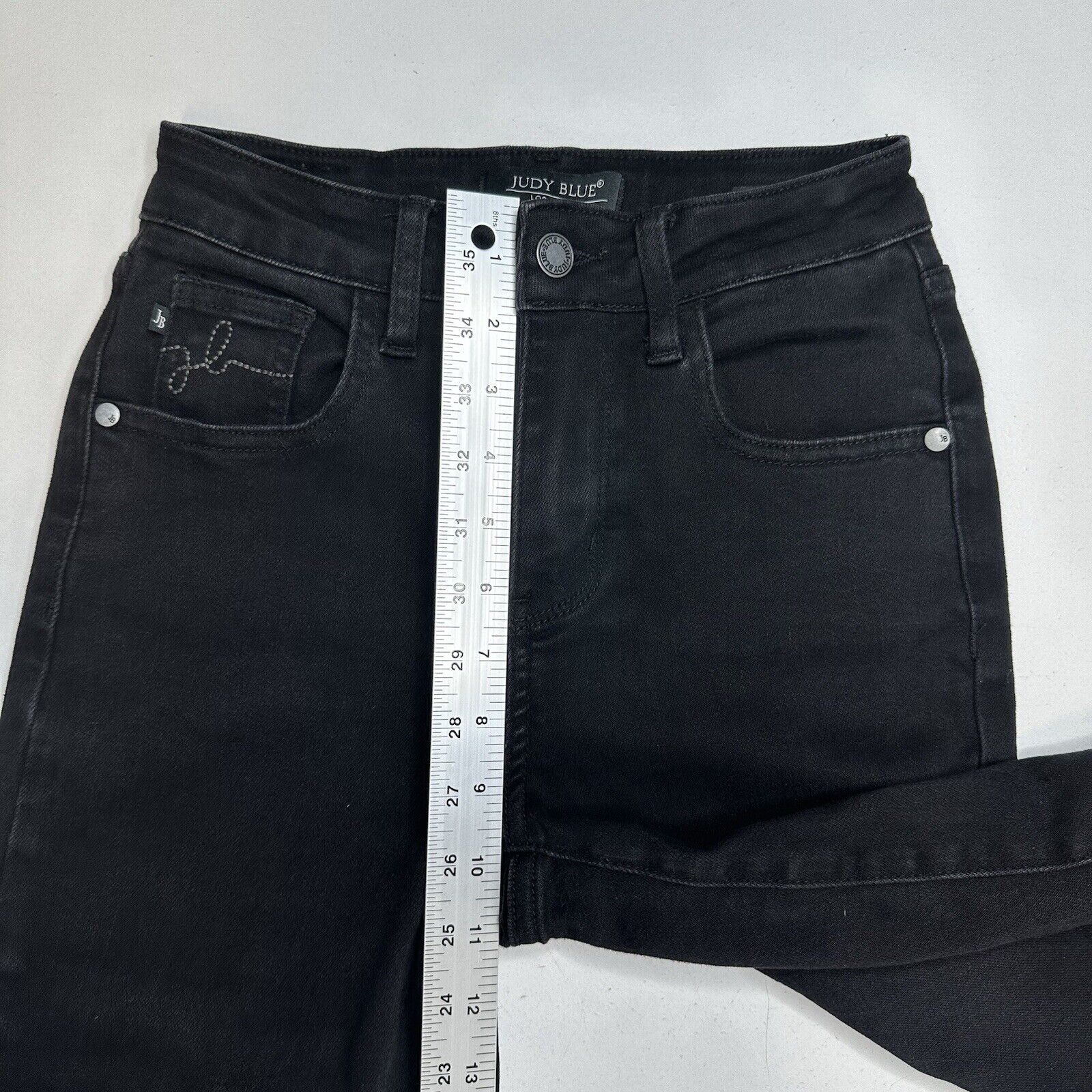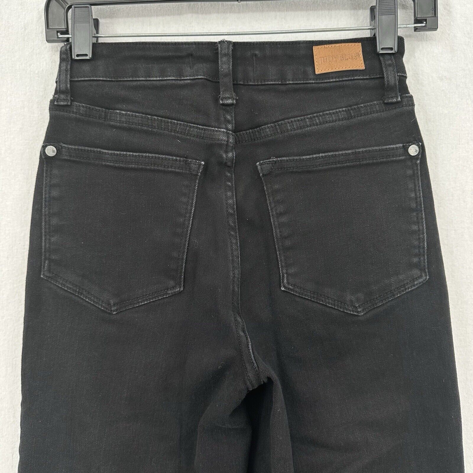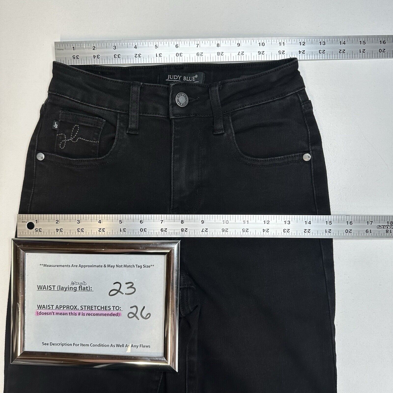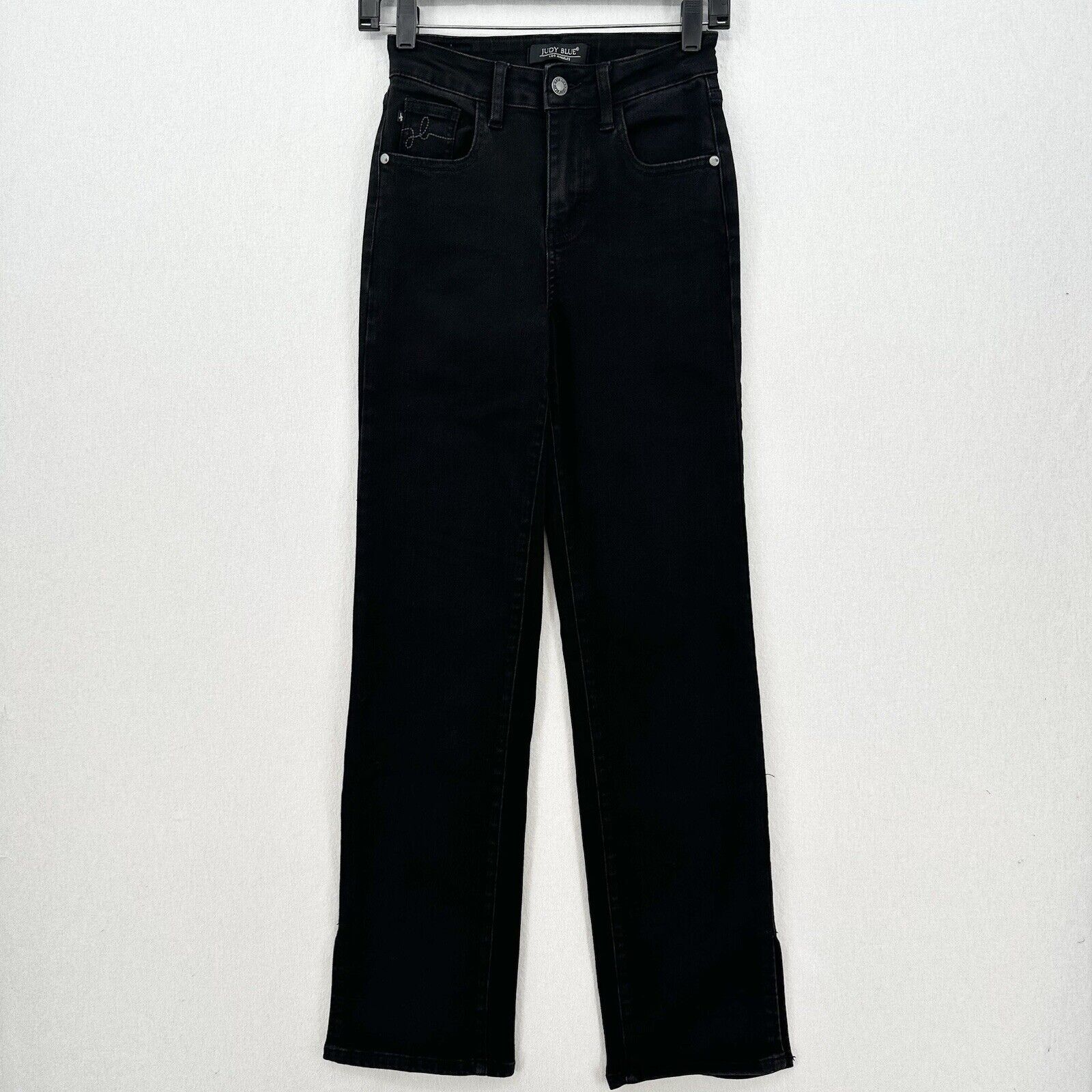 Judy Blue Jeans Womens 0 24 Straight Leg Black Stretch Denim Split Hems EUC