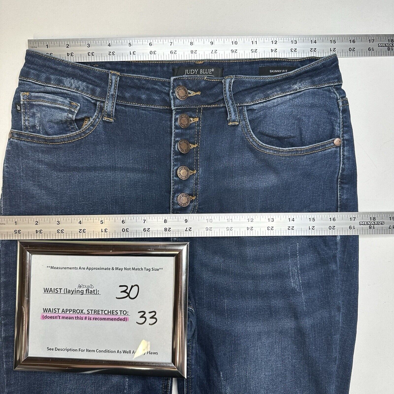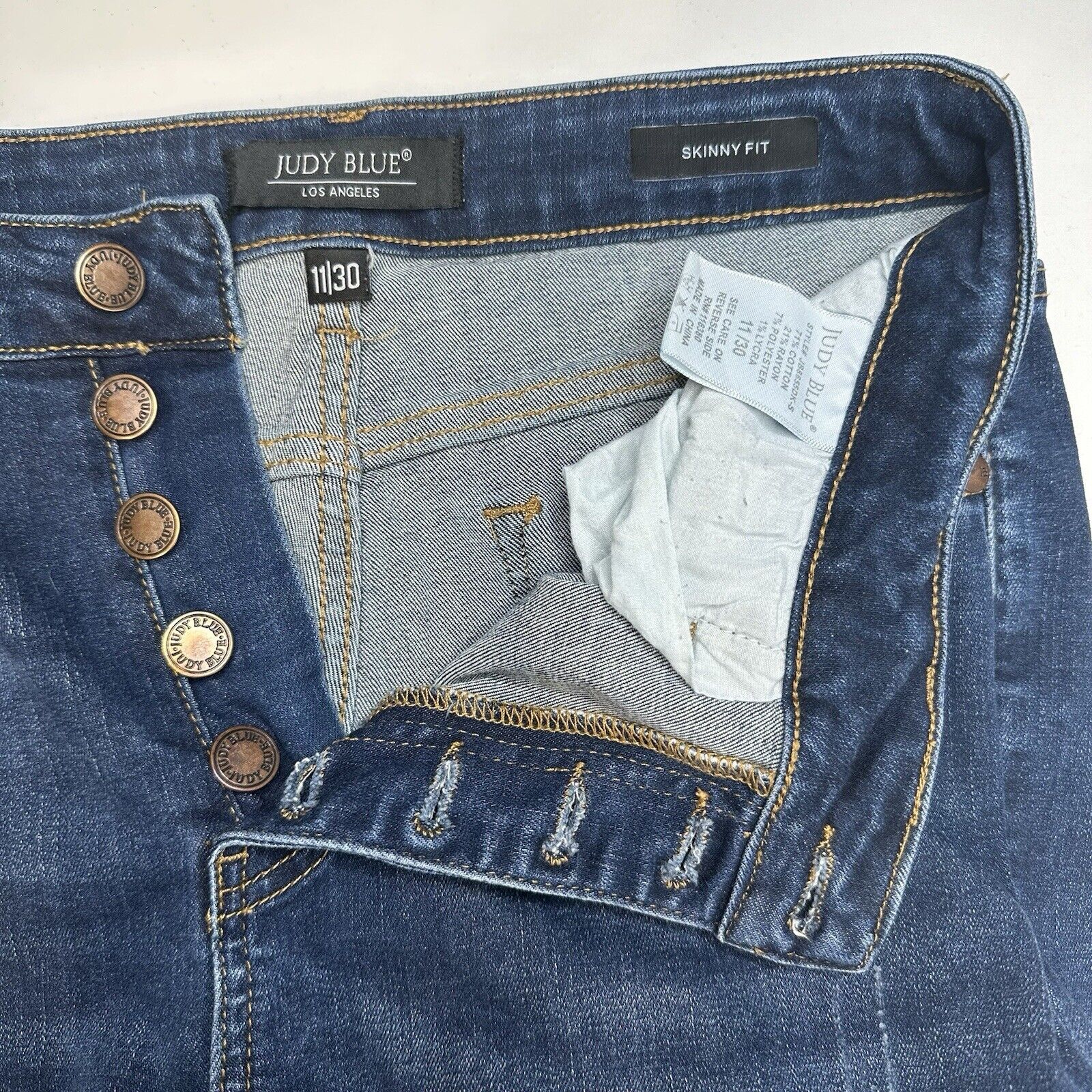 Judy Blue Jeans Womens 11 30 Skinny Ankle Blue Stretch Denim Button Fly Dark Wash Distress