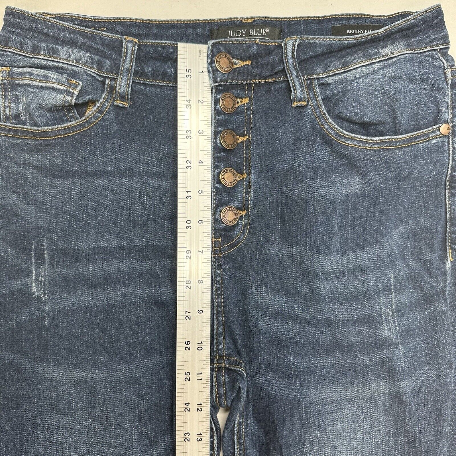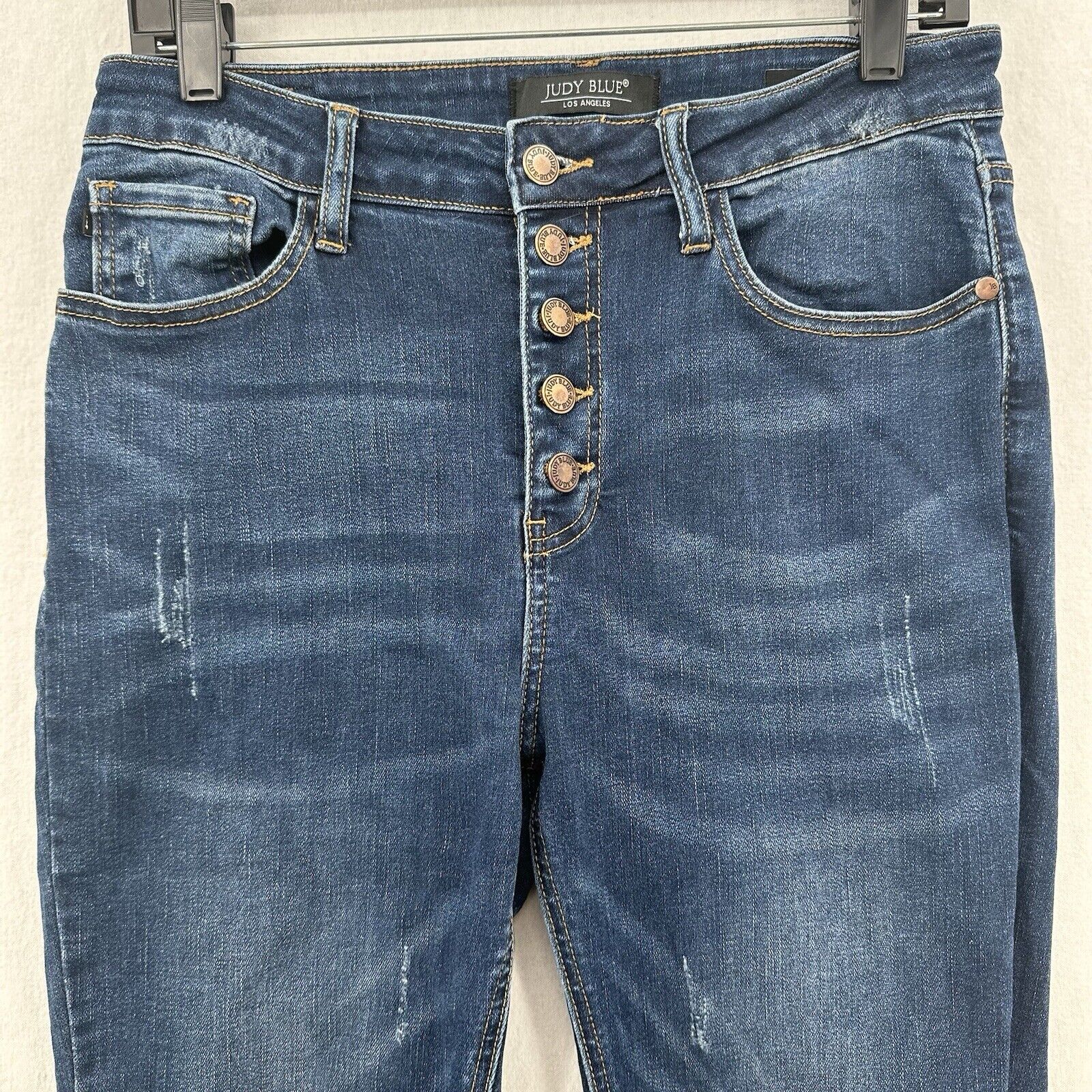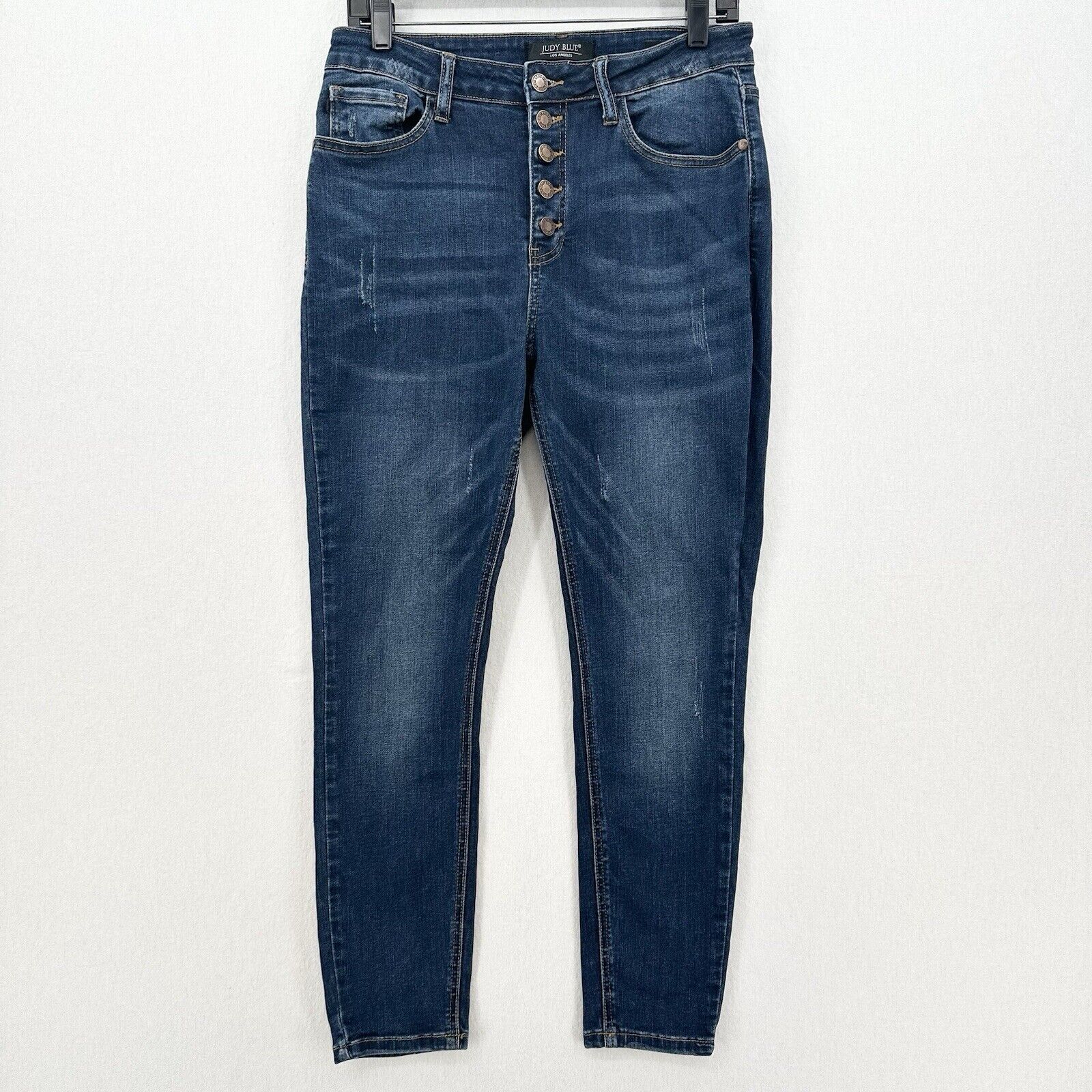 Judy Blue Jeans Womens 11 30 Skinny Ankle Blue Stretch Denim Button Fly Distress