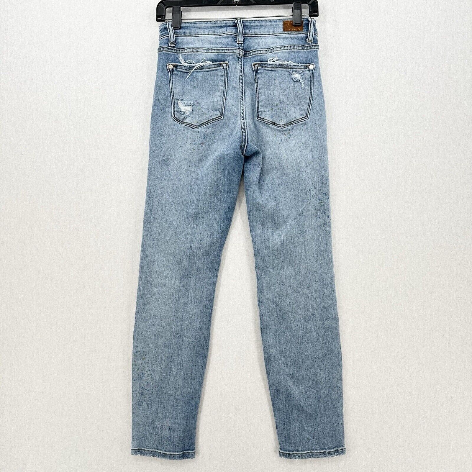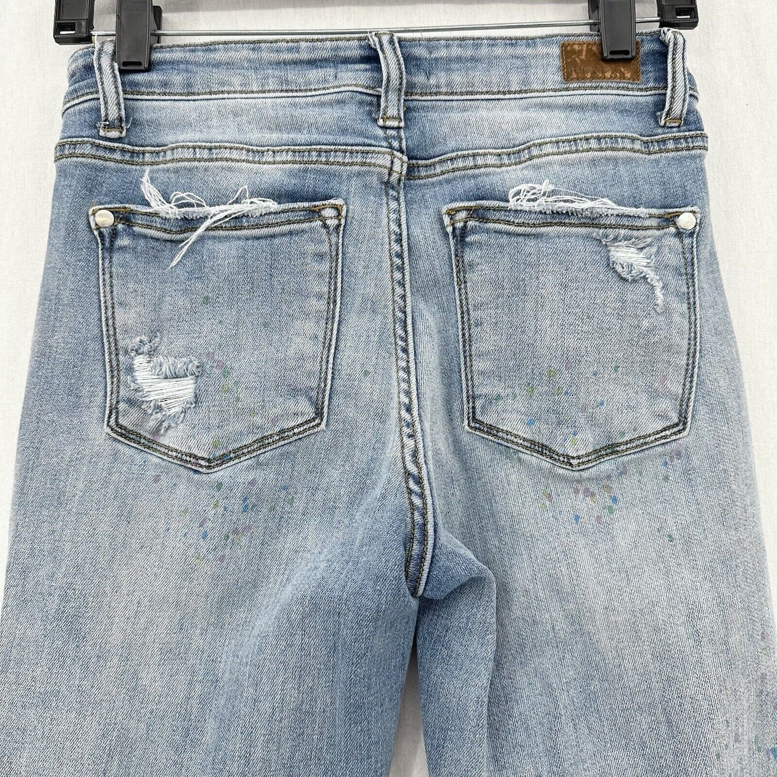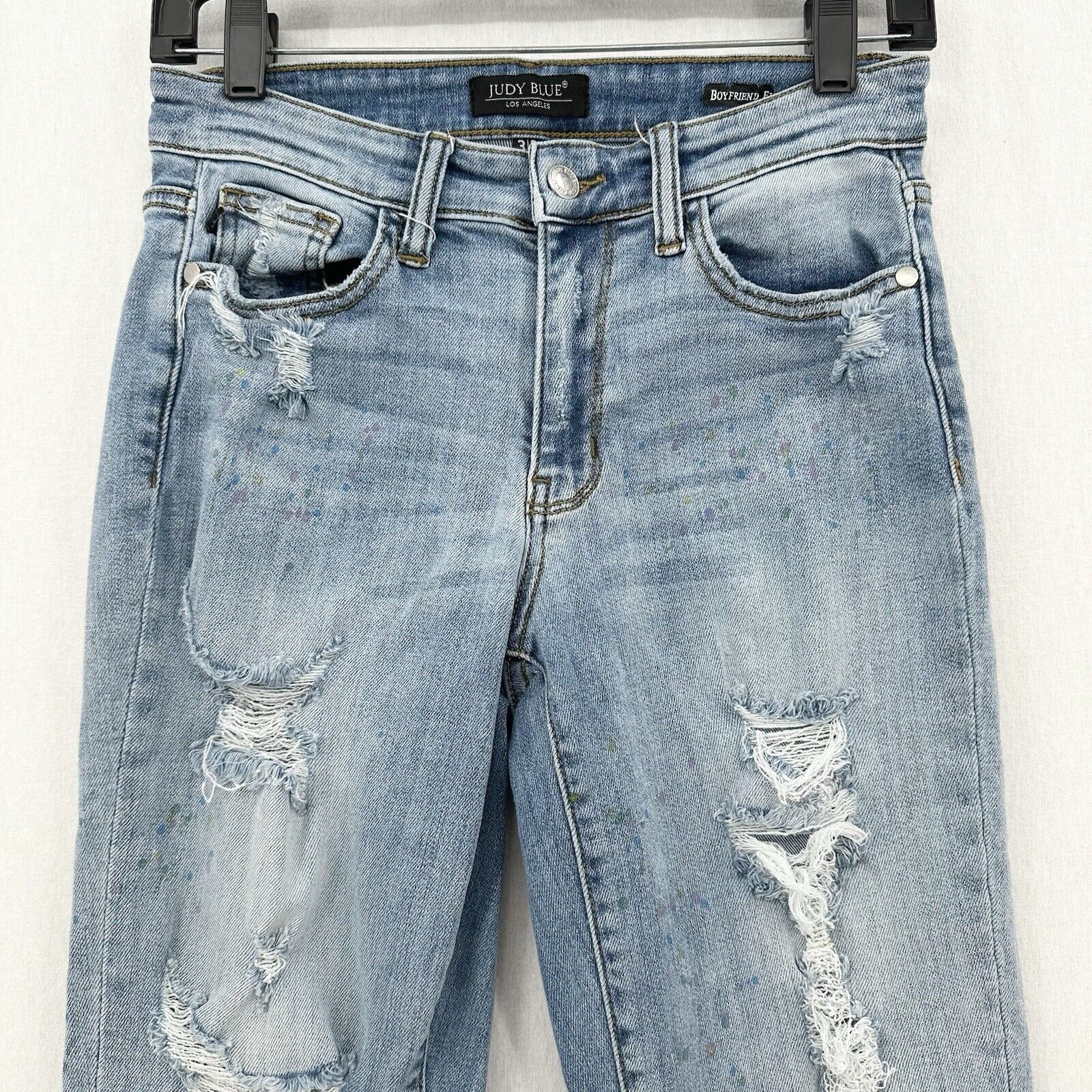 Judy Blue Jeans Womens 3 26 Boyfriend Blue Denim Light Wash Rainbow Paint Splatter Distressed Grunge