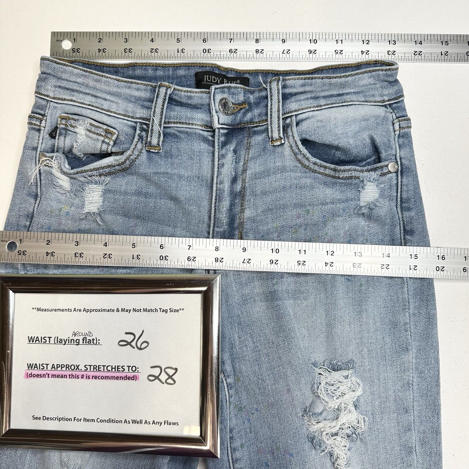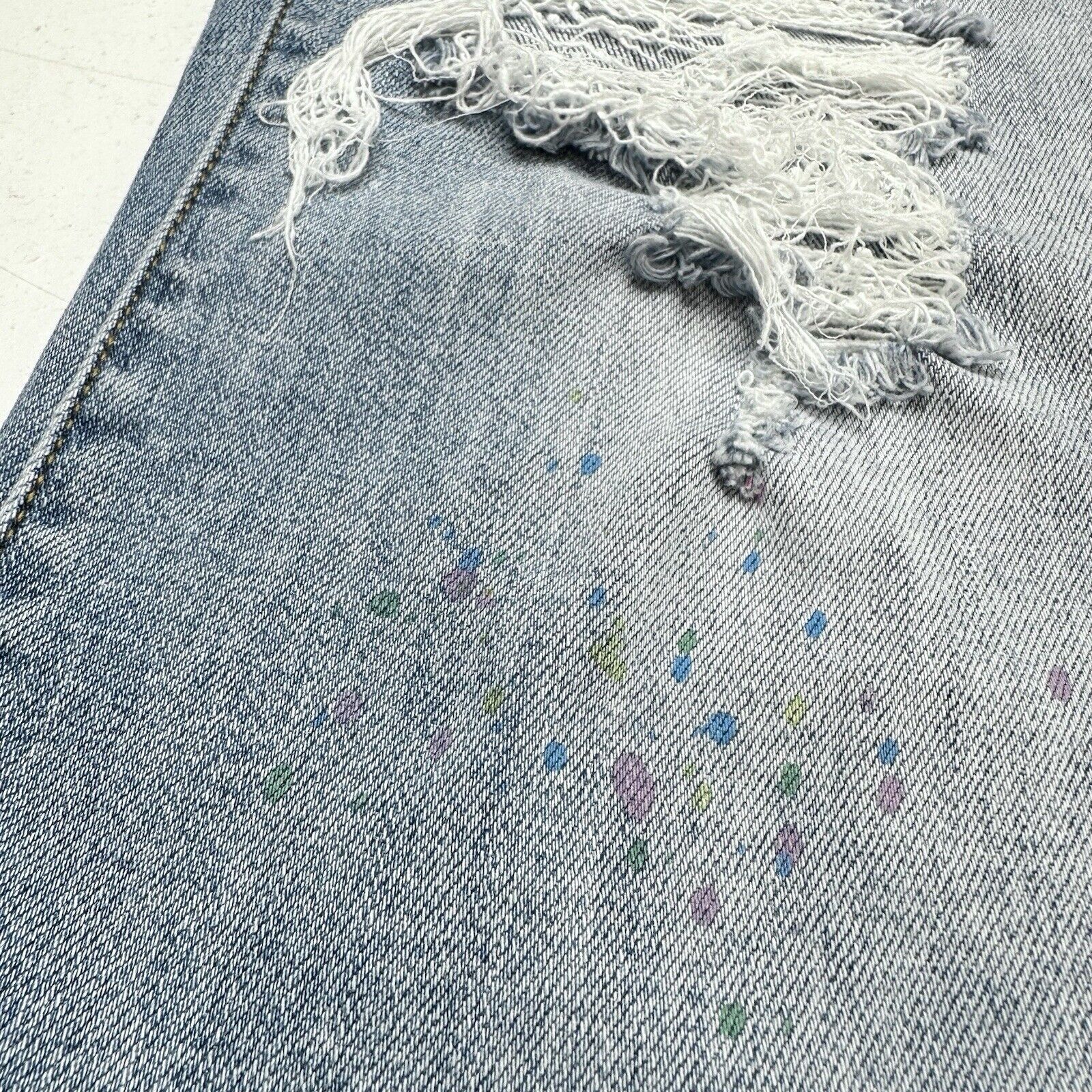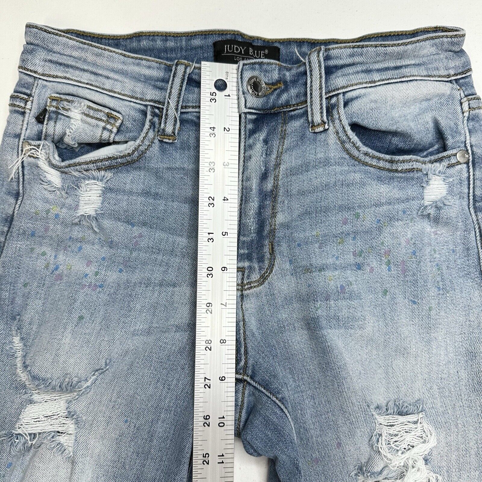 Judy Blue Jeans Womens 3 26 Boyfriend Blue Denim Light Wash Rainbow Paint Splatter Distressed Grunge