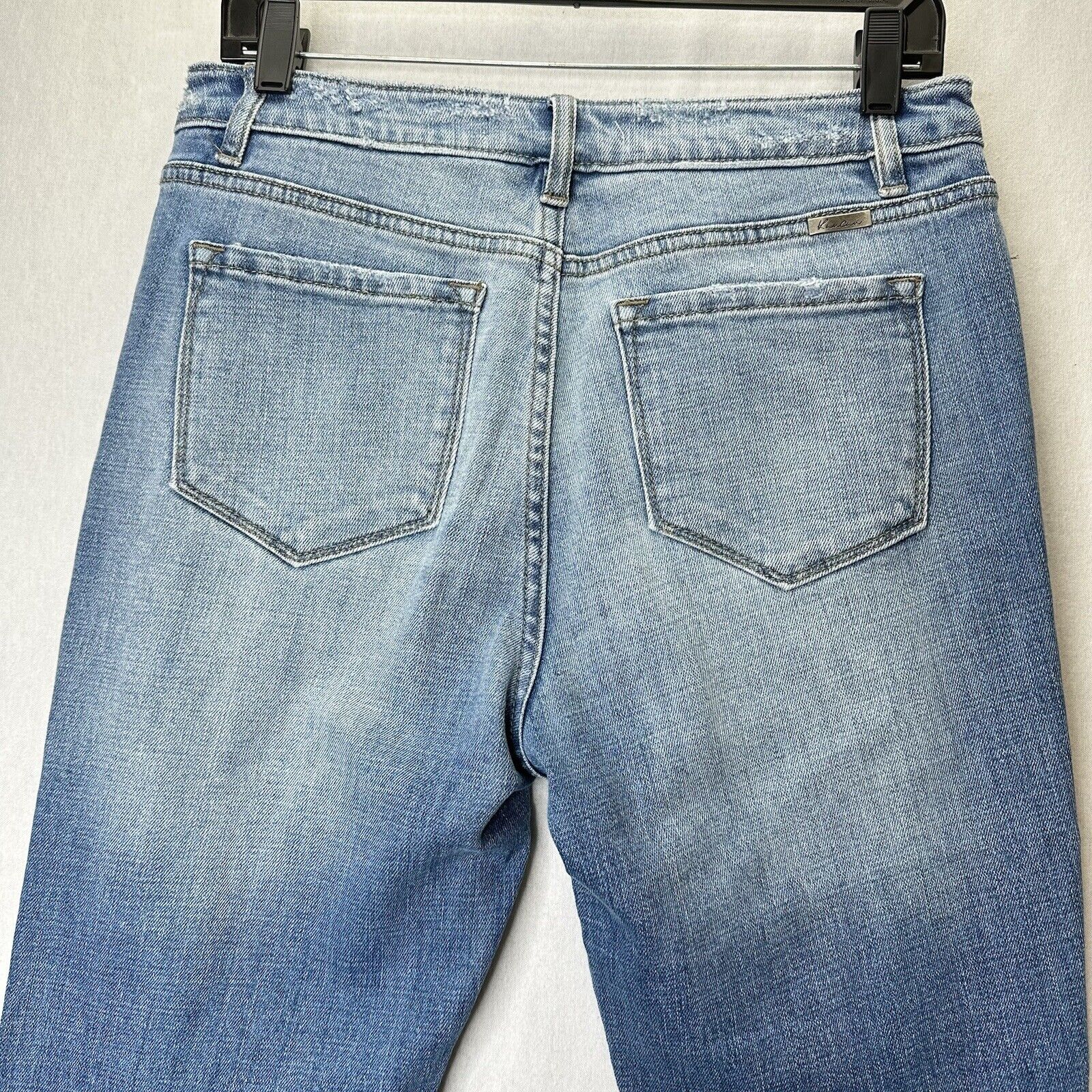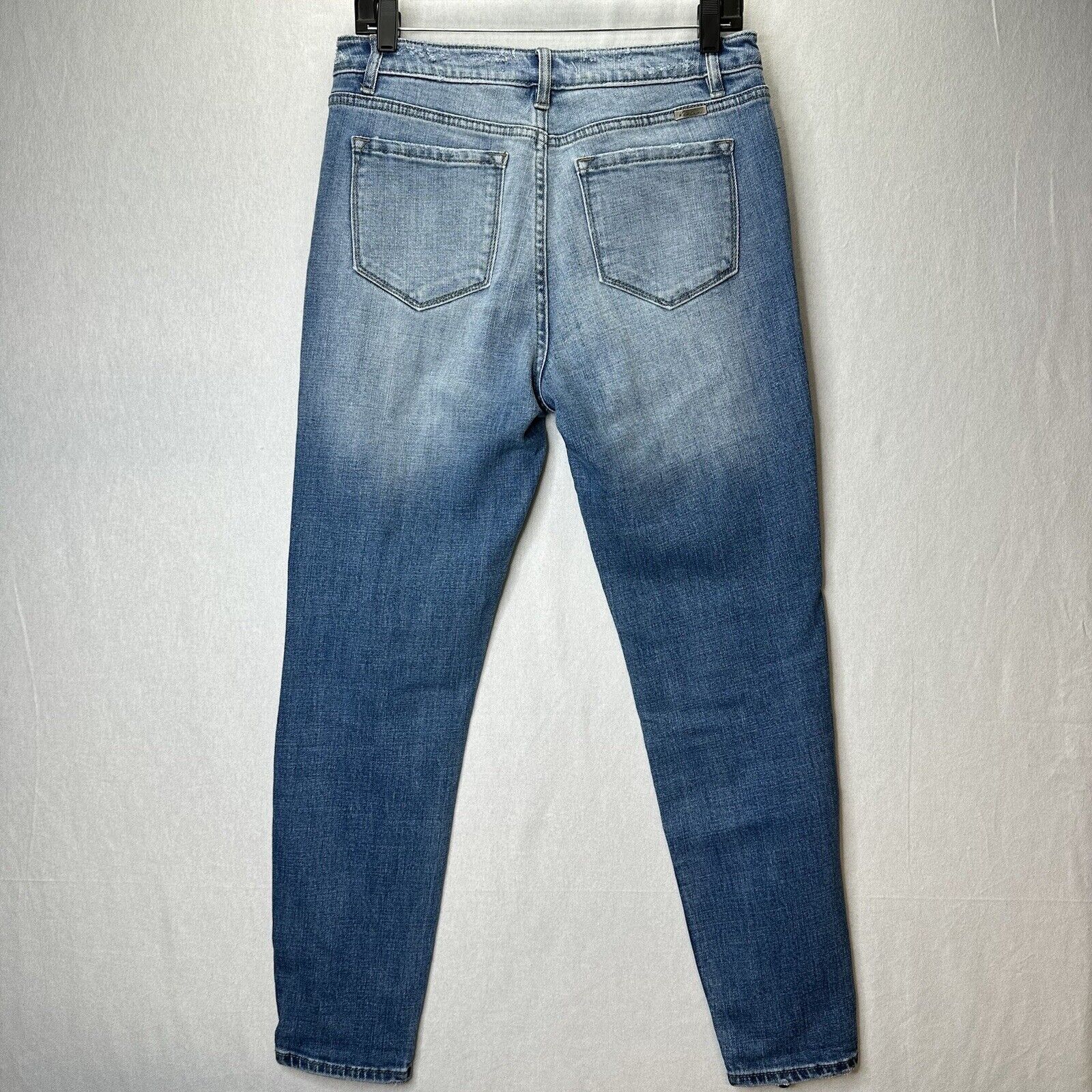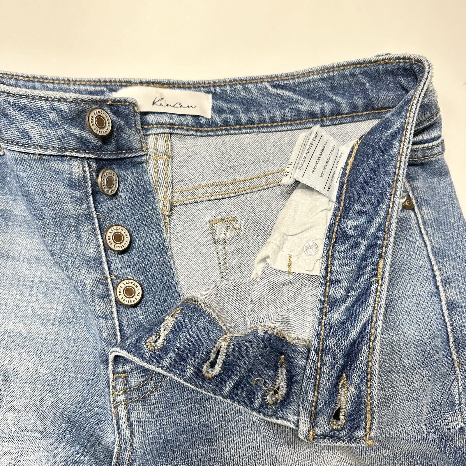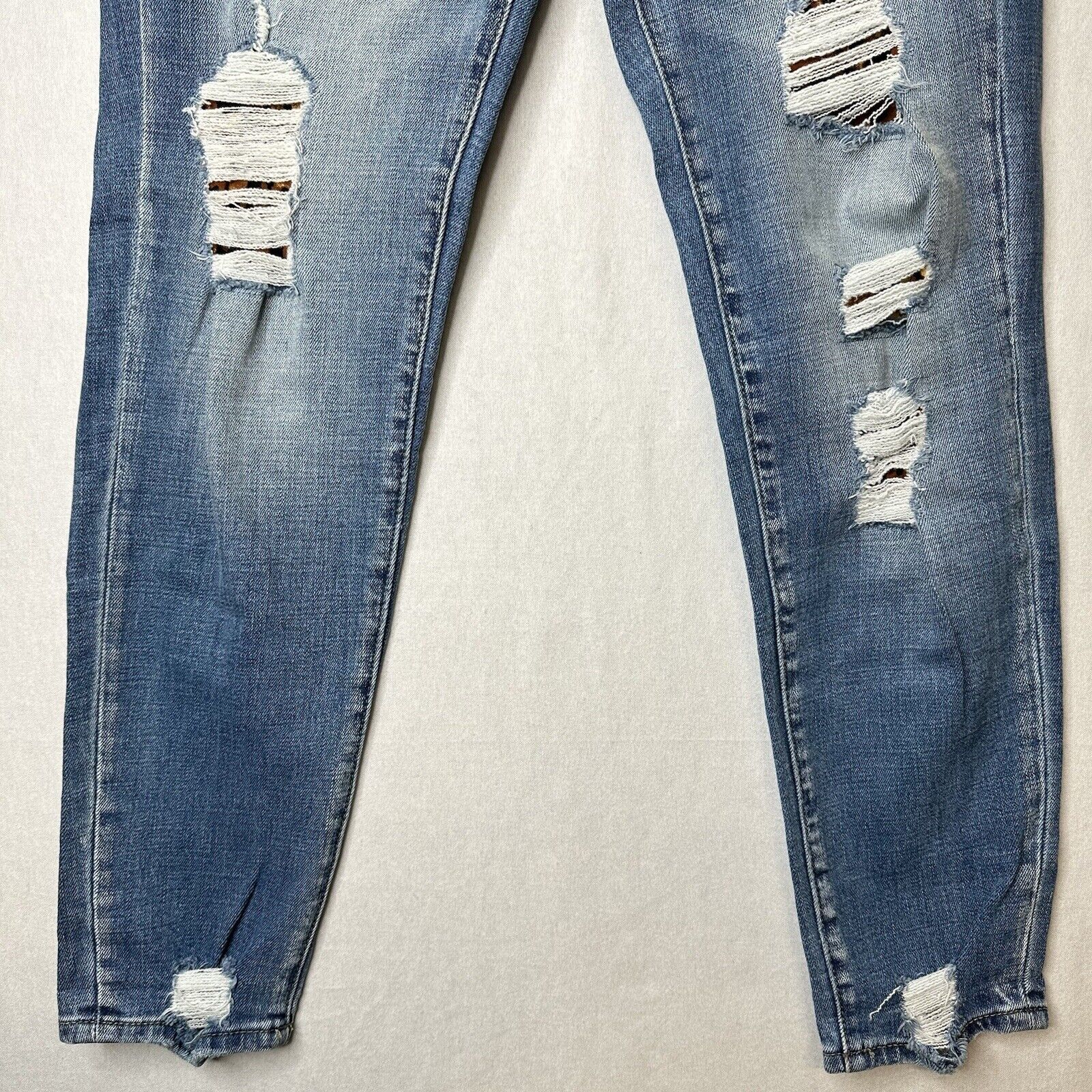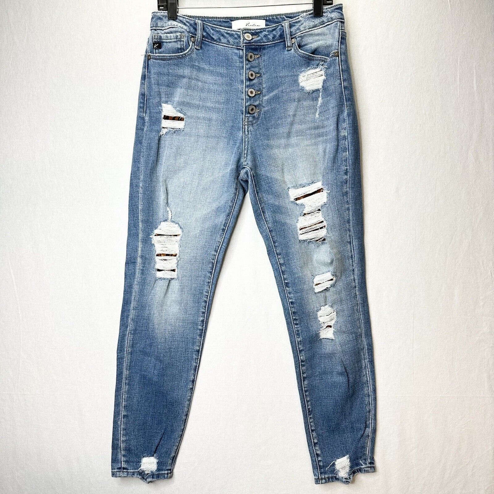 Kancan Jeans Womens 9 28 High Rise Skinny Blue Denim Button Fly Medium Wash Distressed Animal Print Cheetah Leopard Patching Underneath
