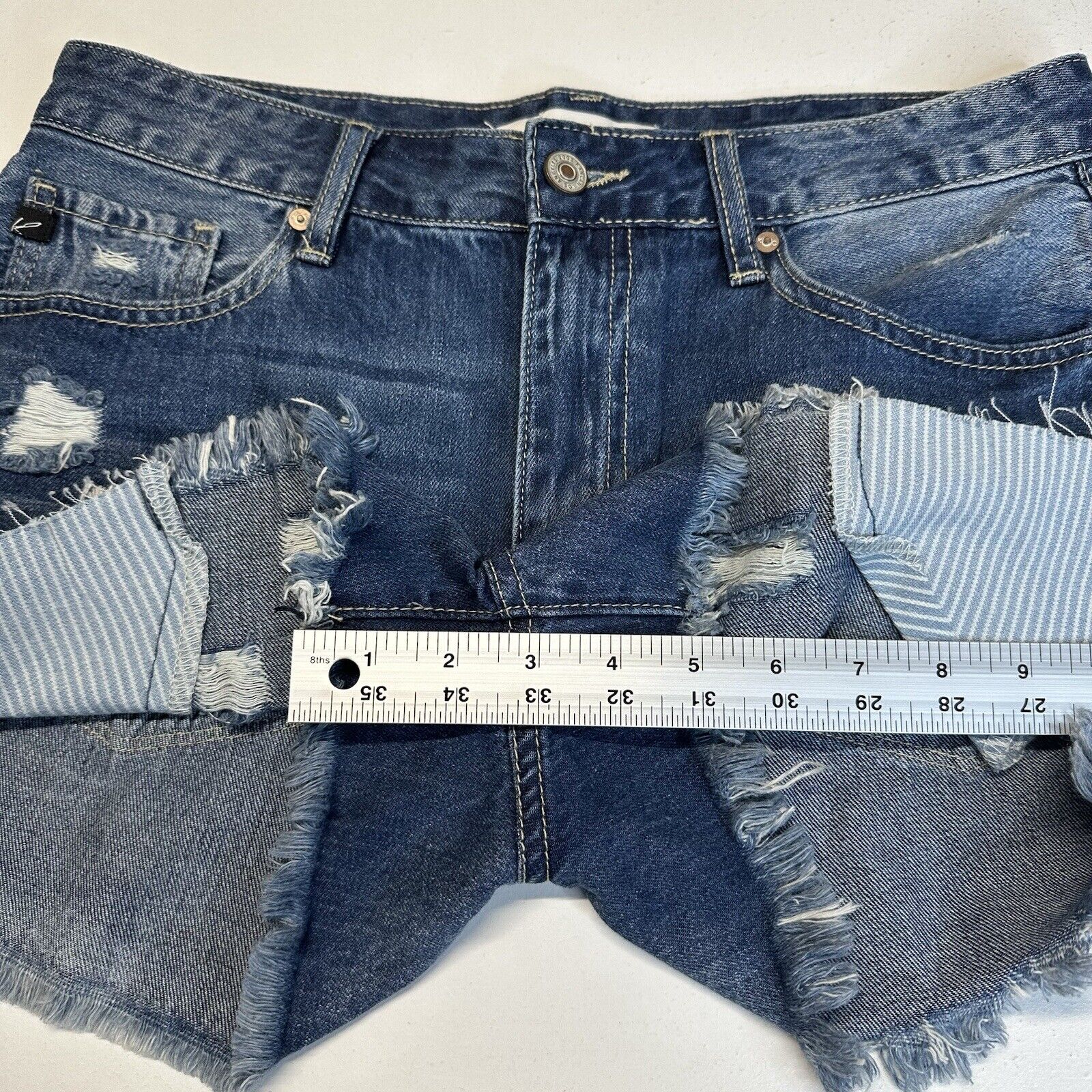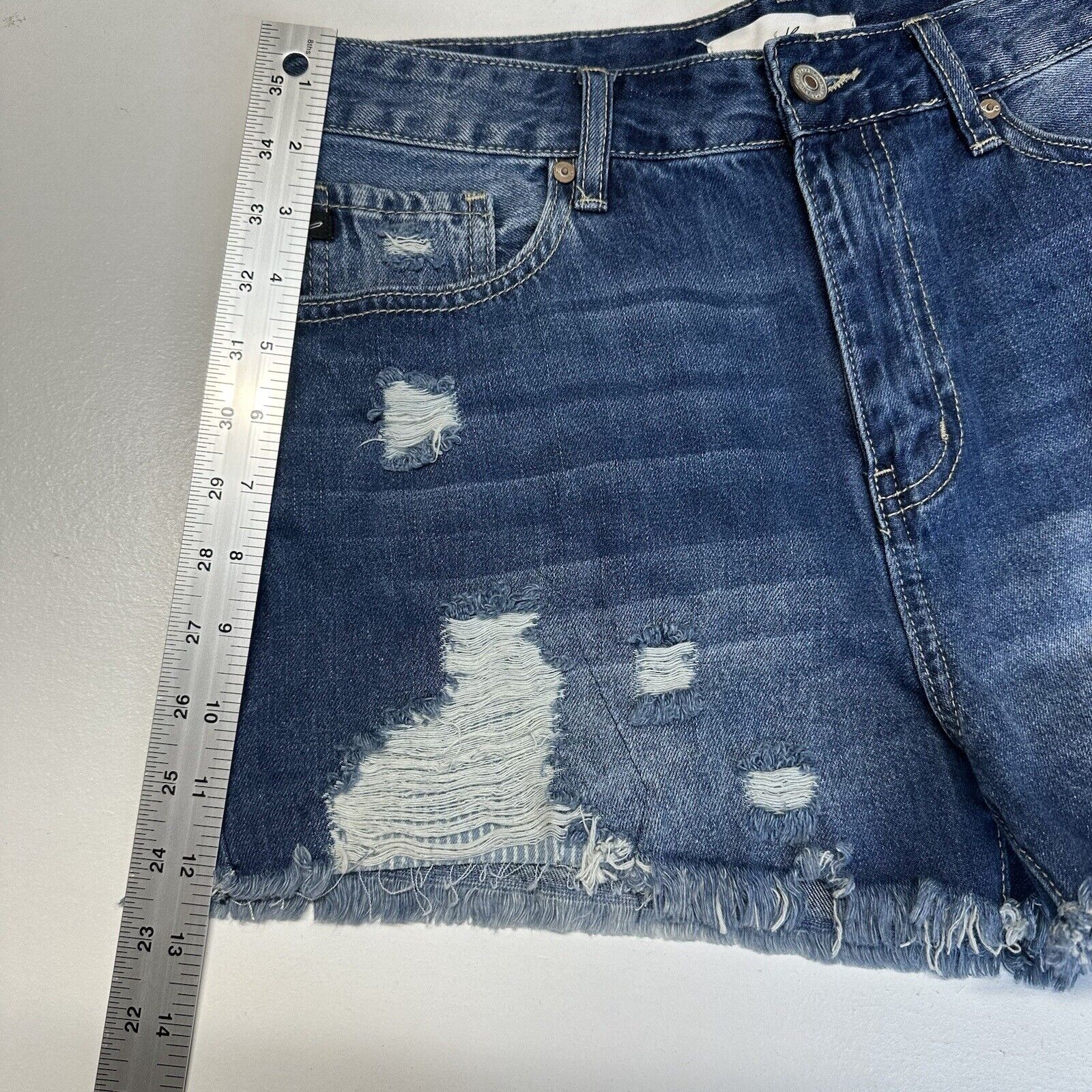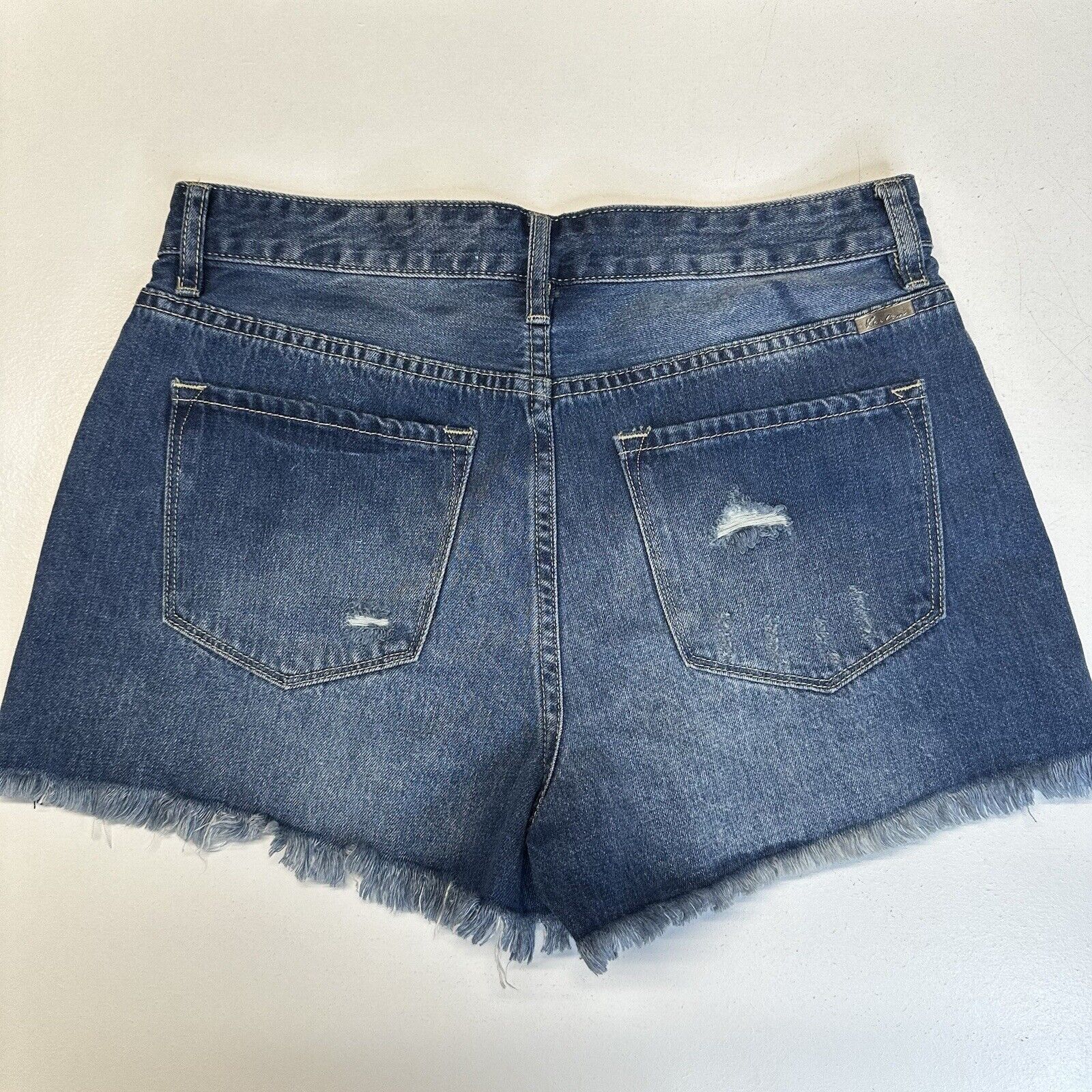 Kancan Shorts Womens 9 28 High Rise Denim Blue Jean Distress 100% Cotton Fray Grunge Medium Wash. Not Stretchy.