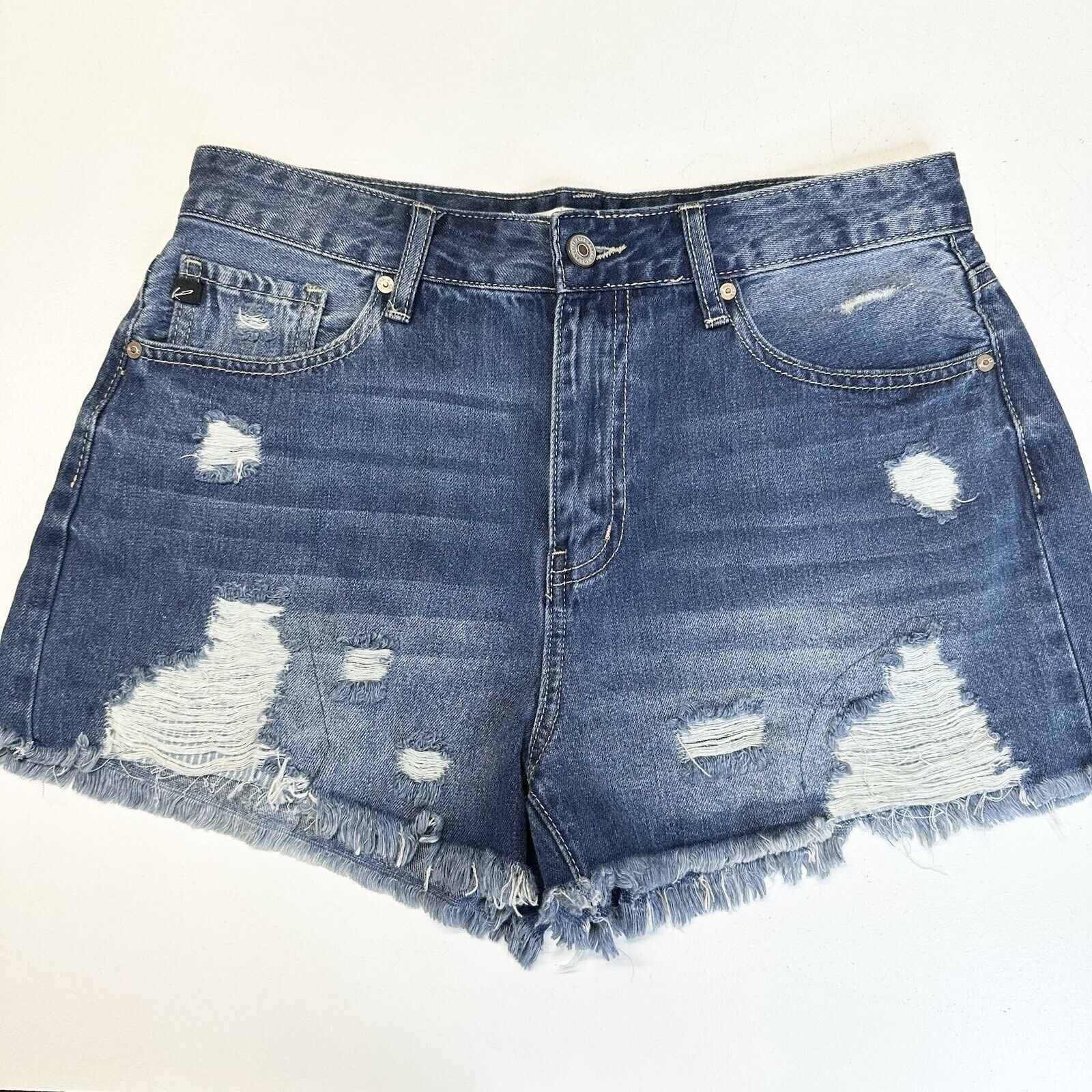 Kancan Shorts Womens 9 28 High Rise Denim Blue Jean Distress Cotton Fray Grunge