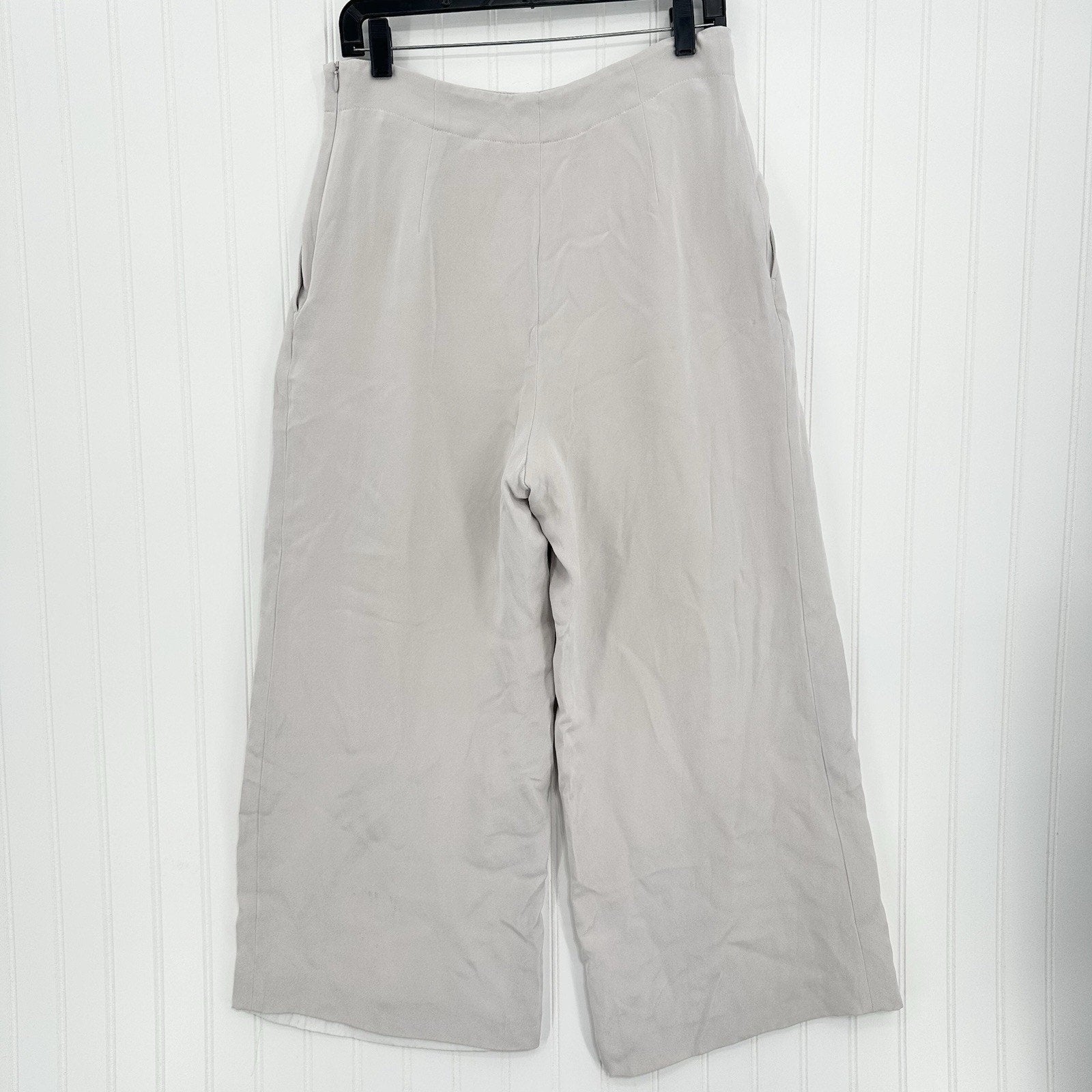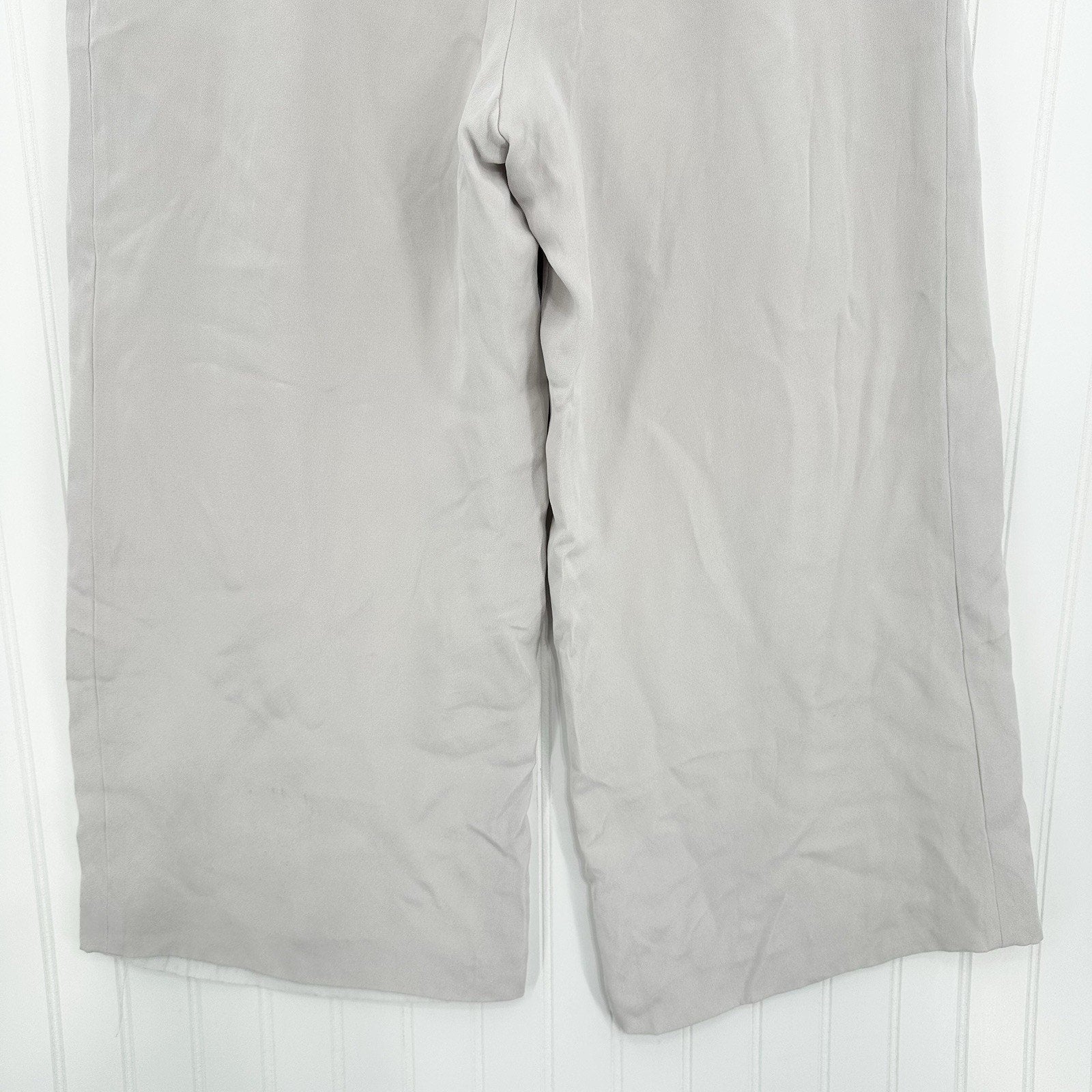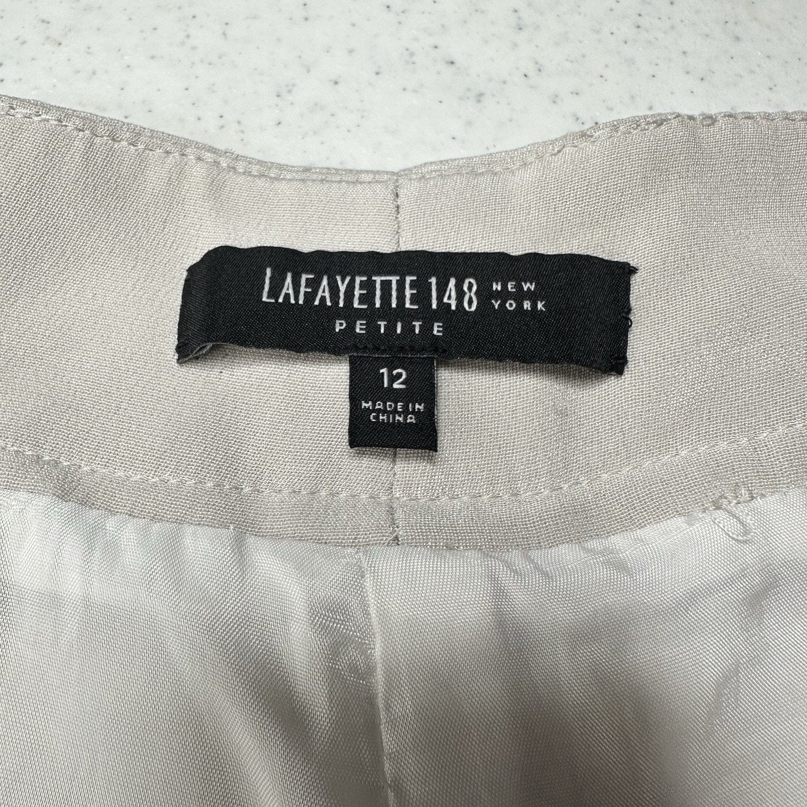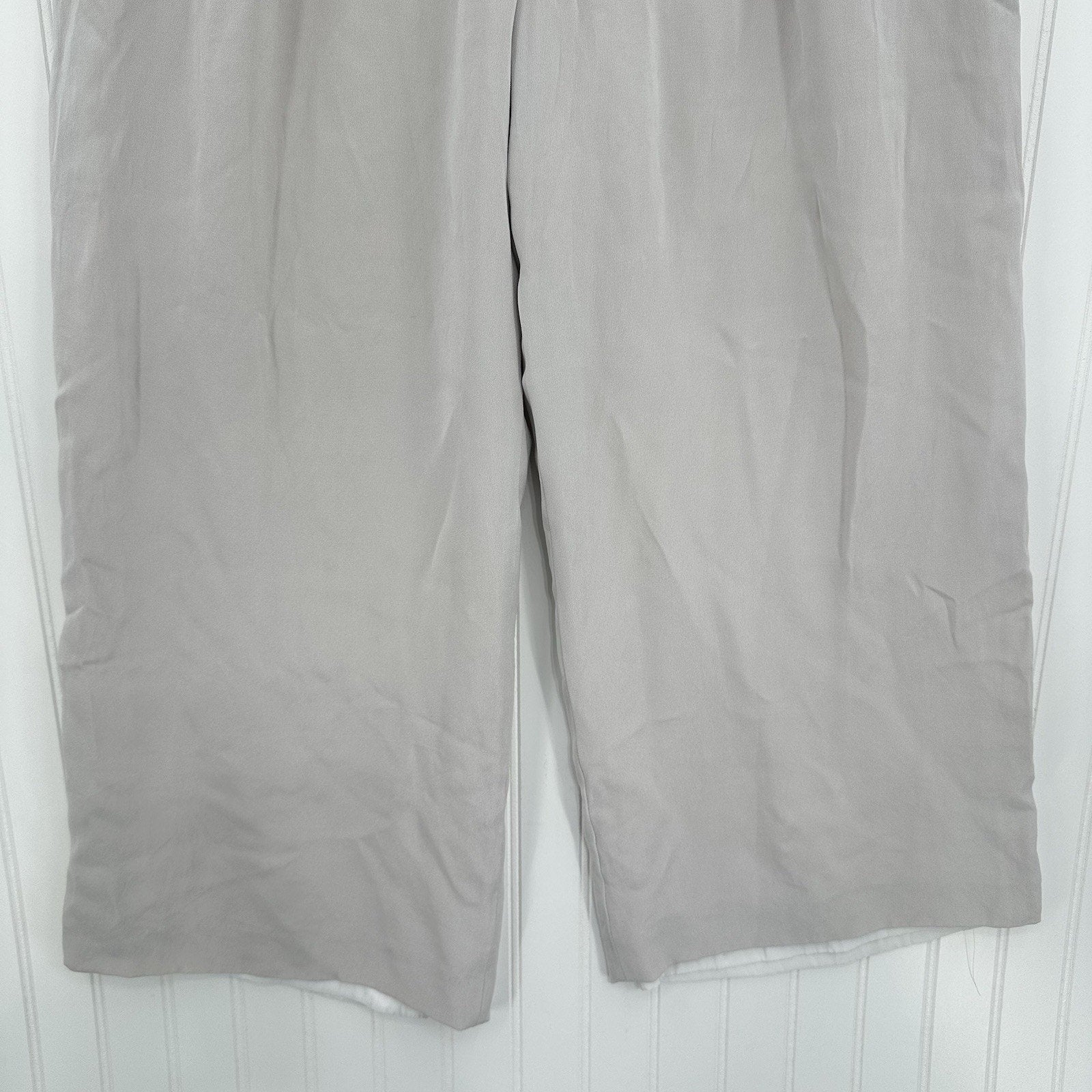Lafayette 148 Pants Women 12 Petite Silk Wide Leg Light Gray Lined Coastal *Flaw