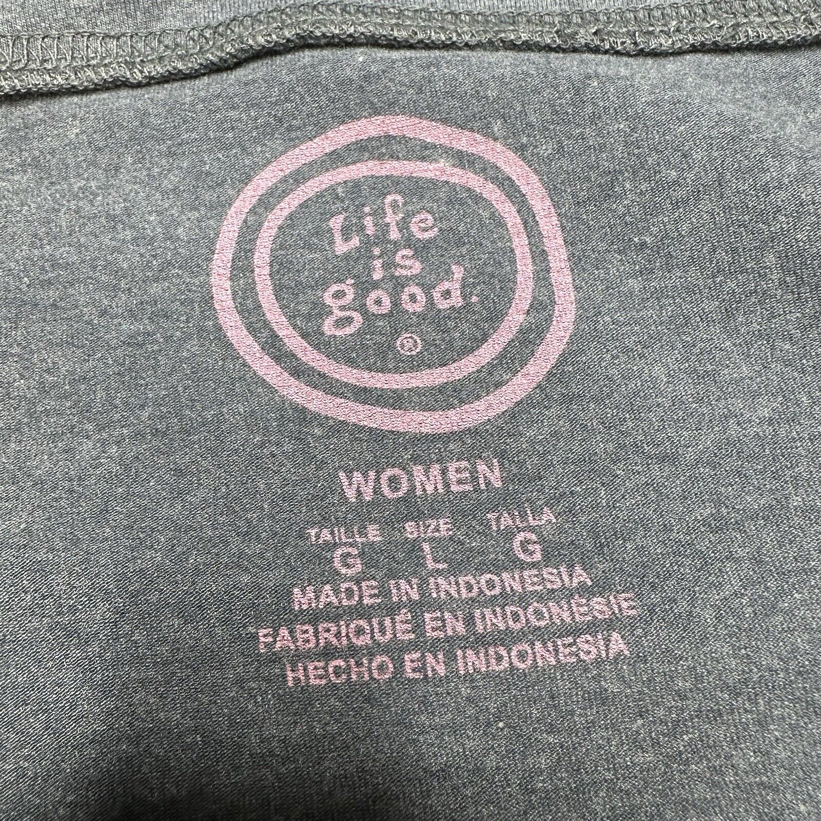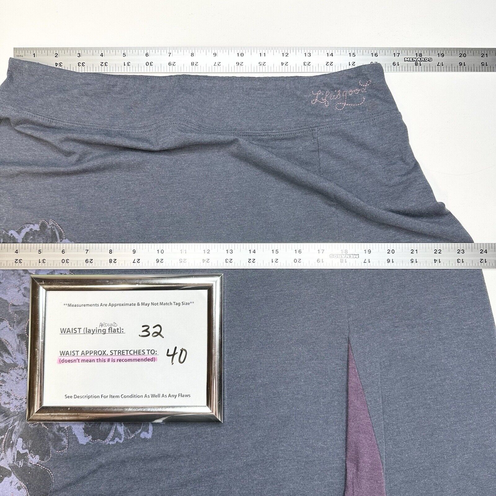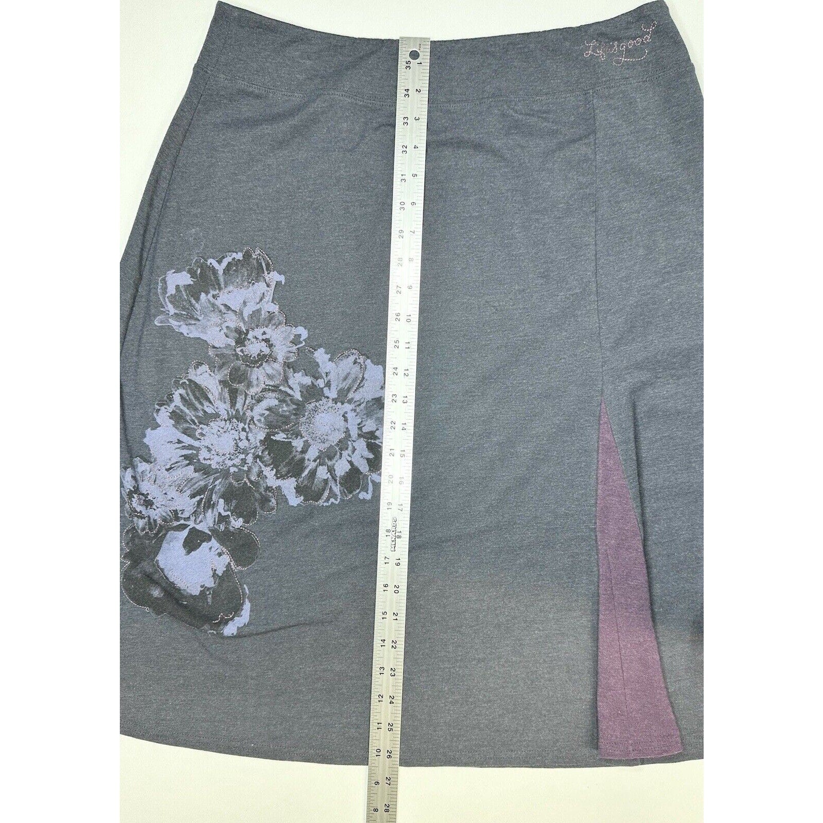 Life Is Good Skirt Womens Large Midi Blue Purple Floral A-Line Stretchy Knit Pull On Coastal Beach Casual