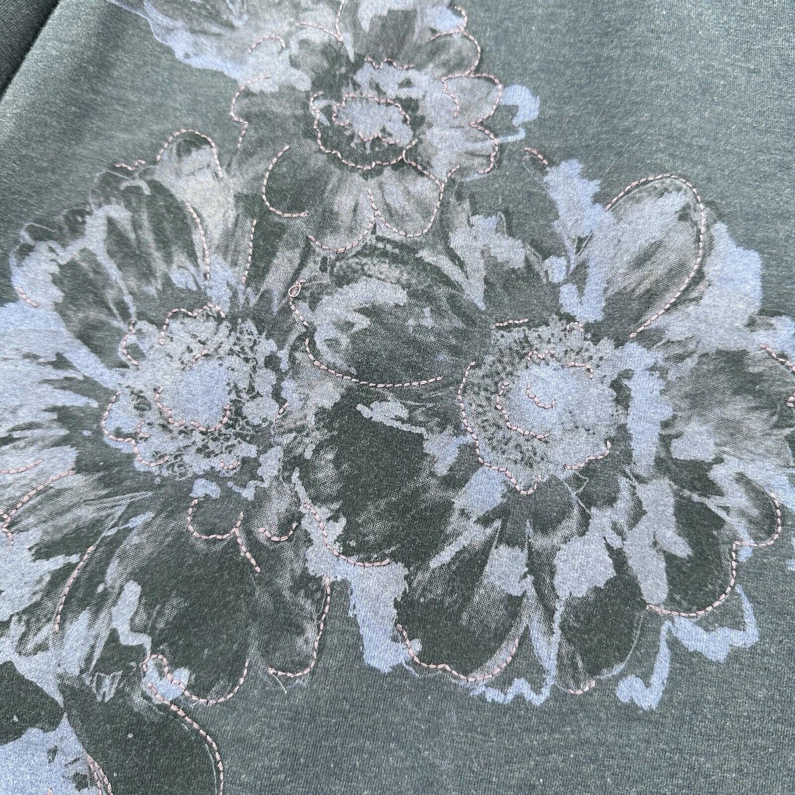 Life Is Good Skirt Womens Large Midi Blue Floral Stretchy Knit Coastal Beach