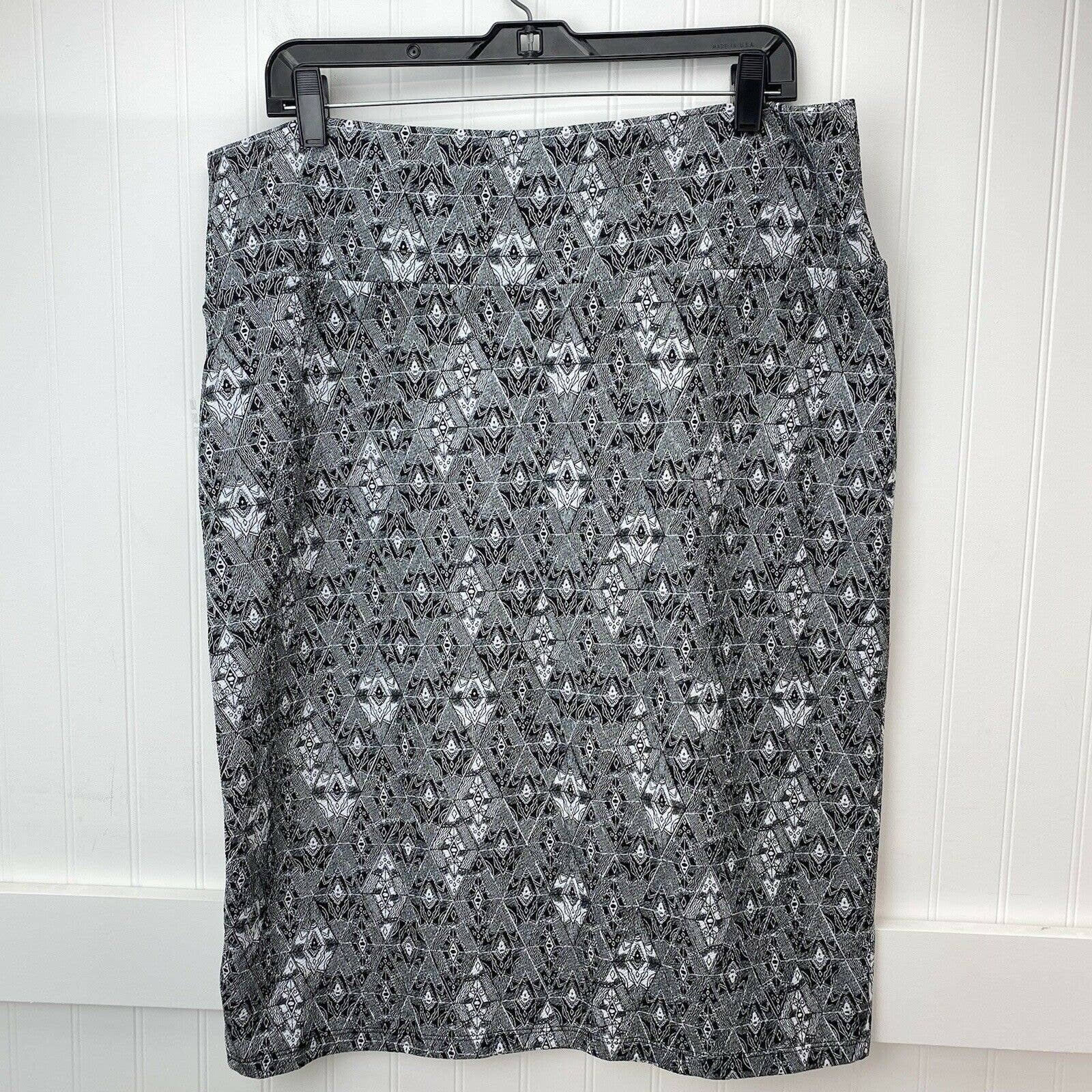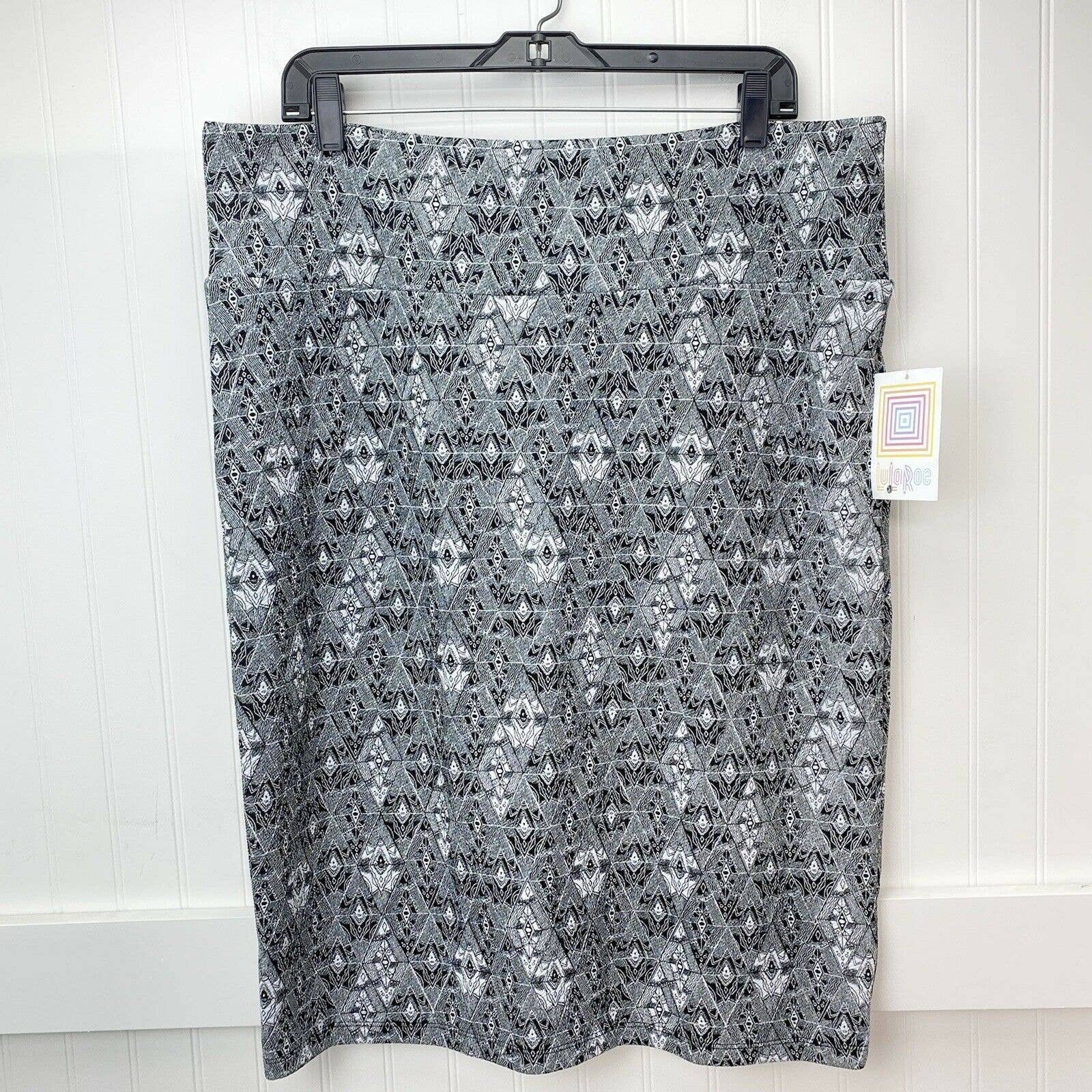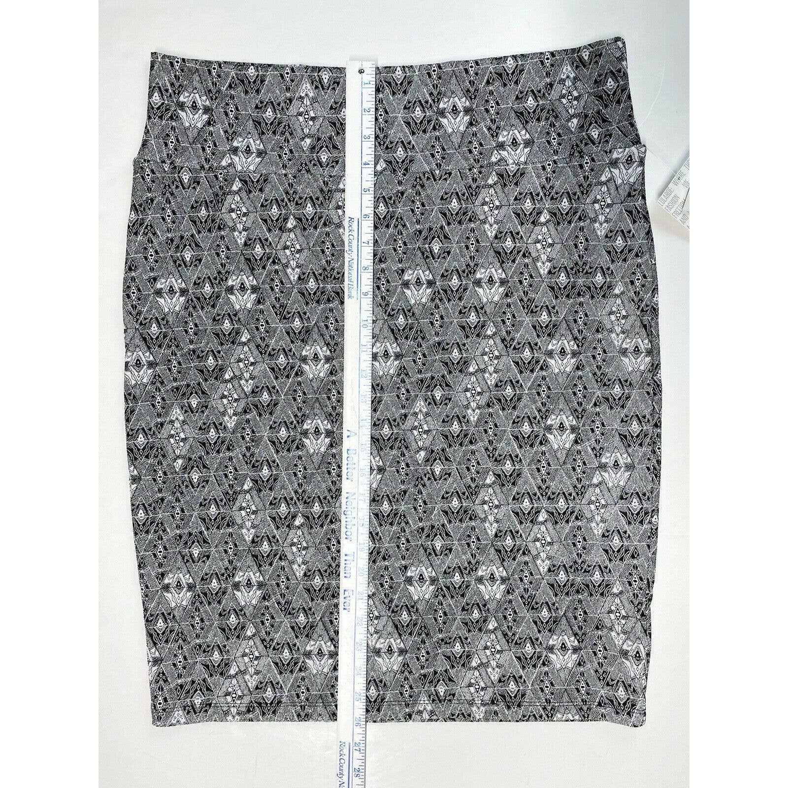 Lularoe Cassie Midi Pencil Skirt (Tag Size 3XL) Womens Pull On Black/White Aztec/Diamond Pattern Stretchy Lightweight Casual Skirt Plus Size Brand New NWT