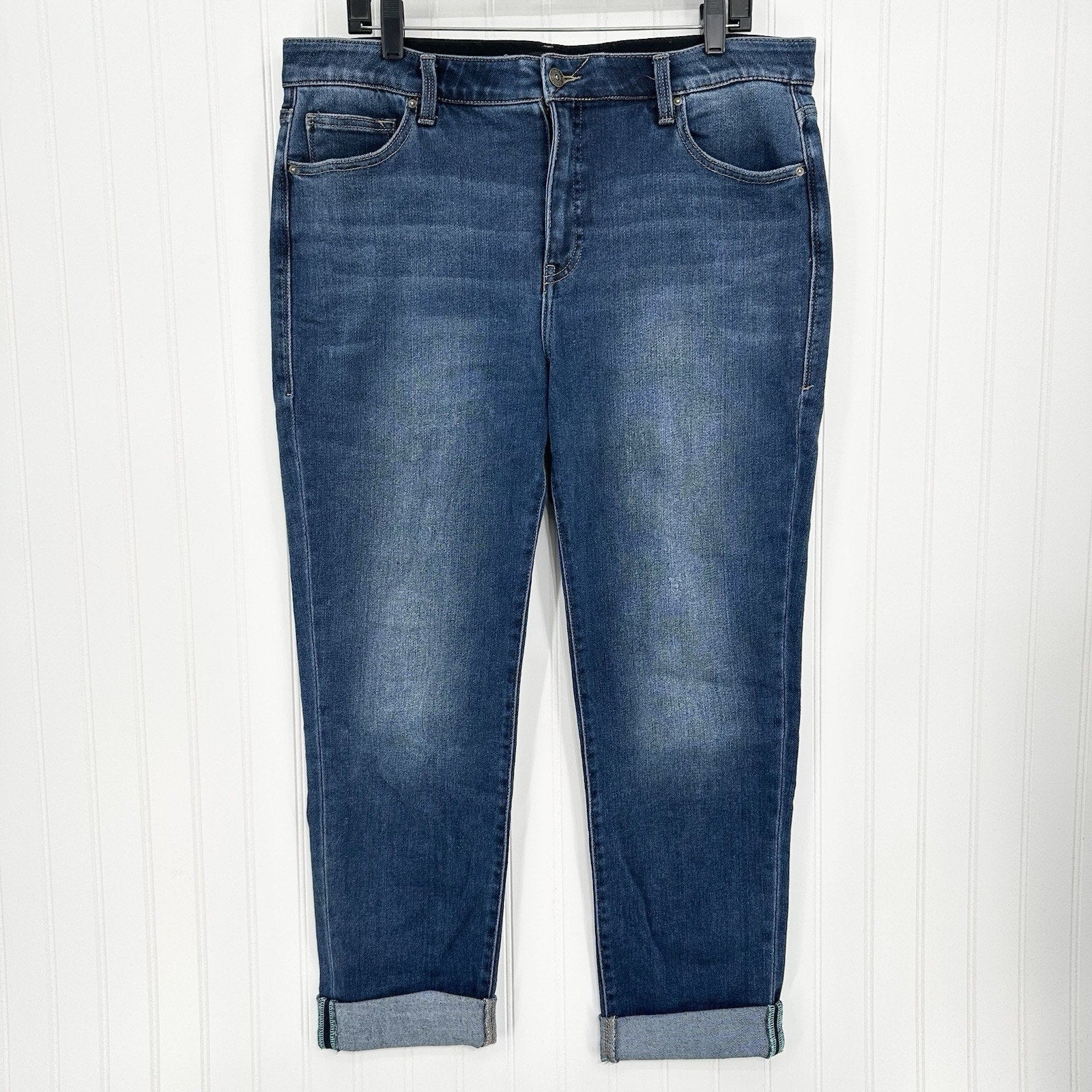 Lularoe Jeans Womens 32 US 14 Boyfriend Blue Stretch Denim Medium/Dark Wash Comfort Tummy Panel EUC