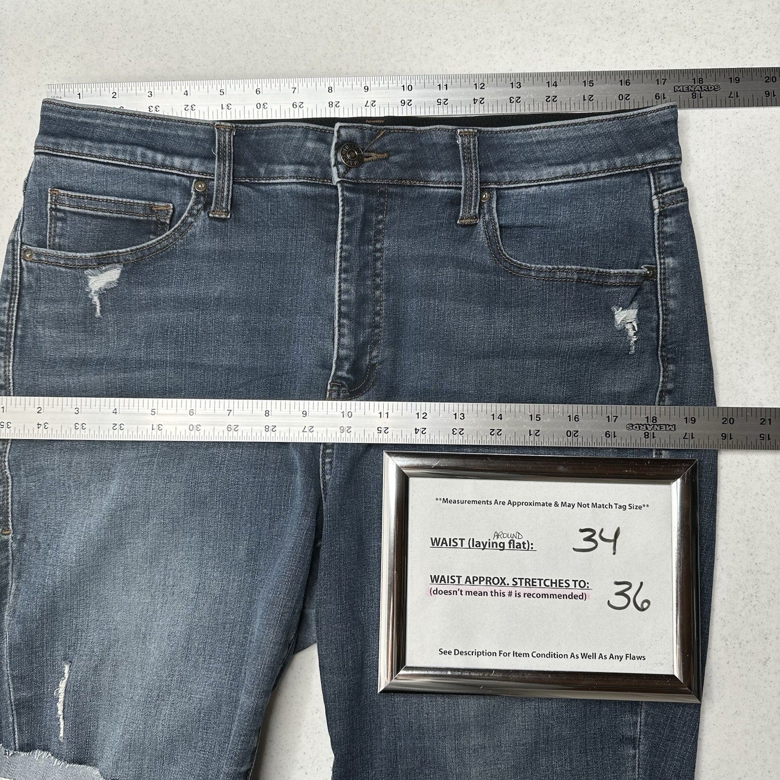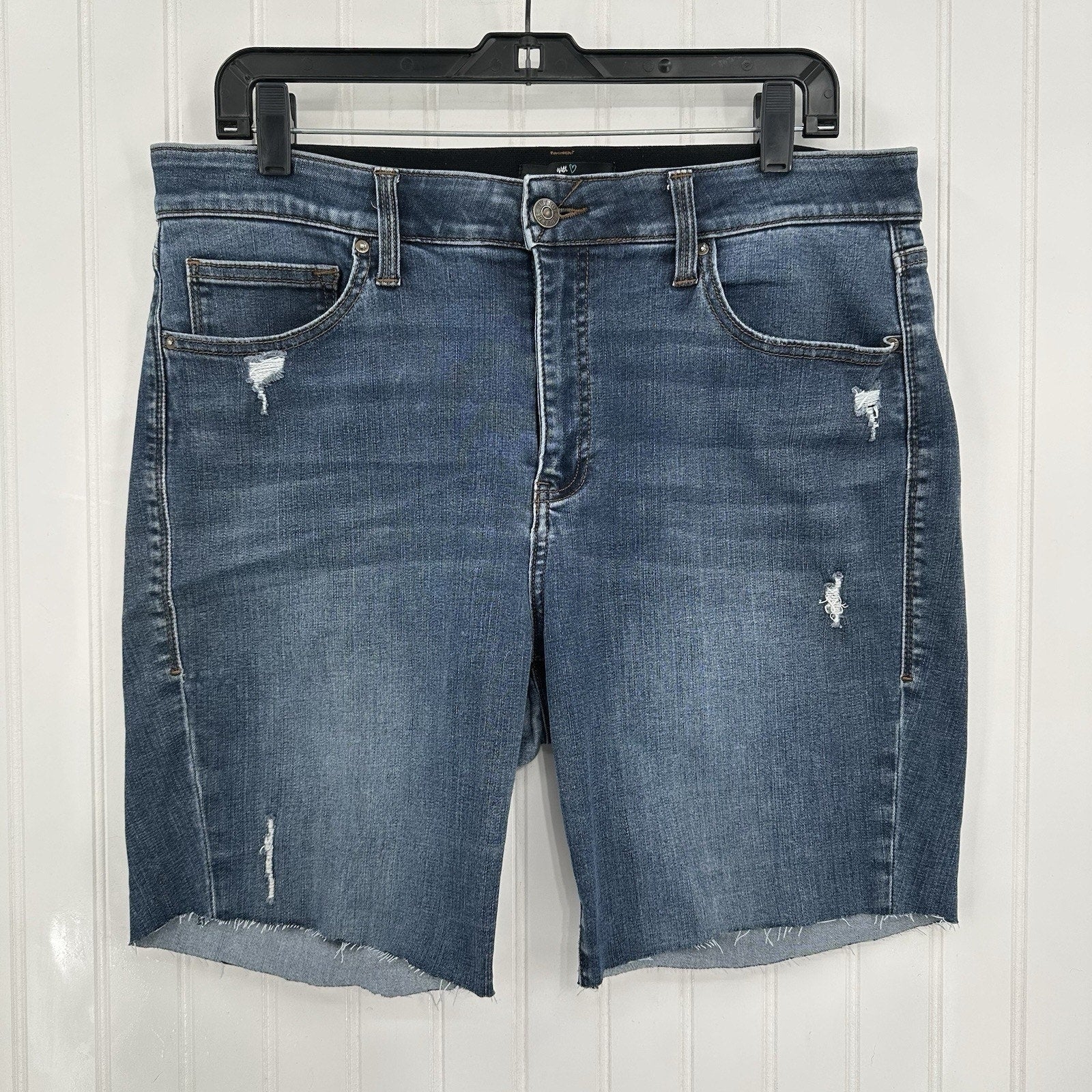 Lularoe Shorts Womens 32 US 14 Skinny Bermuda Cut Off Blue Denim Dark Wash Distressed Raw Hems Tummy Panel