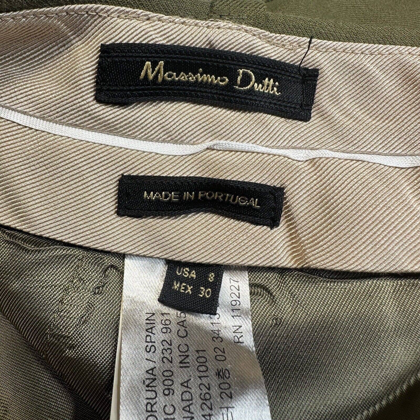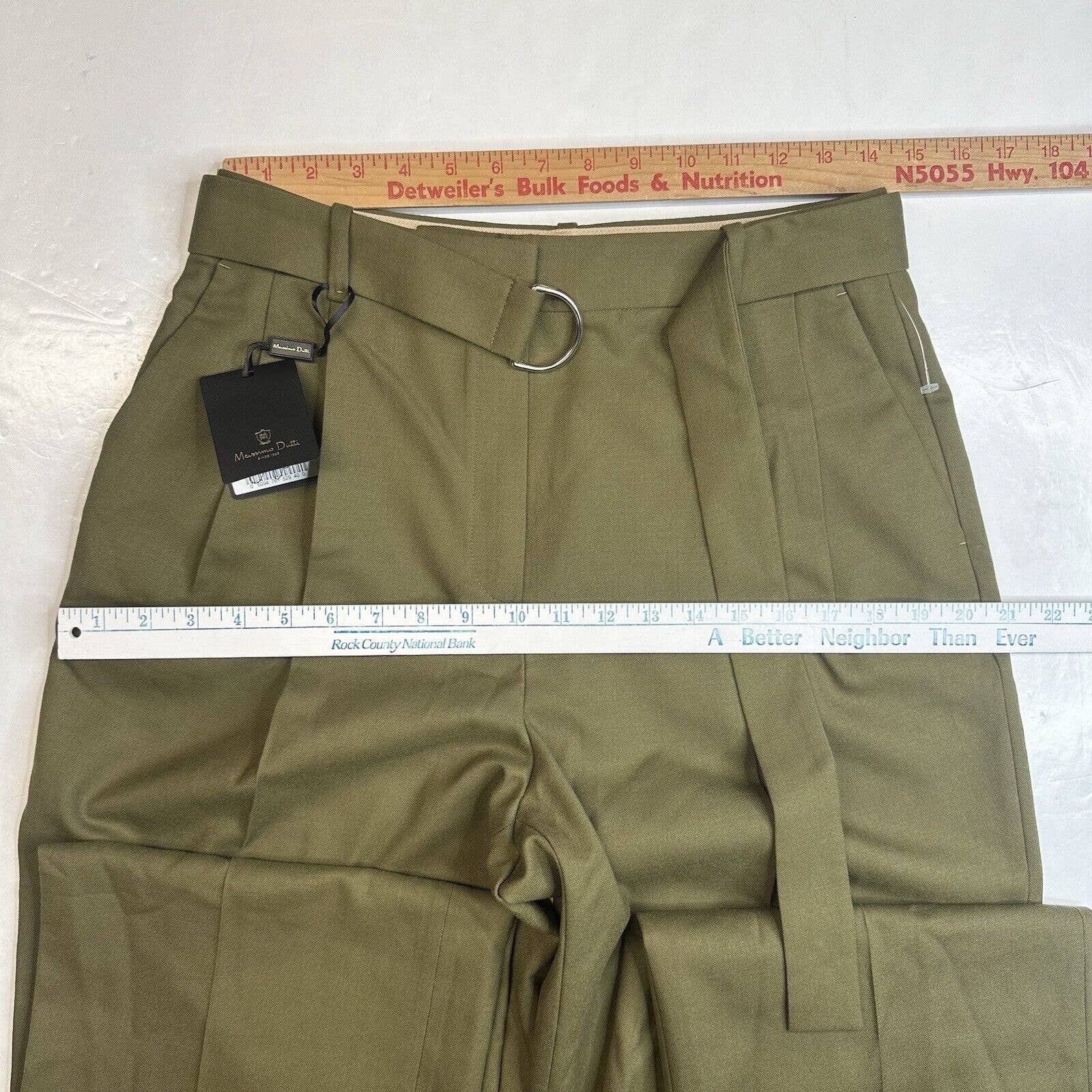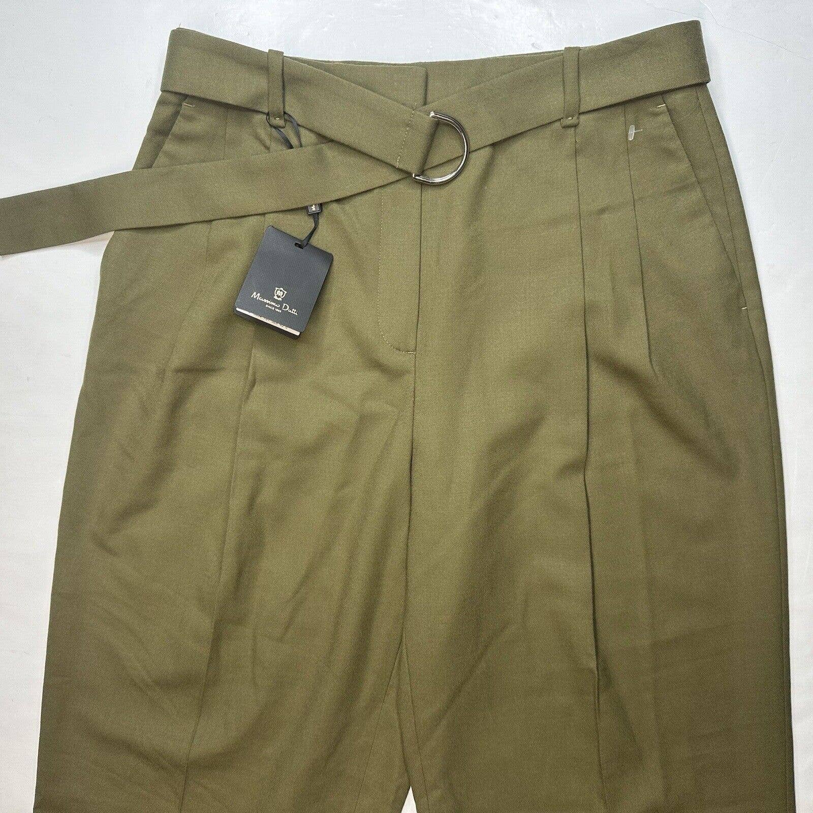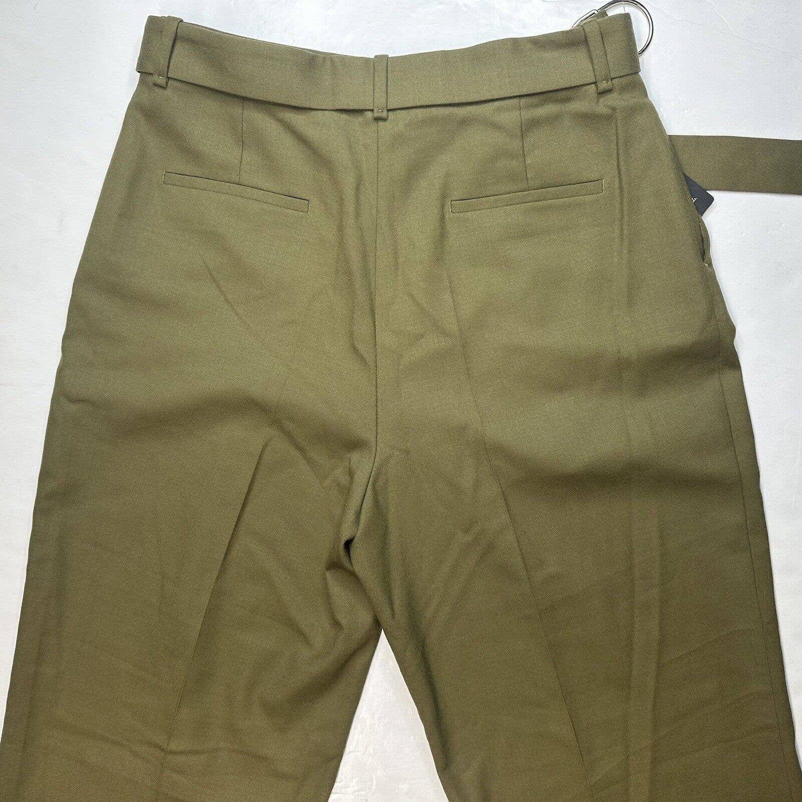 Massimo Dutti Wide Leg Trousers Womens Euro 40 (US 8) Green Wool Blend Pleated Pants Wit Belt NWT Brand NEW Career/Contempory/Minimalist/Dress/Fall