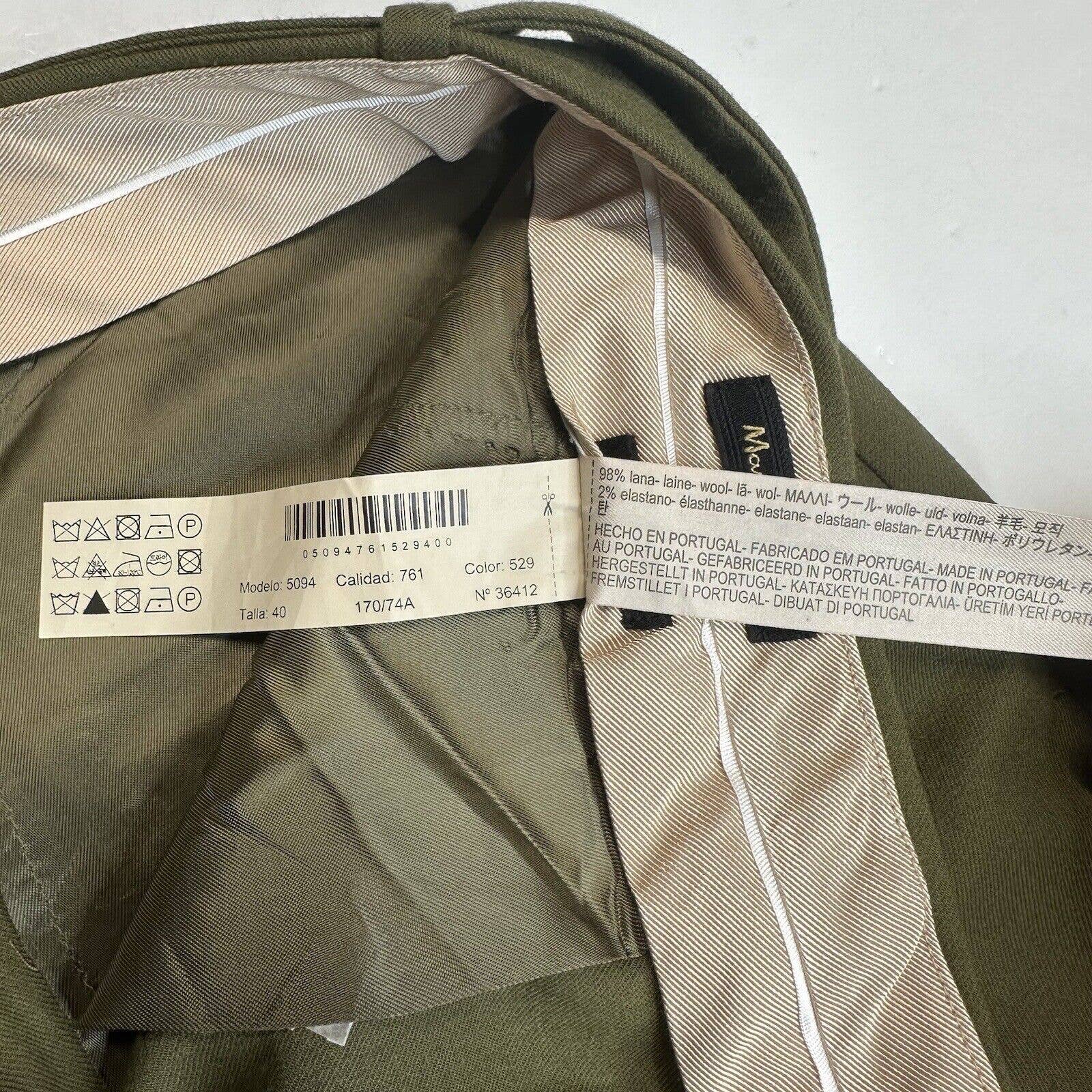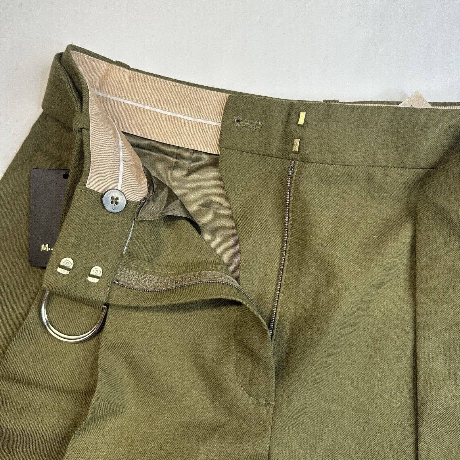 Massimo Dutti Wide Leg Trousers Euro 40 (US 8) Green Wool Blend Pleated Belt NEW