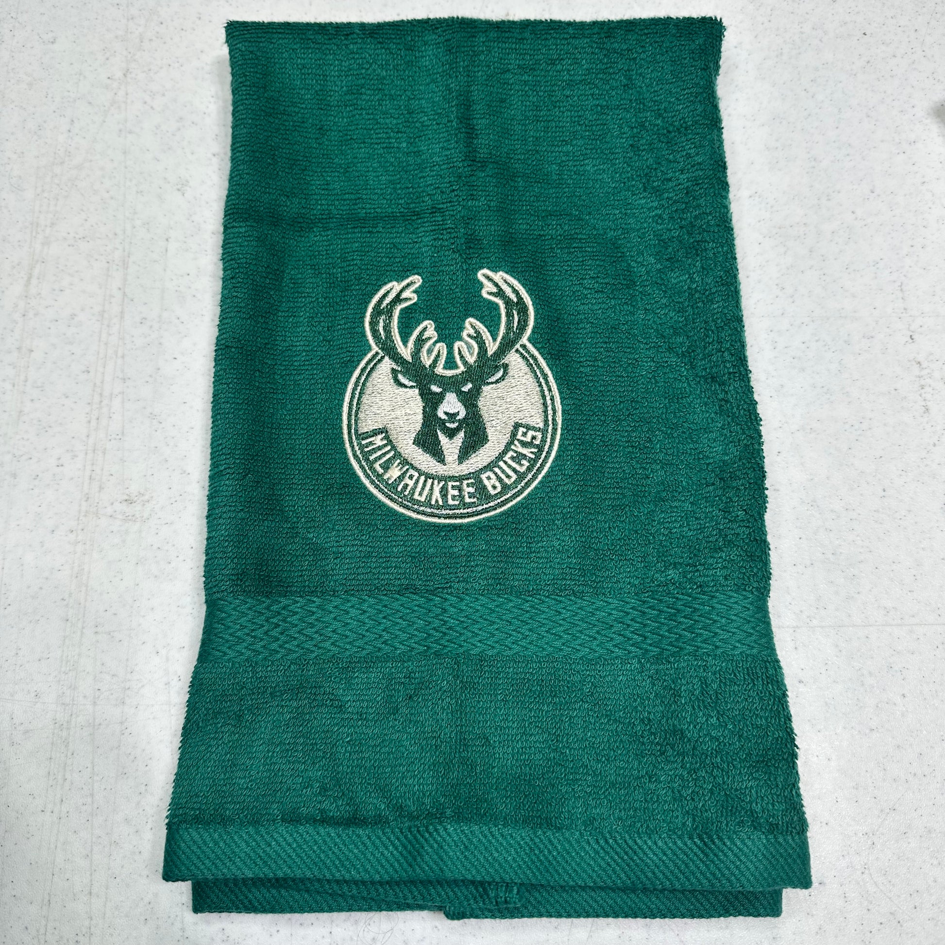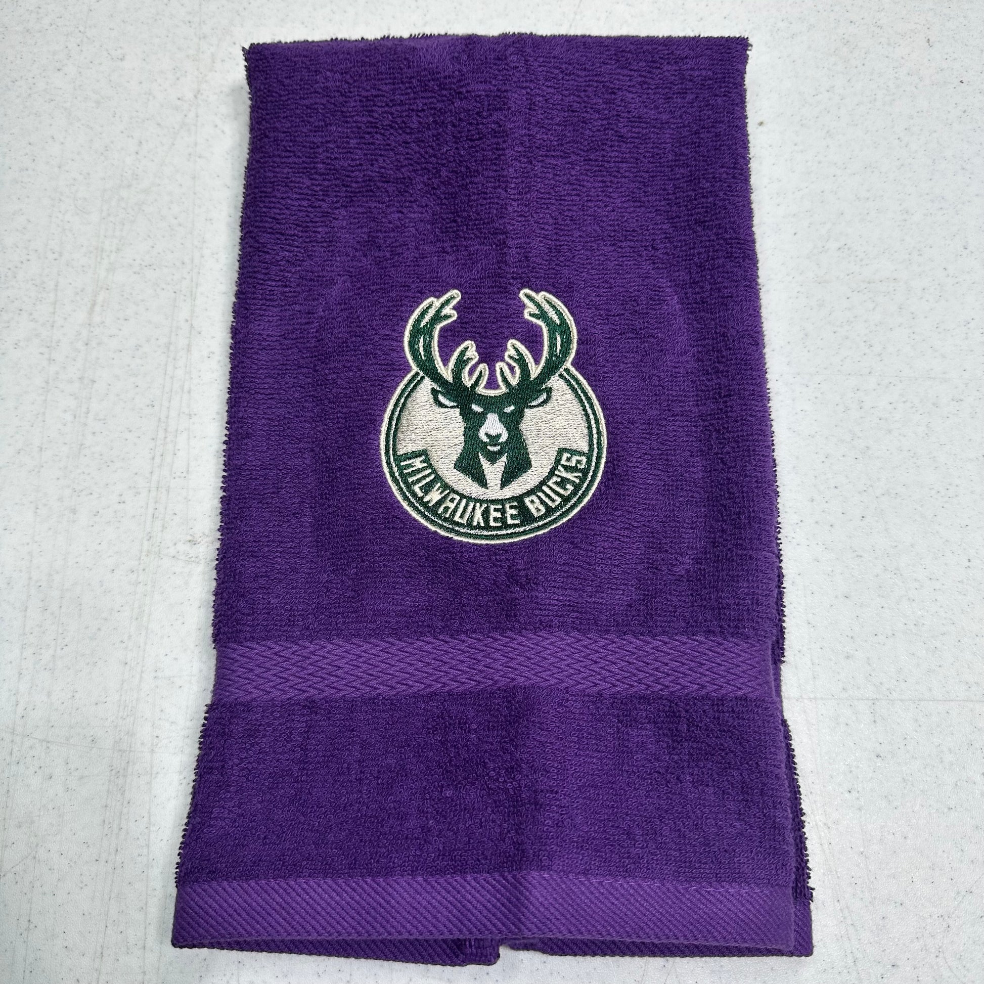 Milwaukee Bucks Team Towels Embroidered Hand Towel Set of 2 Beige Green or Purple Bathroom Home Decor Sports Basketball Lover Gift