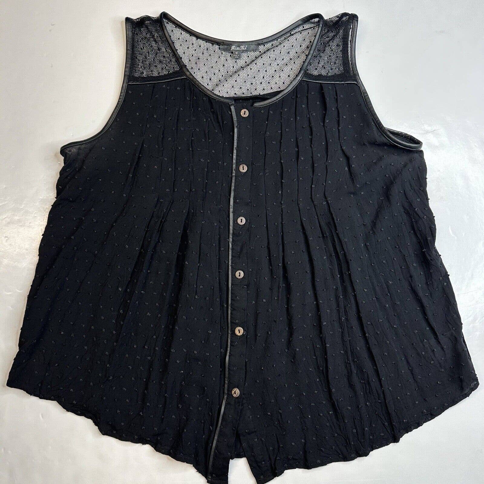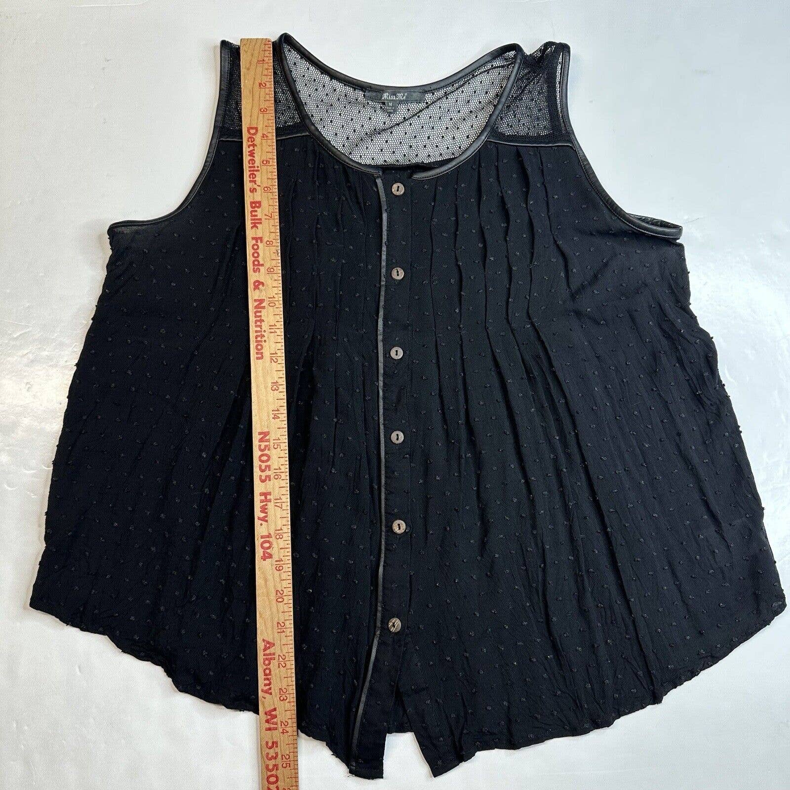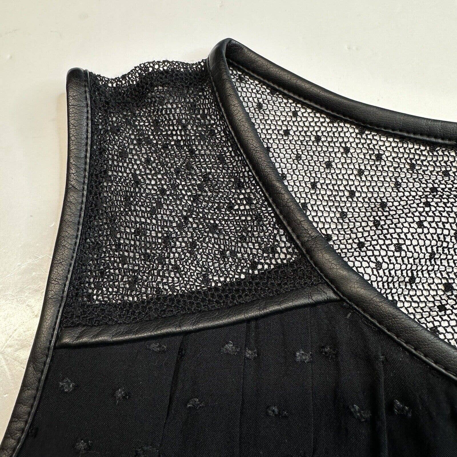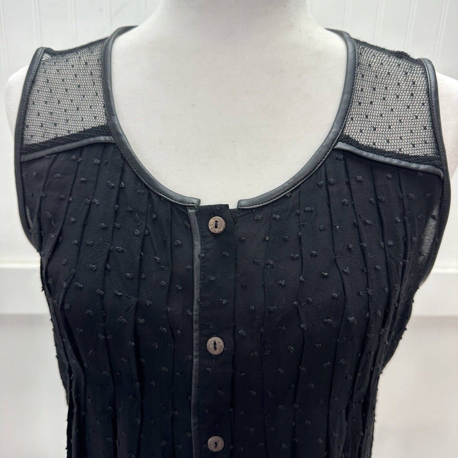 Miss Me Button Up Tank Top Sz Medium Black Sleeveless Faux Leather Trim Sheer