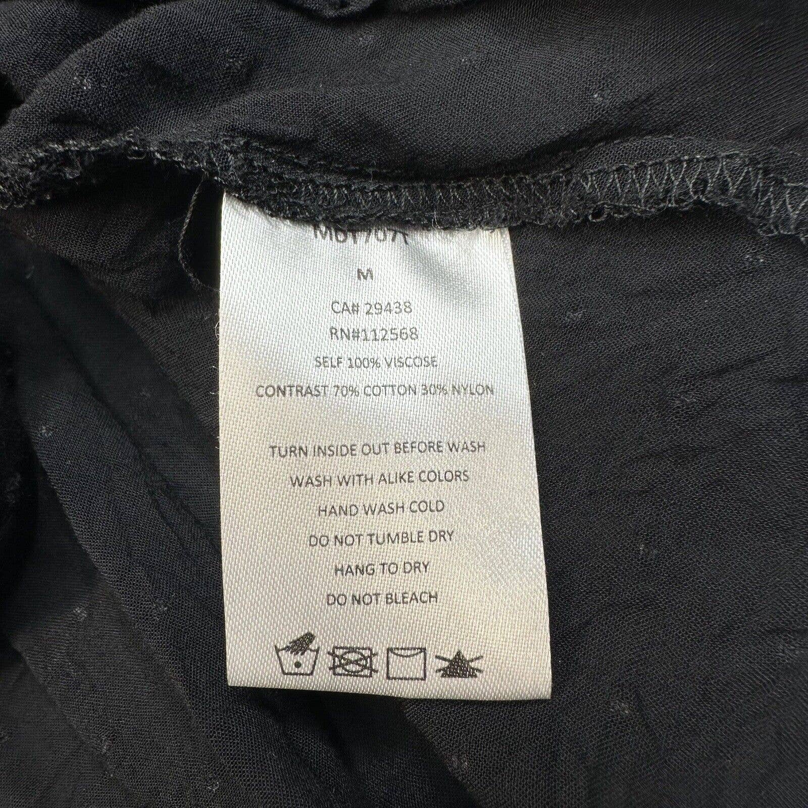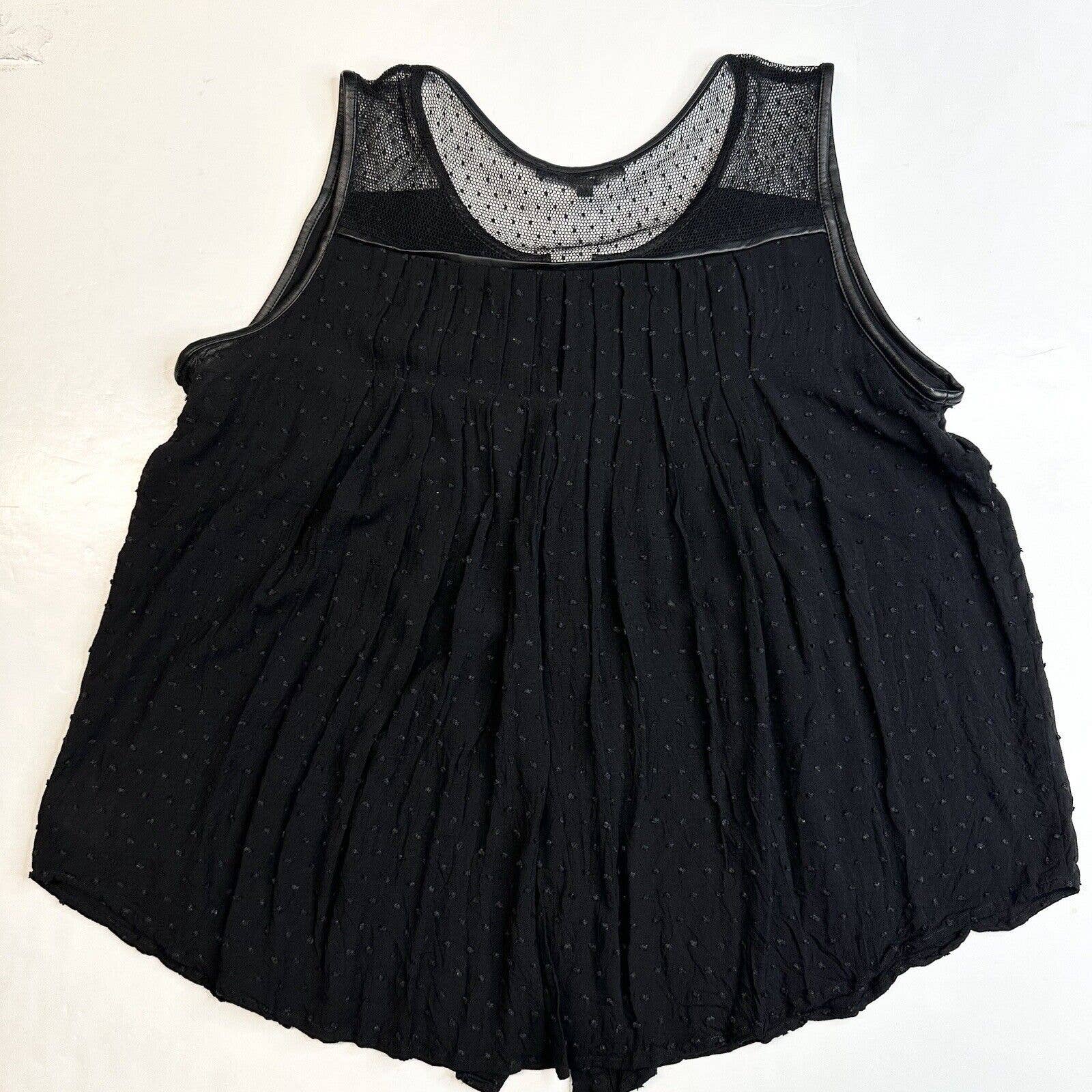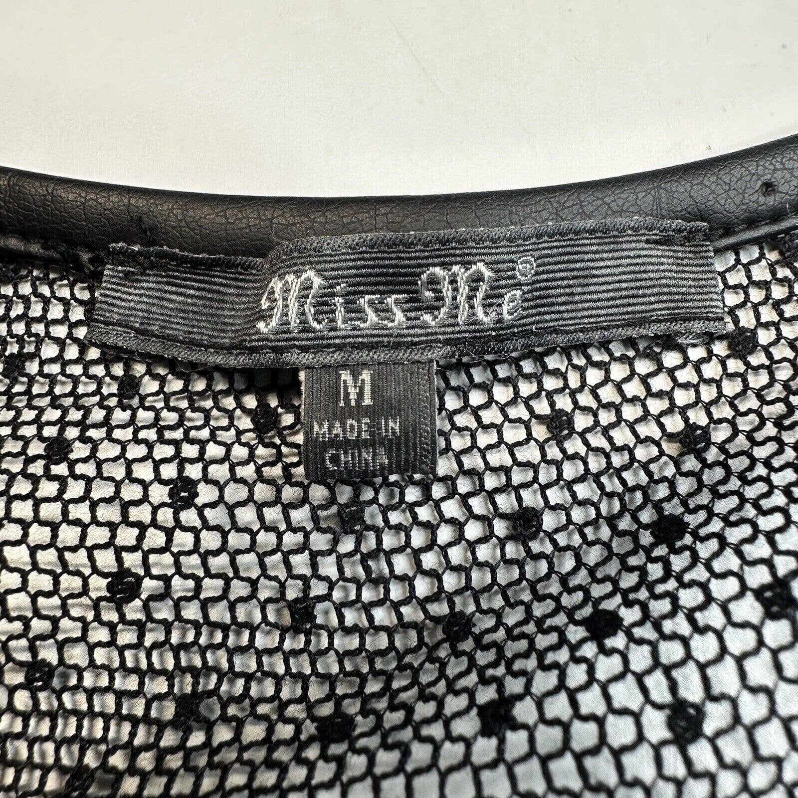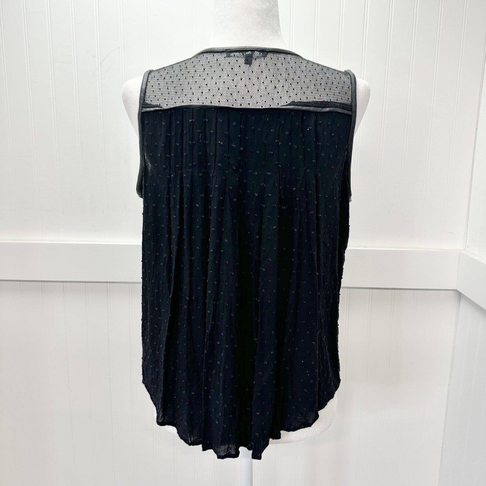 Miss Me Button Up Tank Top Sz Medium Black Sleeveless Faux Leather Trim Sheer