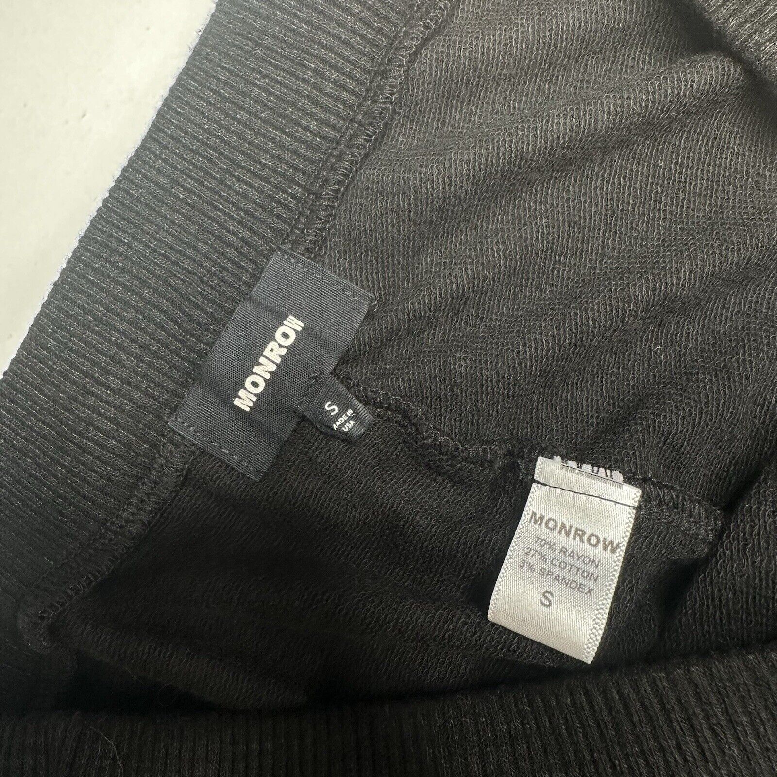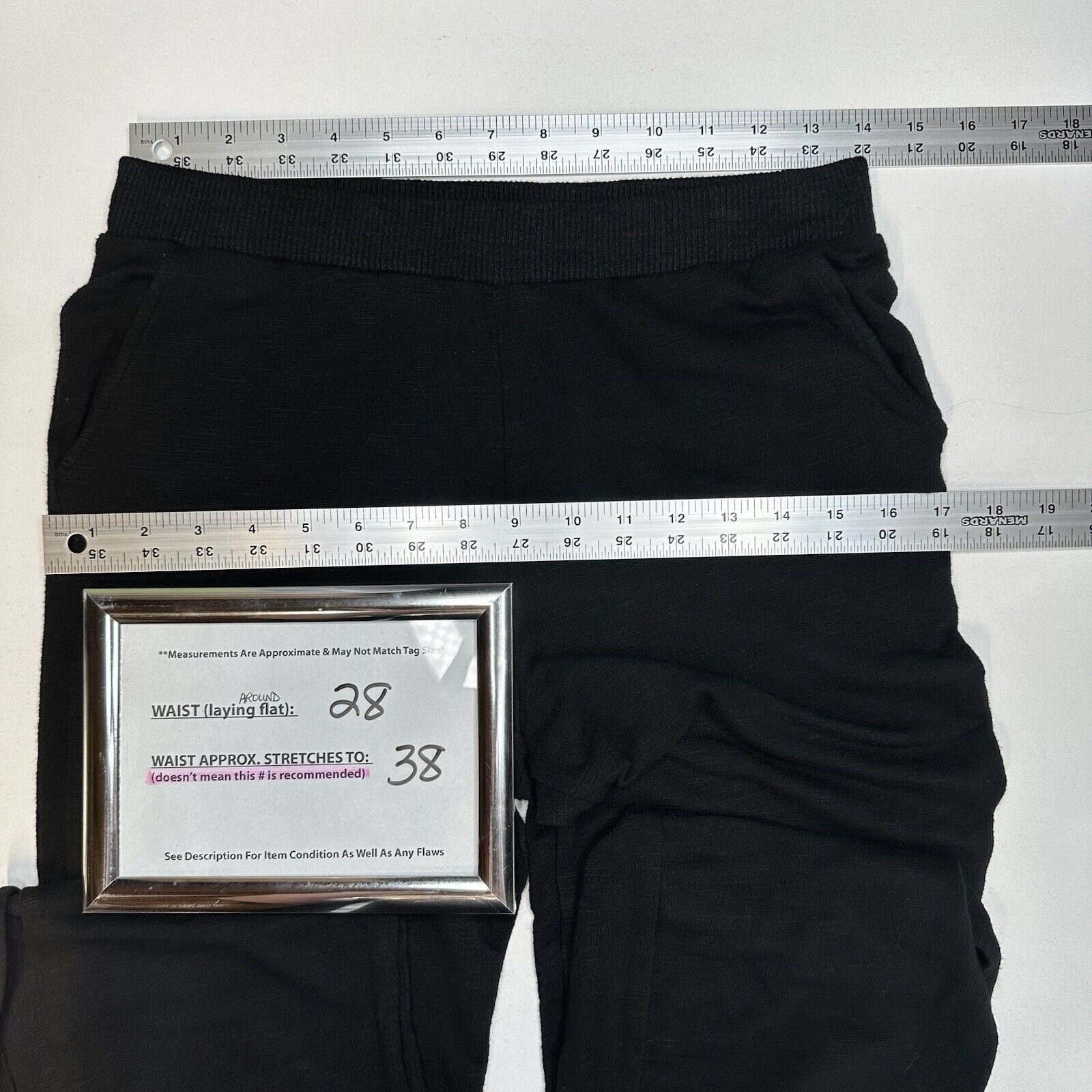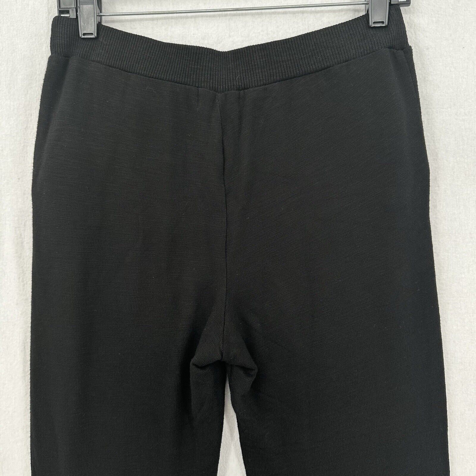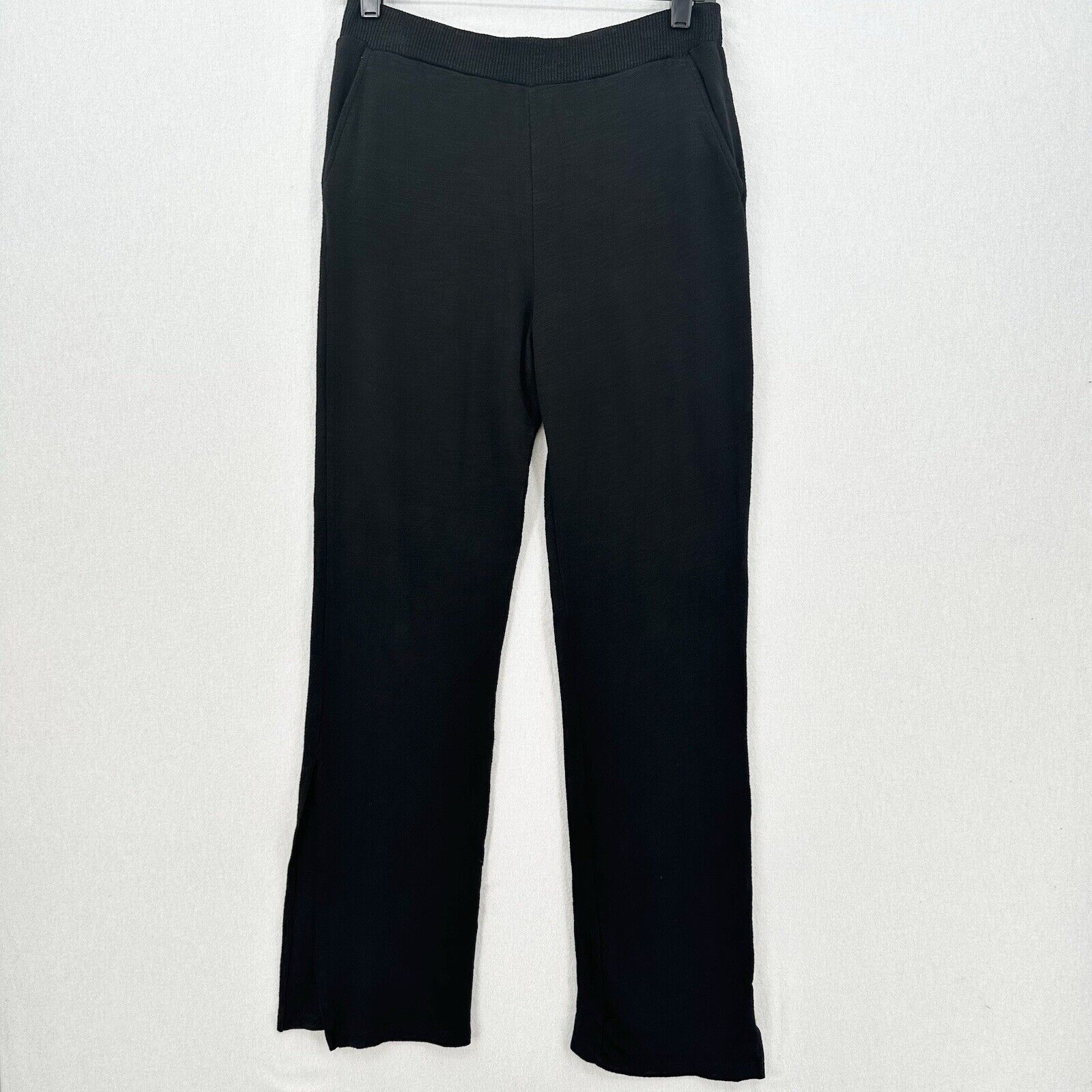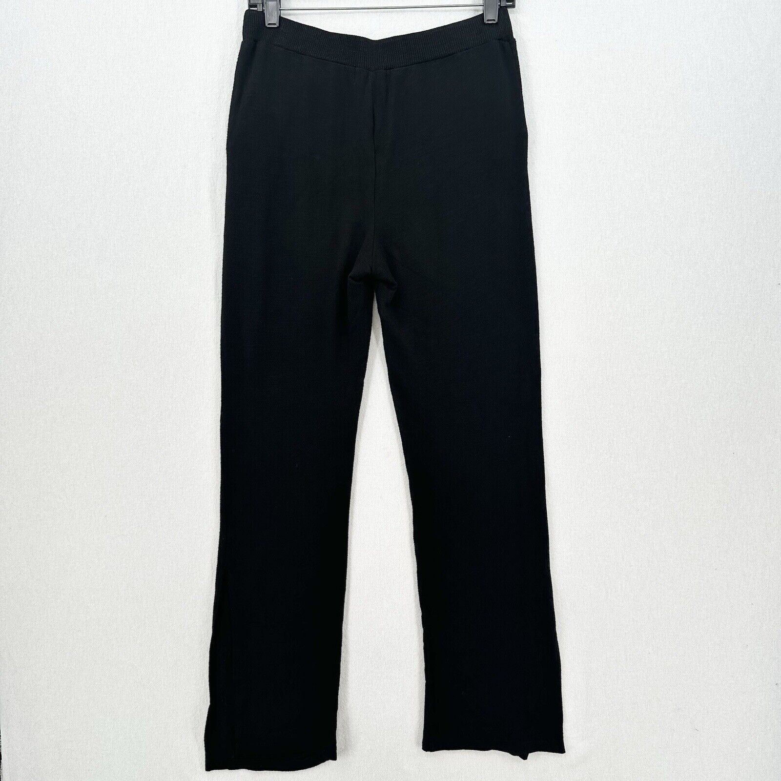 Monrow Pants Womens Small SuperSoft Straight Black Knit Pull On Split Hems Cozy Stretch Casual Leisure With Pockets