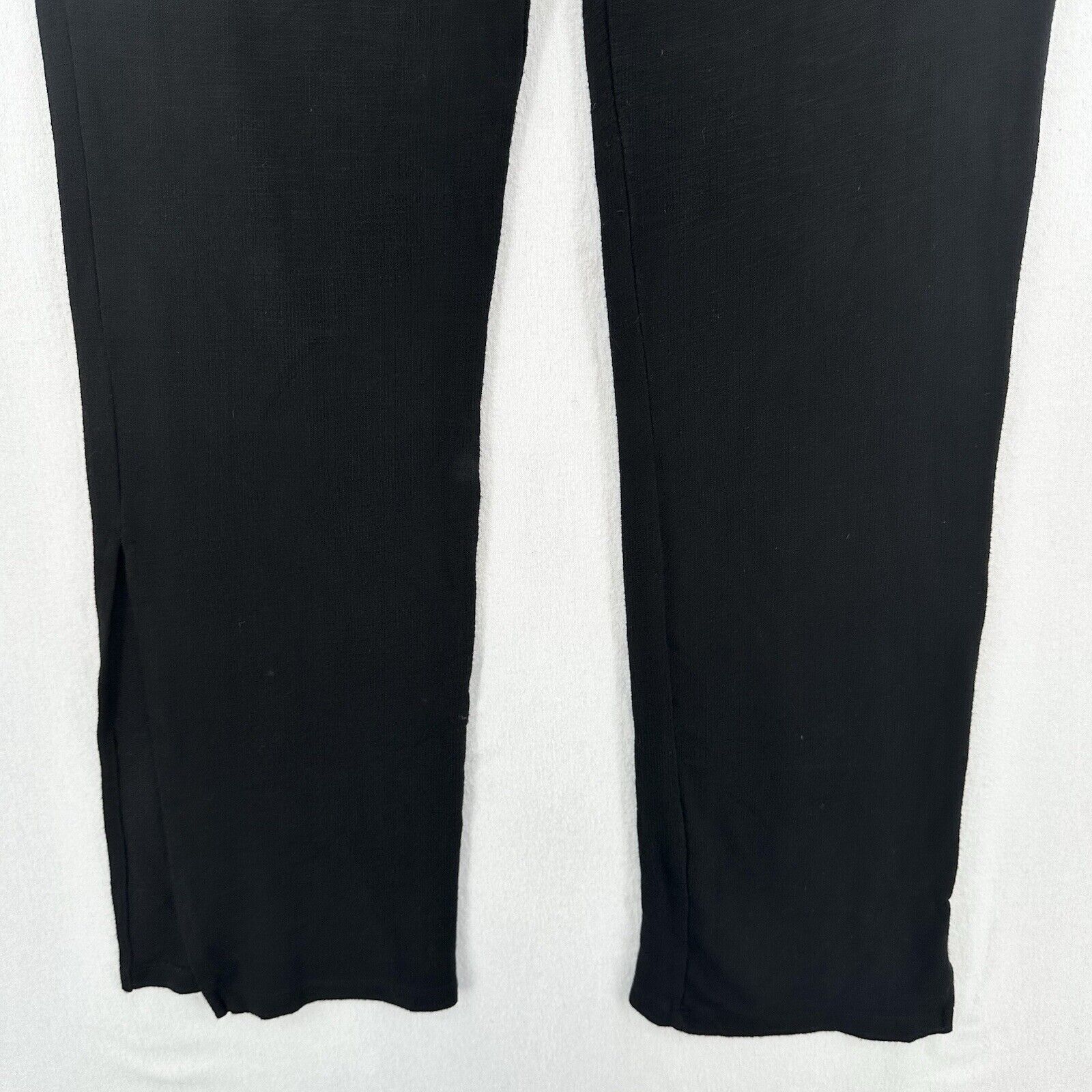 Monrow Pants Womens Small SuperSoft Straight Black Knit Pull On Split Hems Cozy