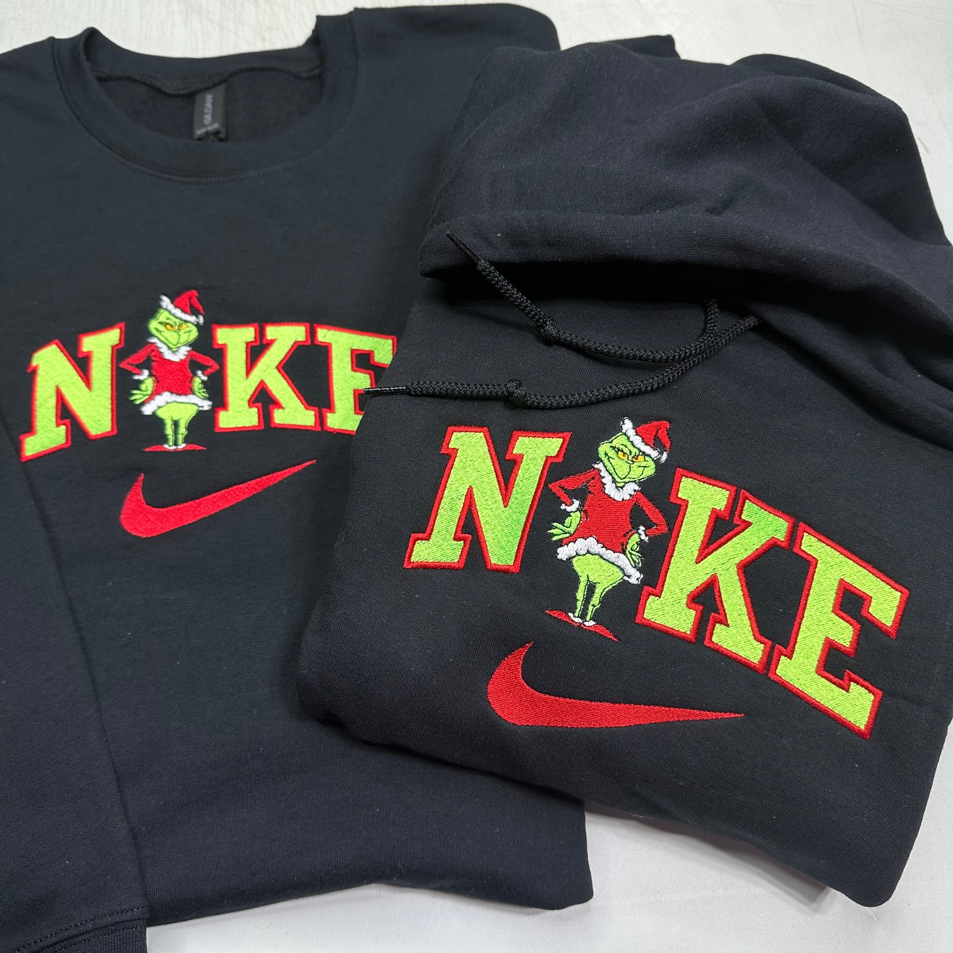Nike Grinch Embroidered ADULT Hoodie / Crewneck Sweatshirt Christmas Grinch Green Font