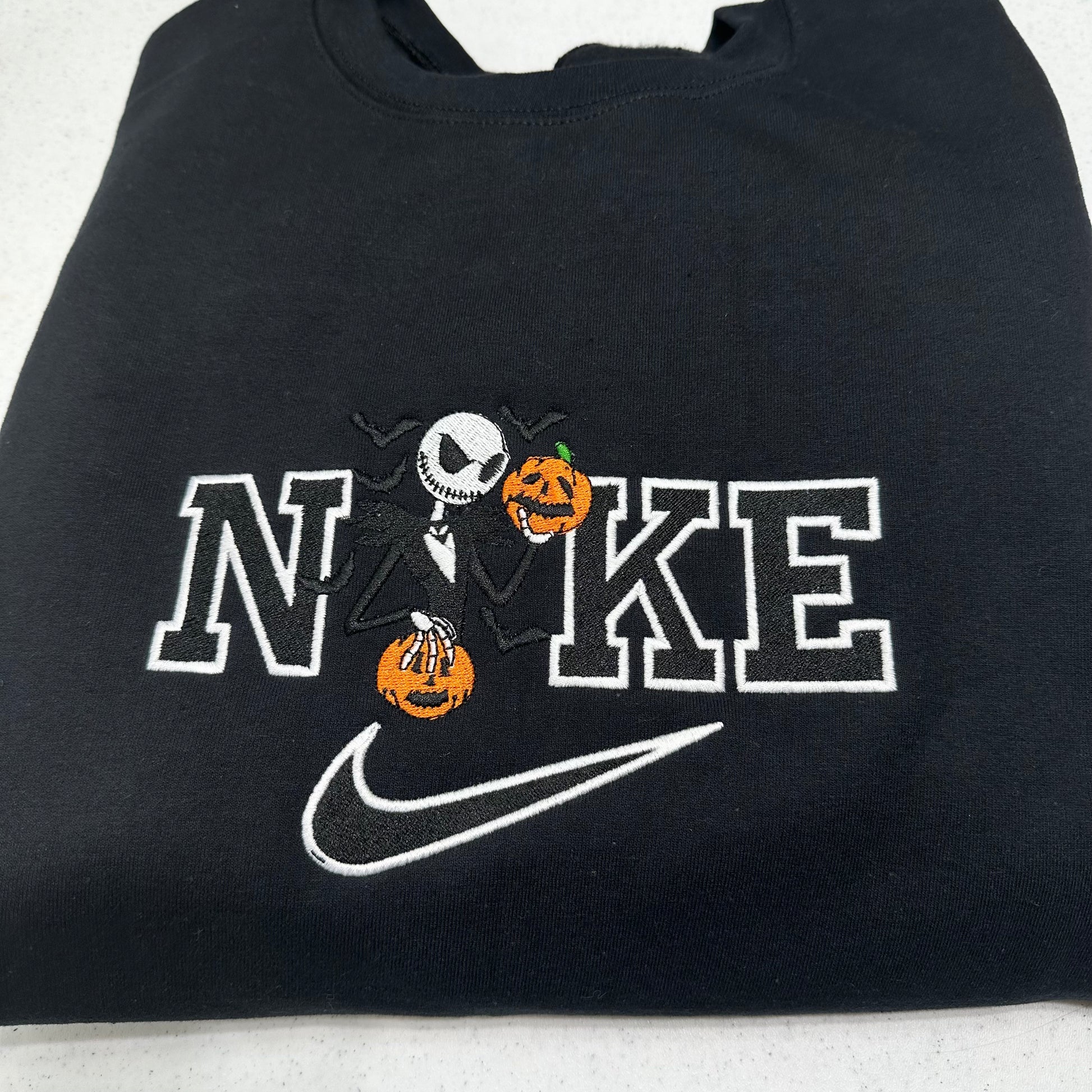Nike Jack Skellington Halloween Embroidered ADULT Hoodie / Crewneck Sweatshirt Unisex Pumpkins Nightmare Before Christmas