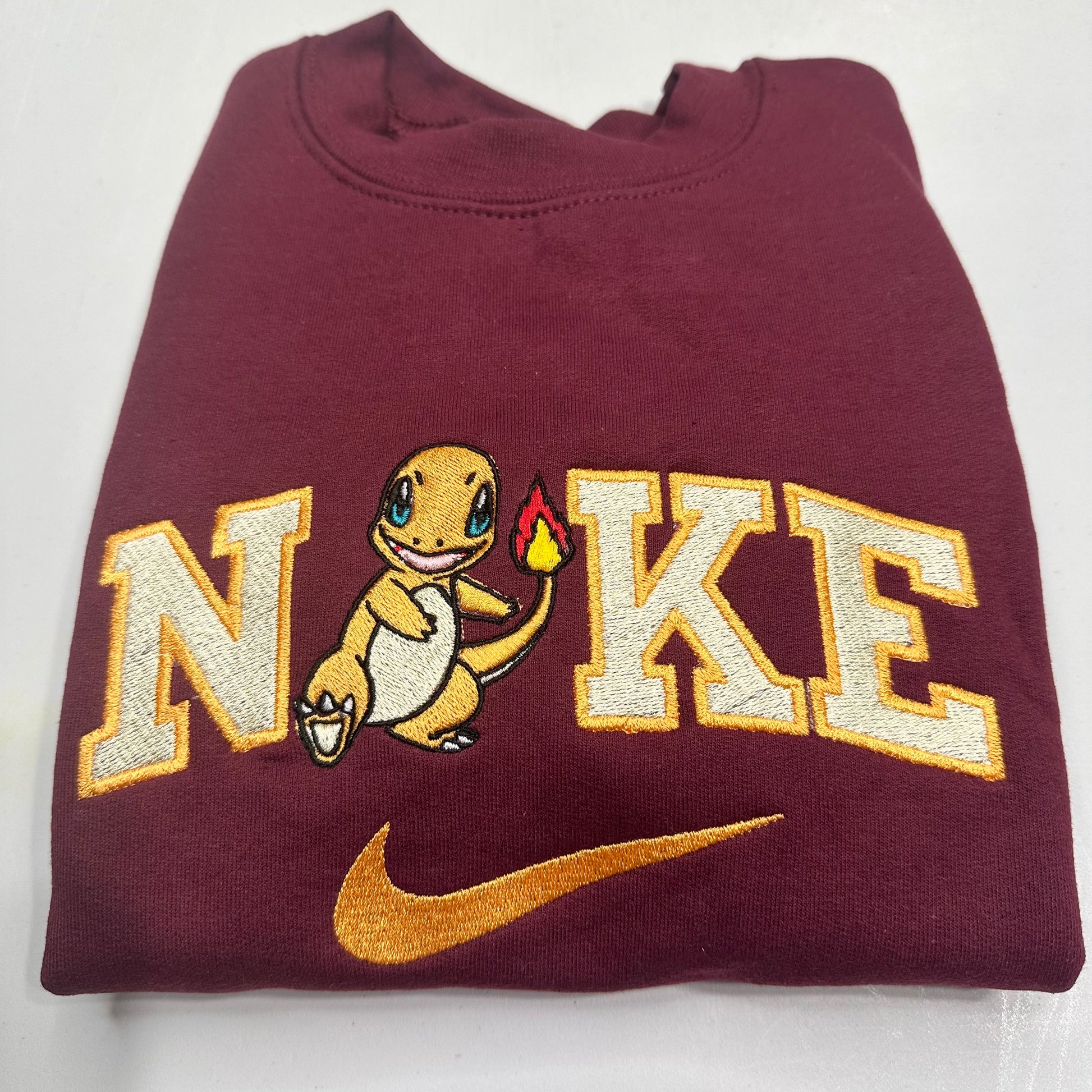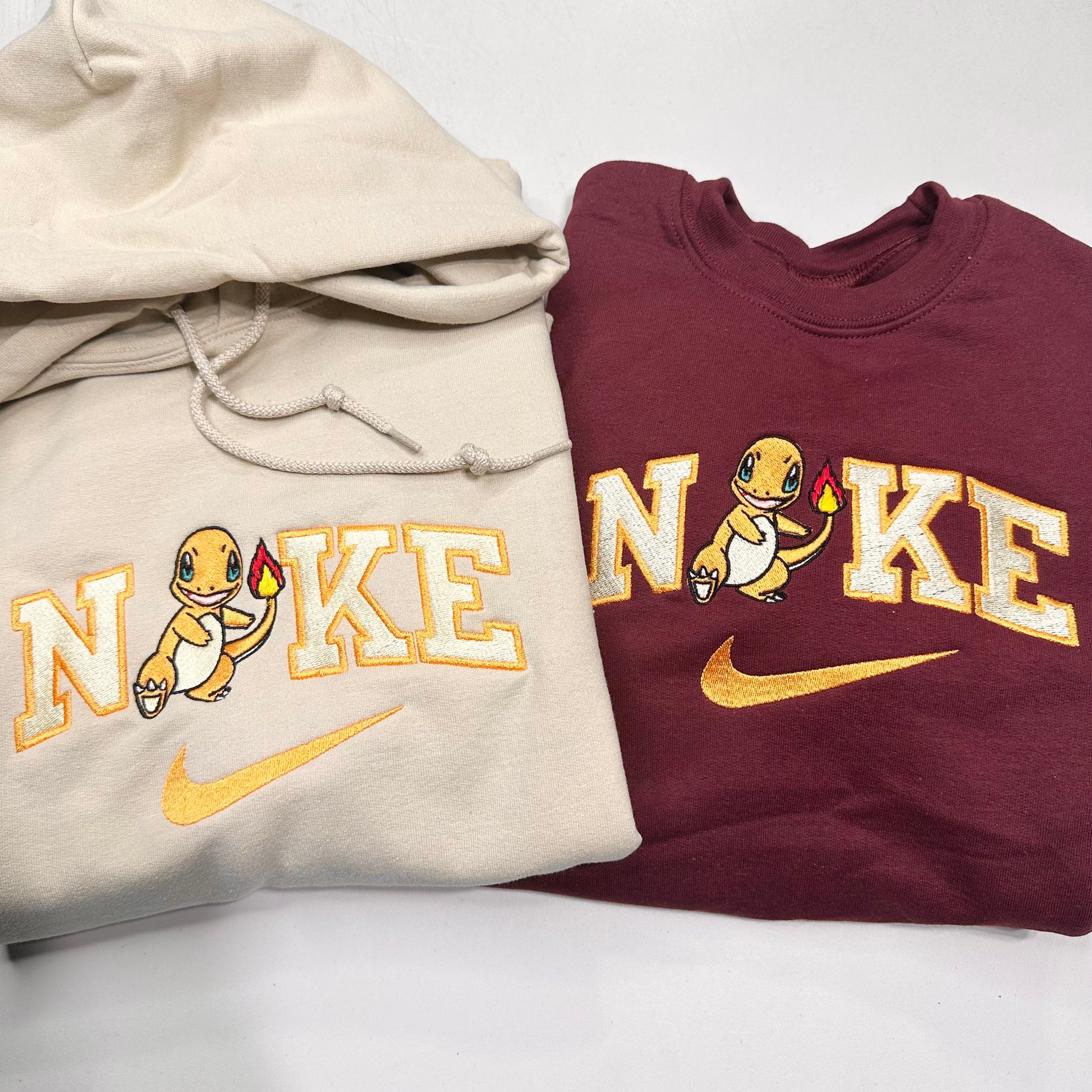 Nike Pokemon Charmander Embroidered Crewneck or Hooded Sweatshirt Cozy Adult Unisex Pullover Long Sleeve Top Cartoon Video Game Lover Gift