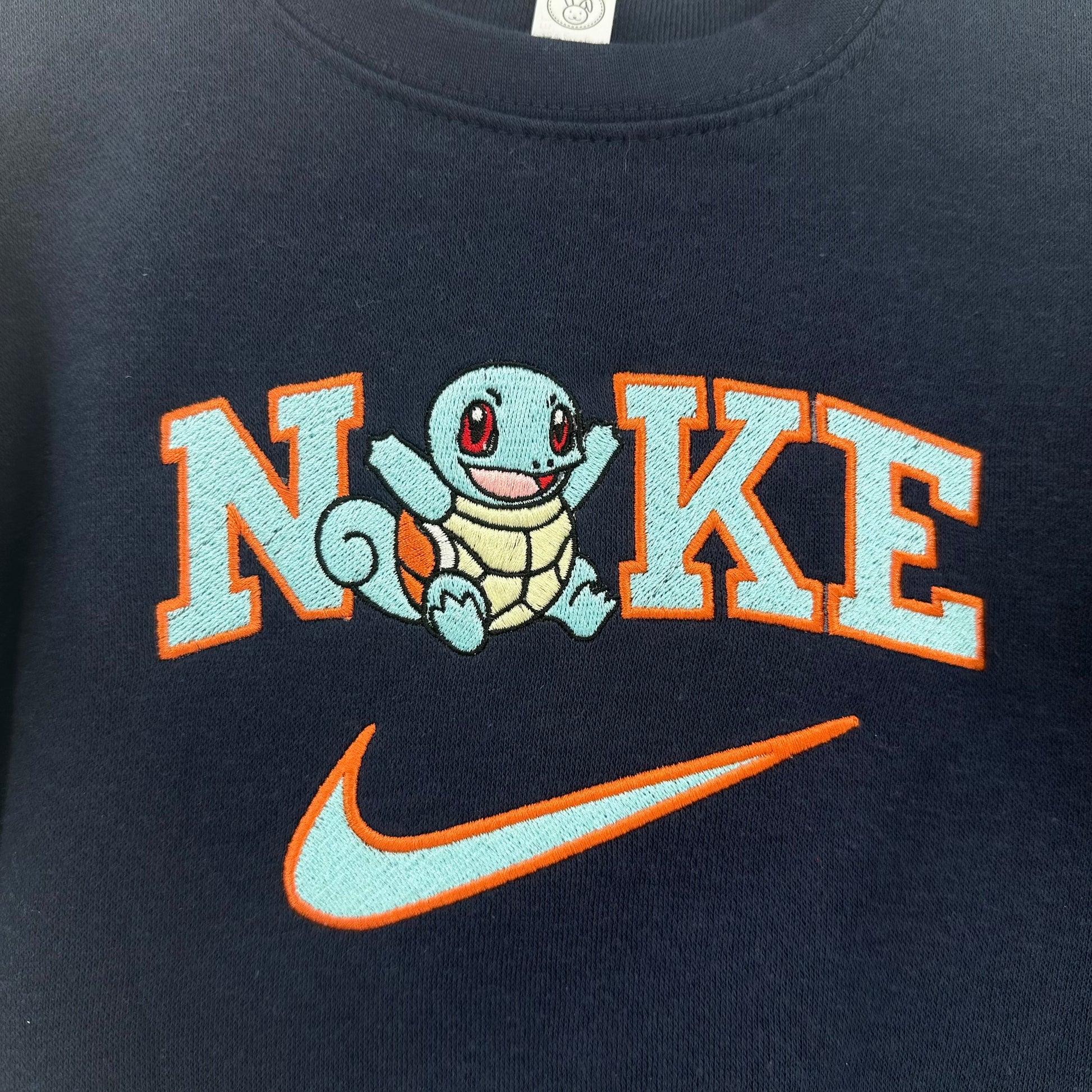 Nike Pokemon Squirtle Embroidered Youth Kids Crewneck or Hooded Sweatshirt Cozy Pullover Long Sleeve Top Cartoon Video Game Lover Gift
