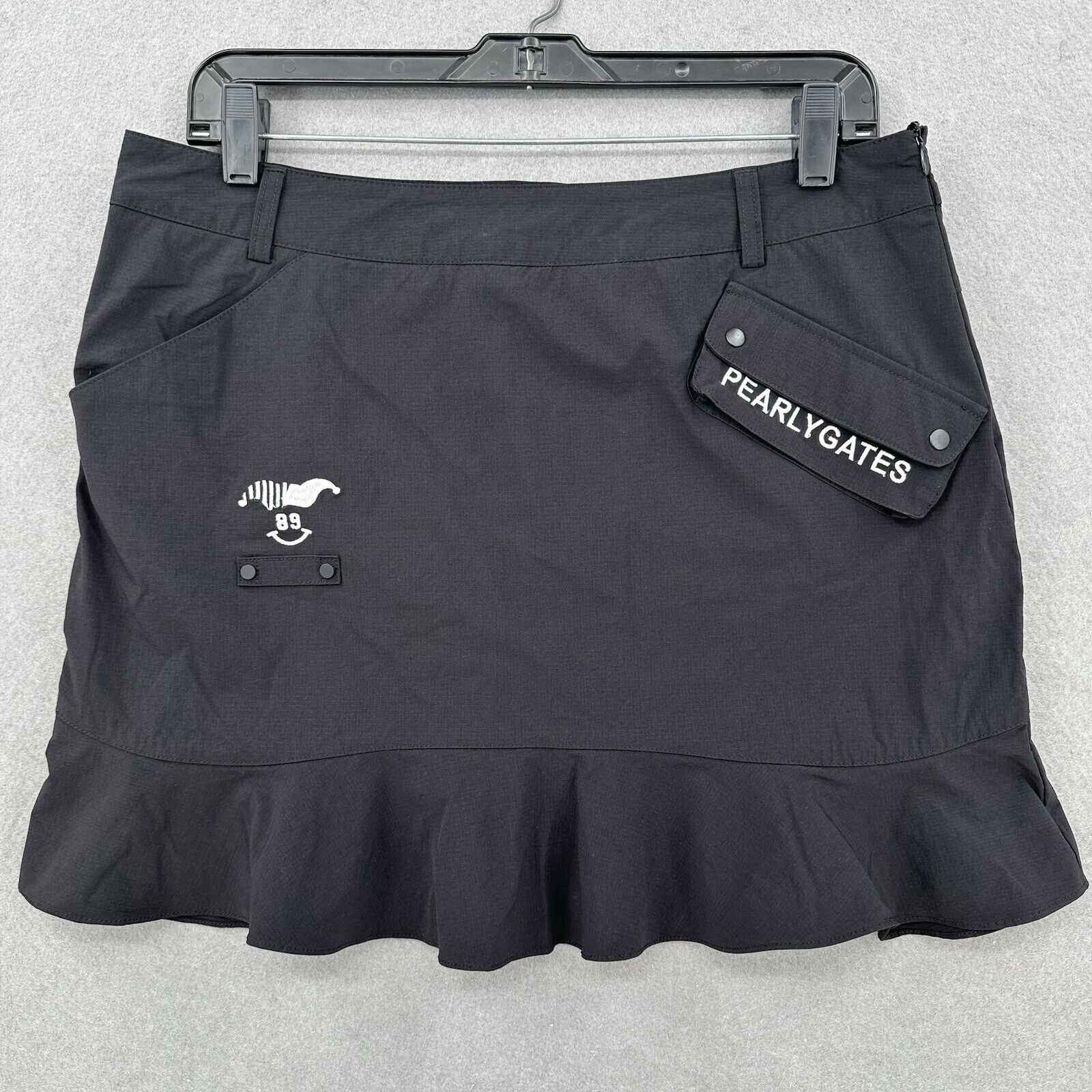 Pearly Gates Golf Skort Womens Korean Size XXL (See Size Chart In Photos Is US Size 12) Active Pickleball Tennis Black Ripstop Quick Dry Skirt/Shorts Embroidered With Pockets And Side Zipper EUC