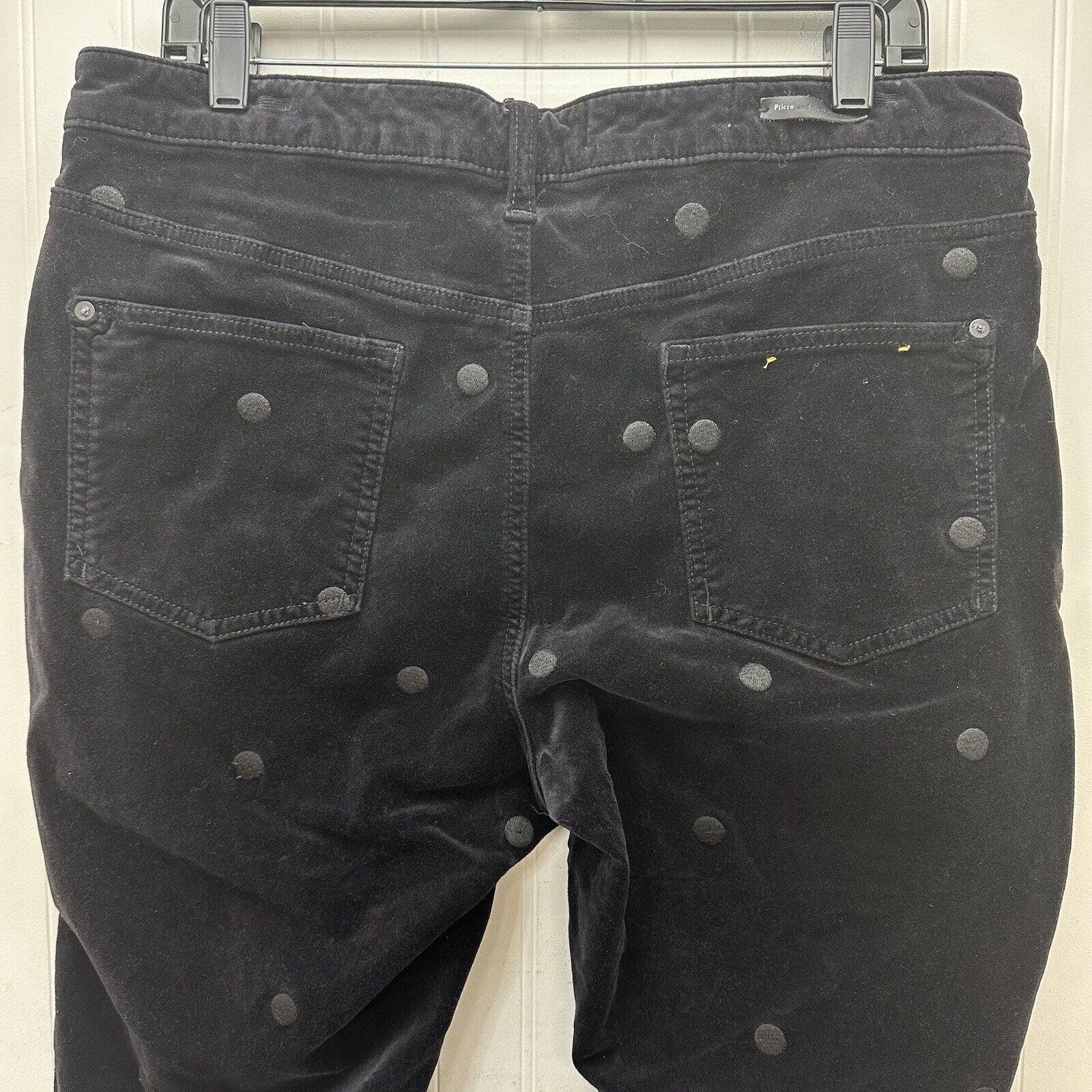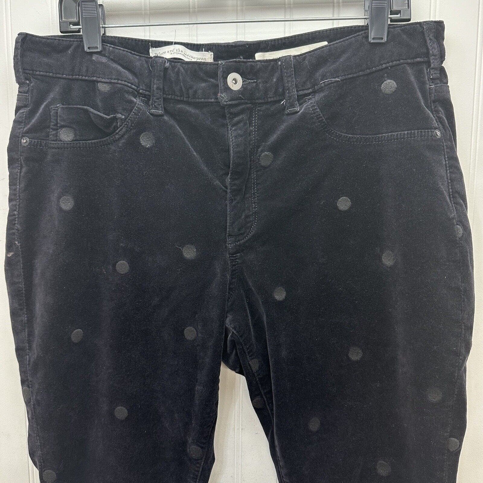 Pilcro Letterpress Jeans Womens 33 Black Velvet High Rise Skinny Polka Dots Stretch