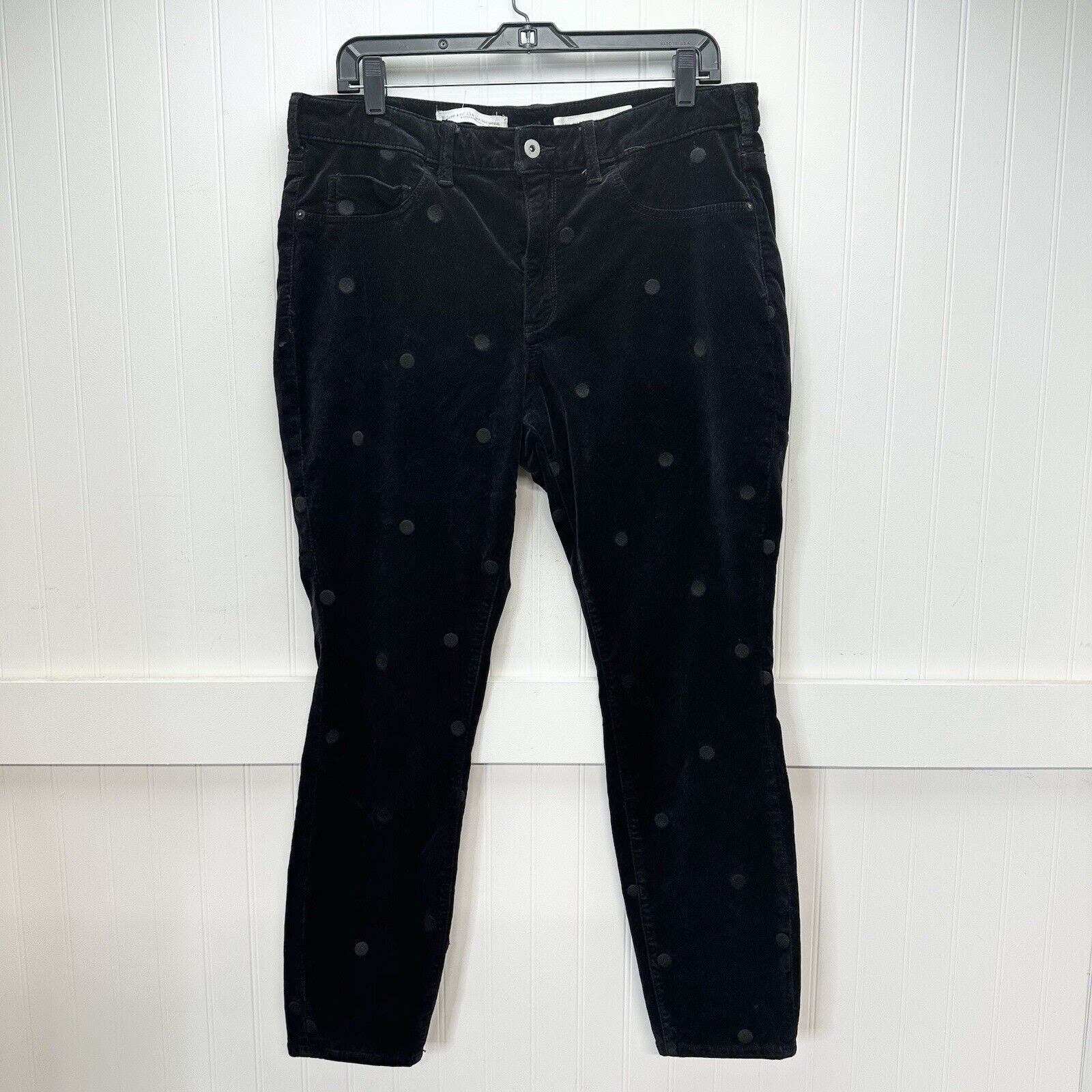 Pilcro Letterpress Jeans Womens 33 Black Velvet High Rise Skinny Polka Dots