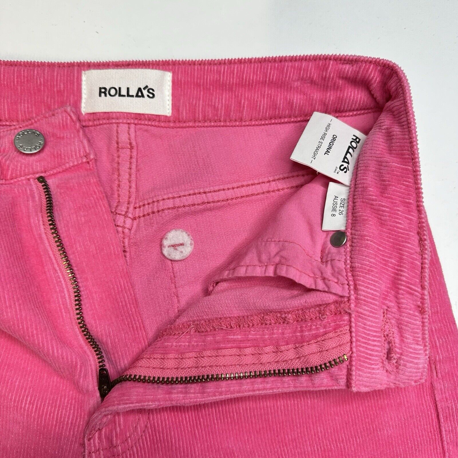 Rollas Corduroy Jeans Womens 26 Original Straight Hot Pink High Rise Preppy Barbie Casual 90s Y2K Academia Fall Winter School Club Rave