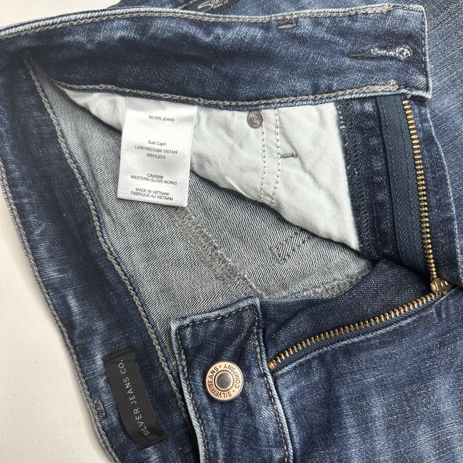 Silver Jeans Womens 31 Suki Capri Curvy Midrise Blue Stretch Denim Crop Western