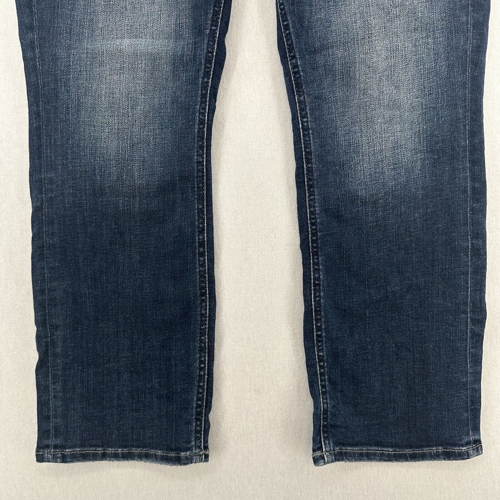Silver Jeans Womens 31 Suki Capri Curvy Midrise Blue Stretch Denim Crop Dark Wash Western Cowboy Cowgirl Rodeo Buckle