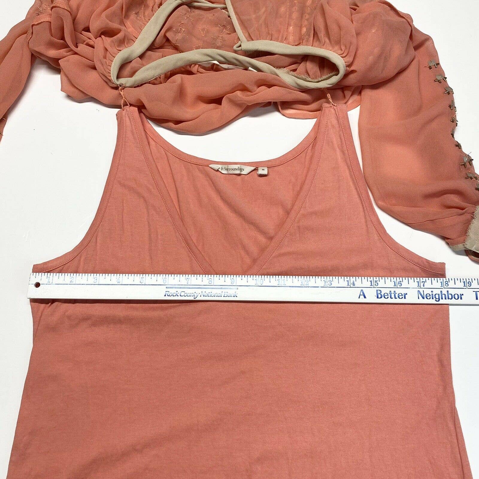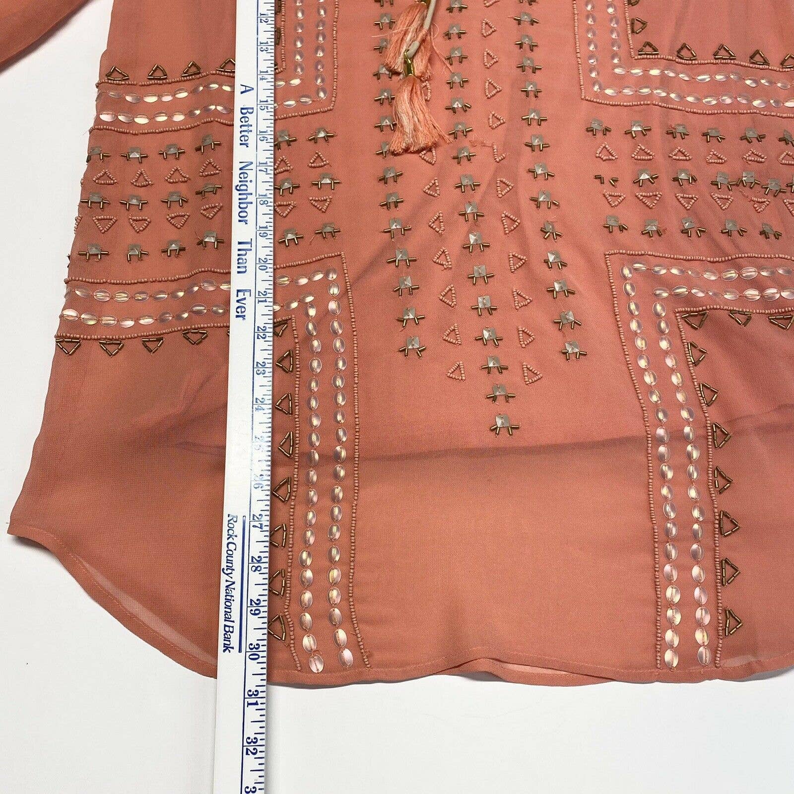 Soft Surroundings Beaded Tunic & Tank Top 2pc Set (Tag Size Medium) Womens Peach Boho Long Sleeve Blouse With Tassels And Matching Tunic Tank Top