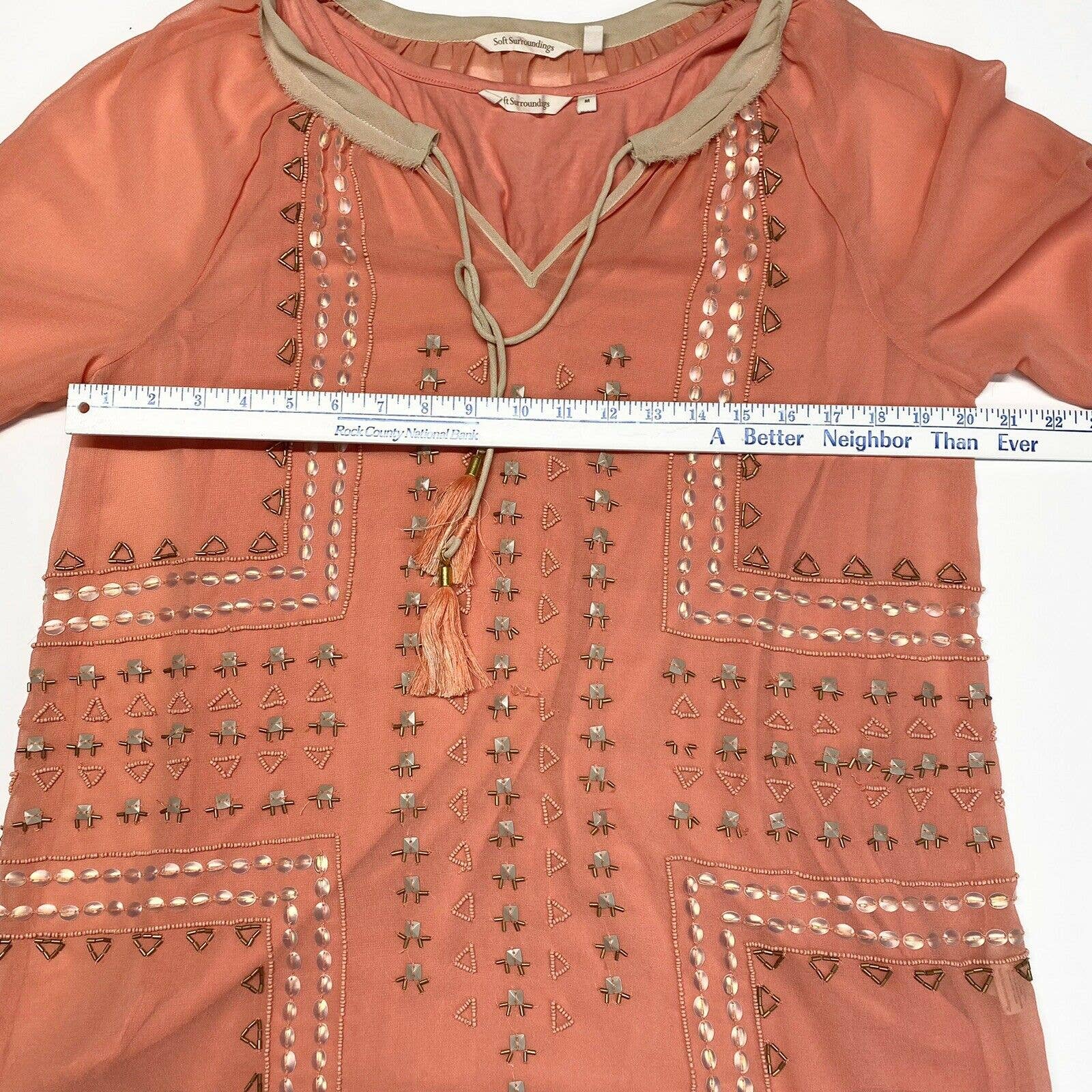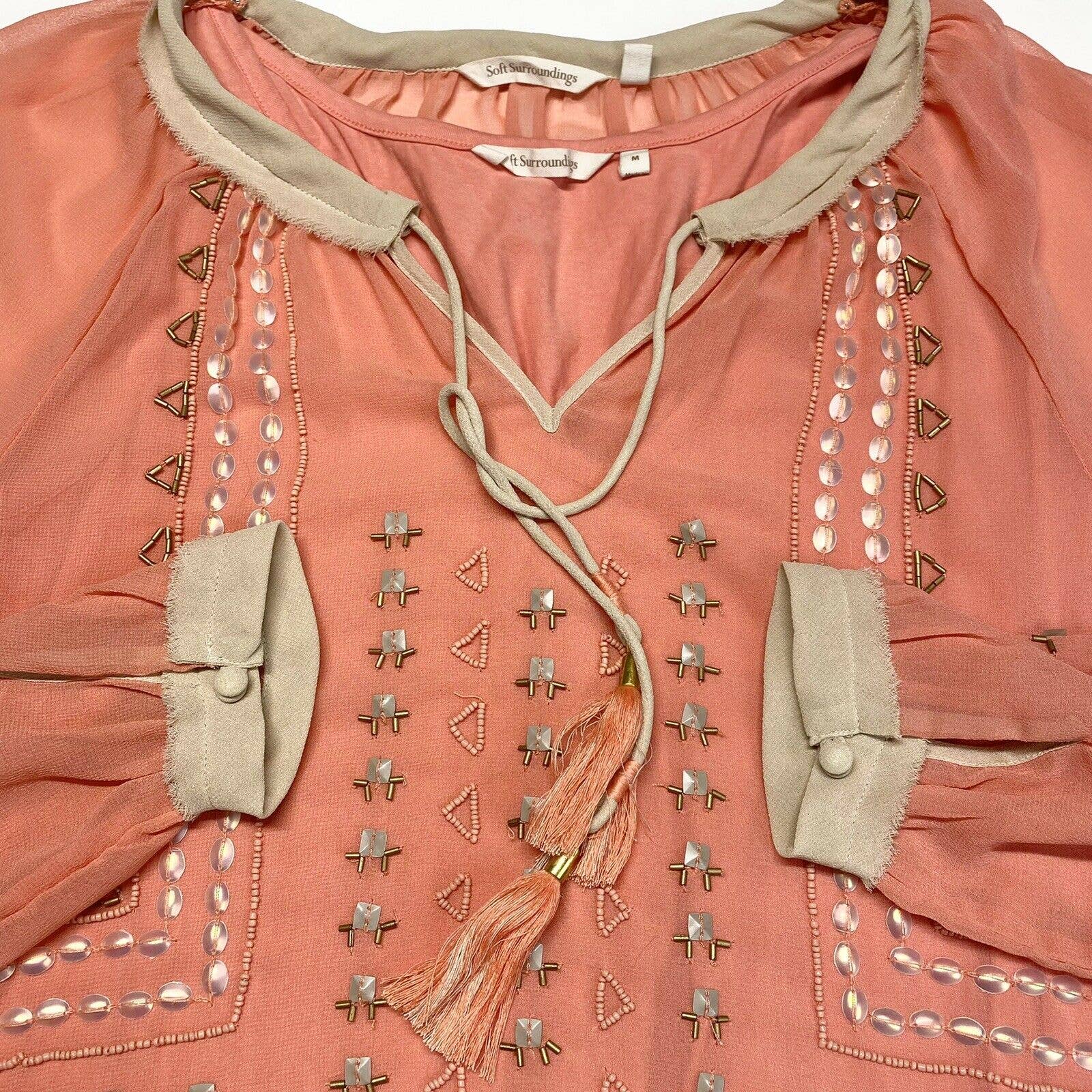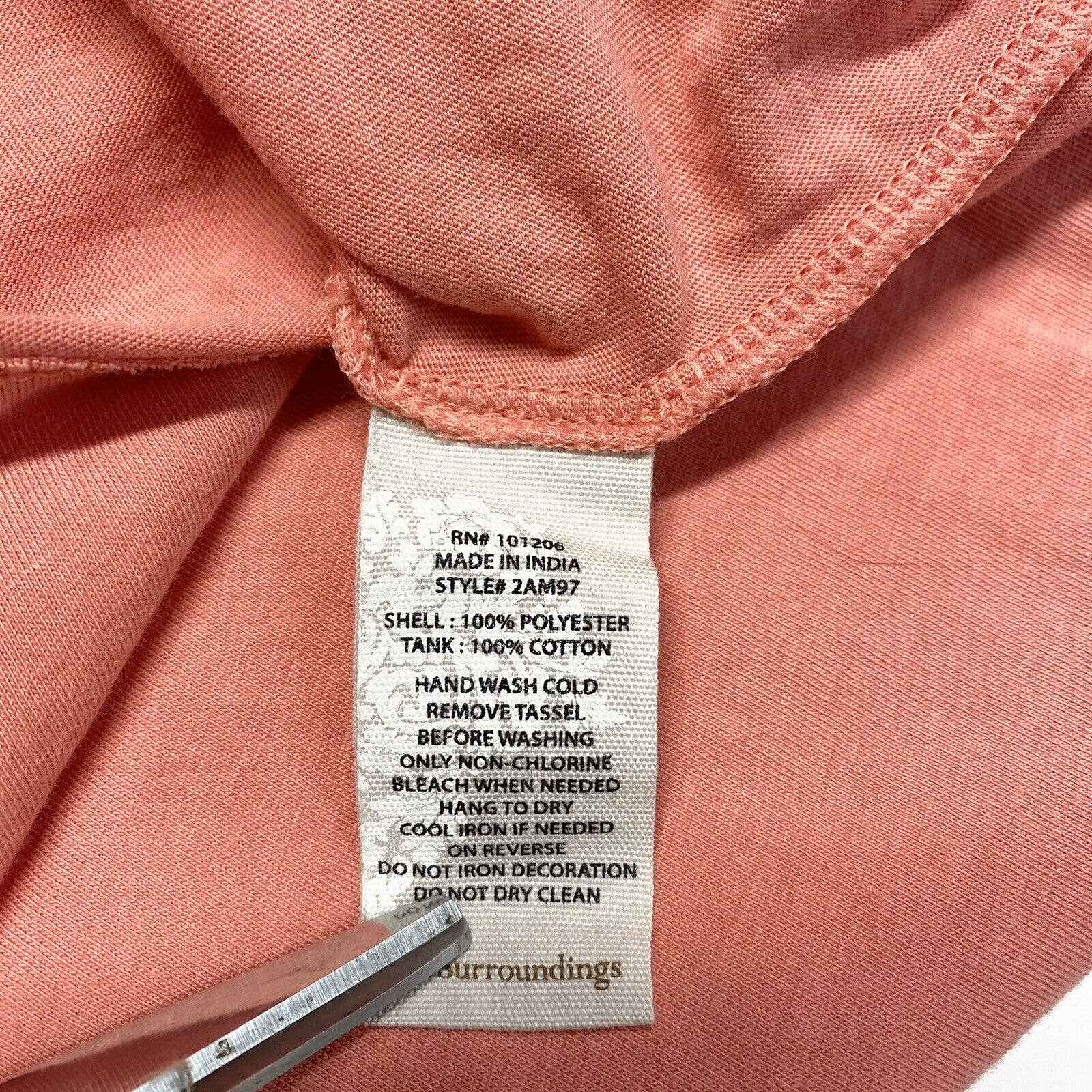 Soft Surroundings Beaded Tunic & Tank Top 2pc Set Sz Medium Peach Boho Tassels