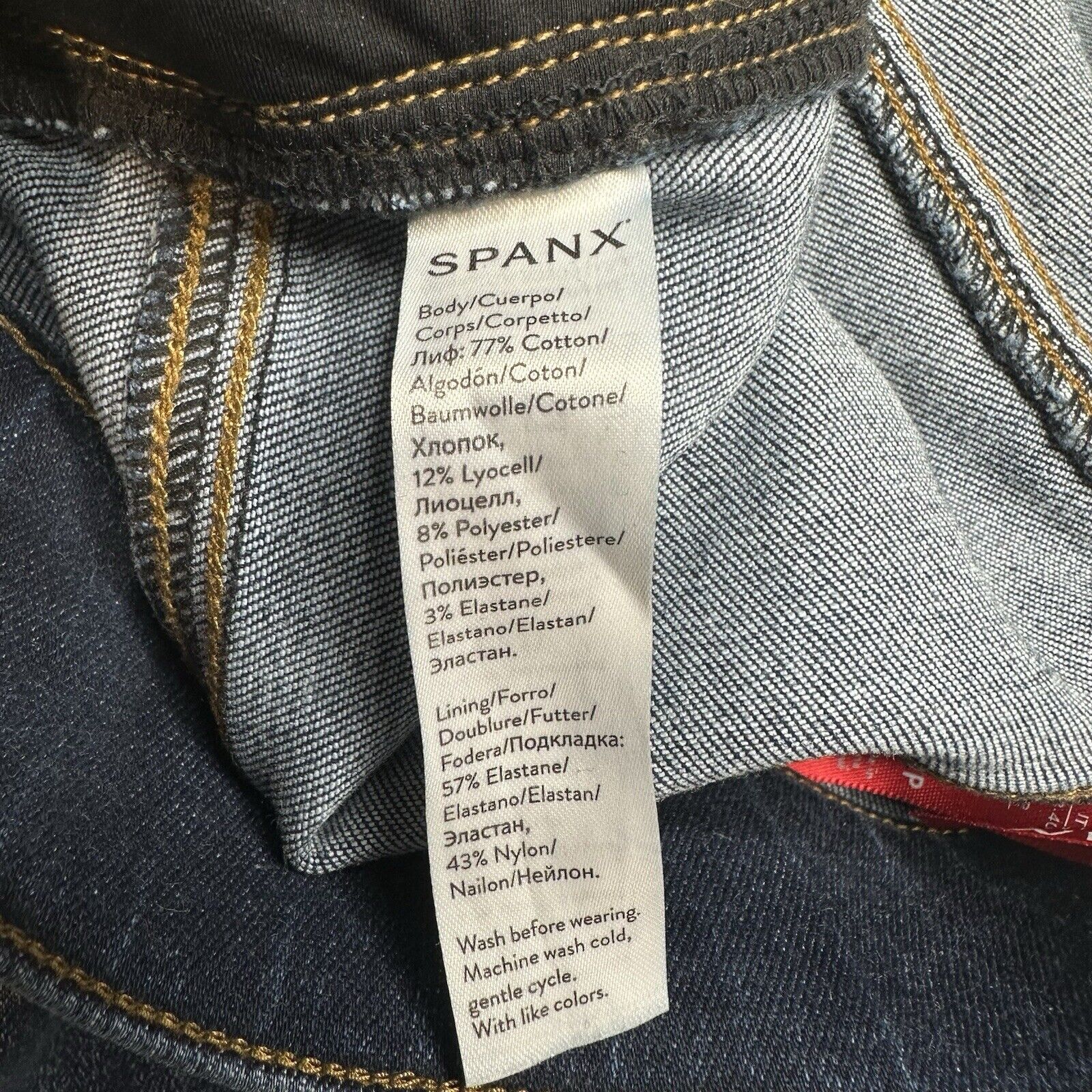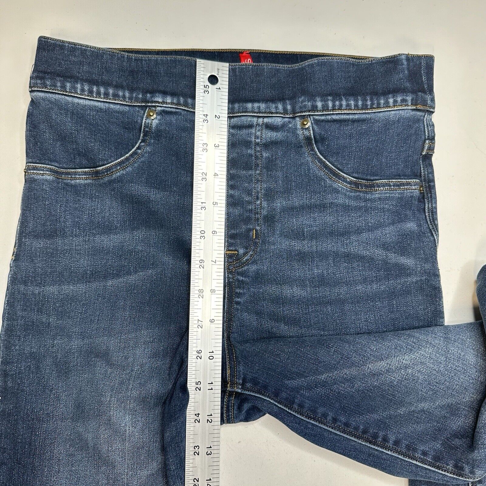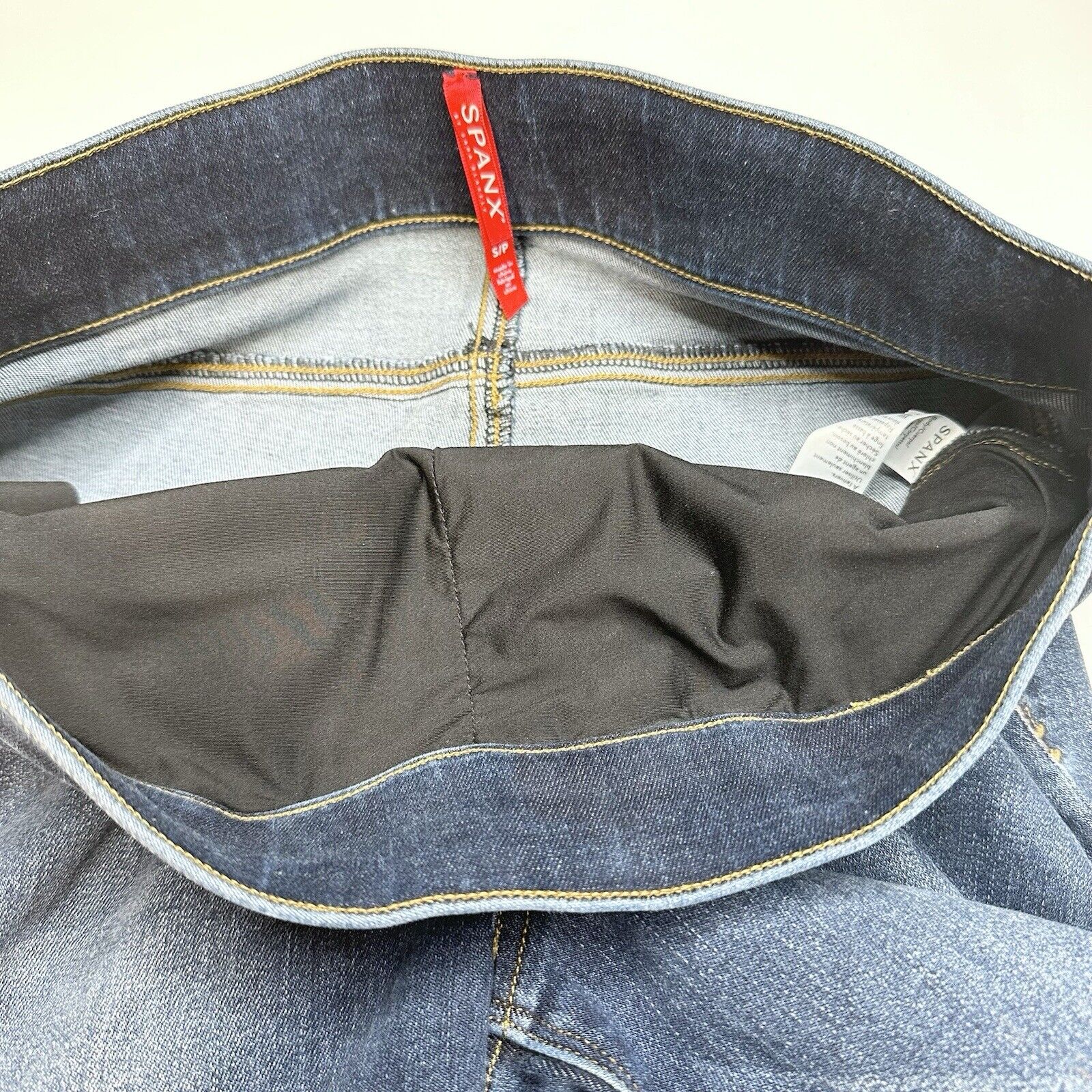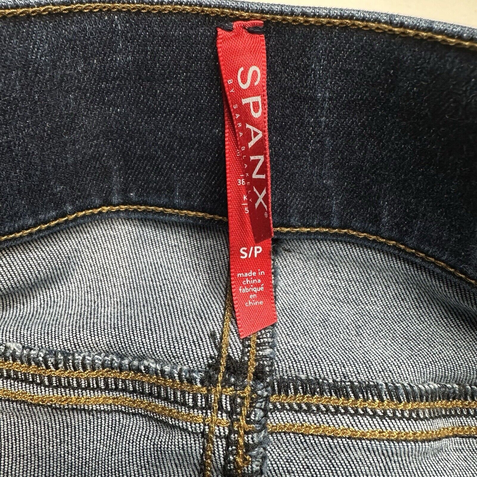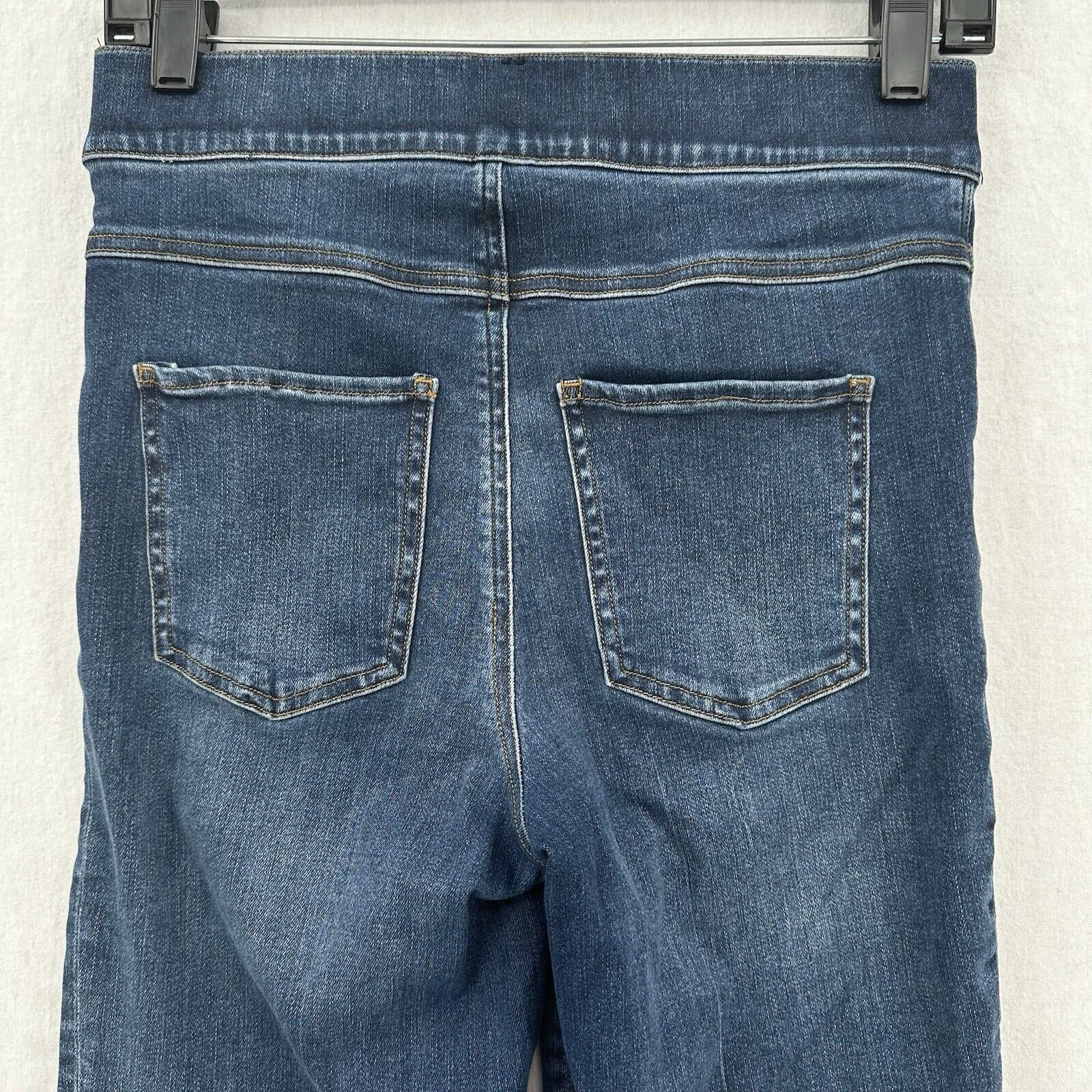 Spanx Cropped Flare Jeans Womens Small Pull On High Rise Stretch Denim Blue Jean Medium Wash Raw Hem Fray EUC