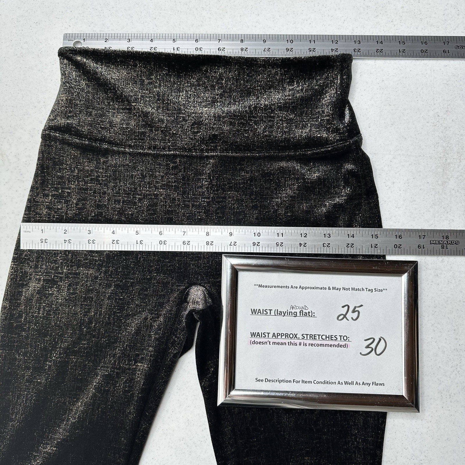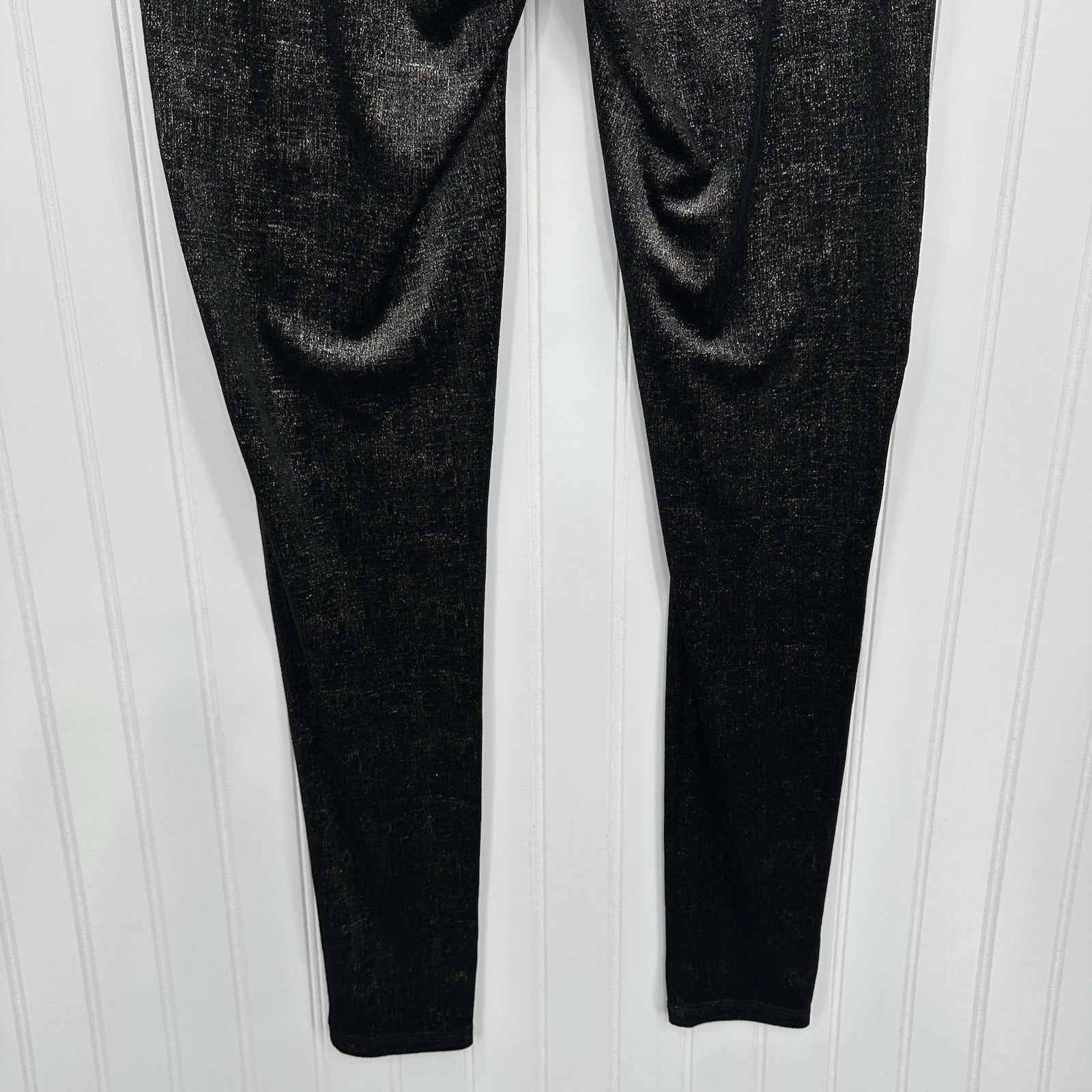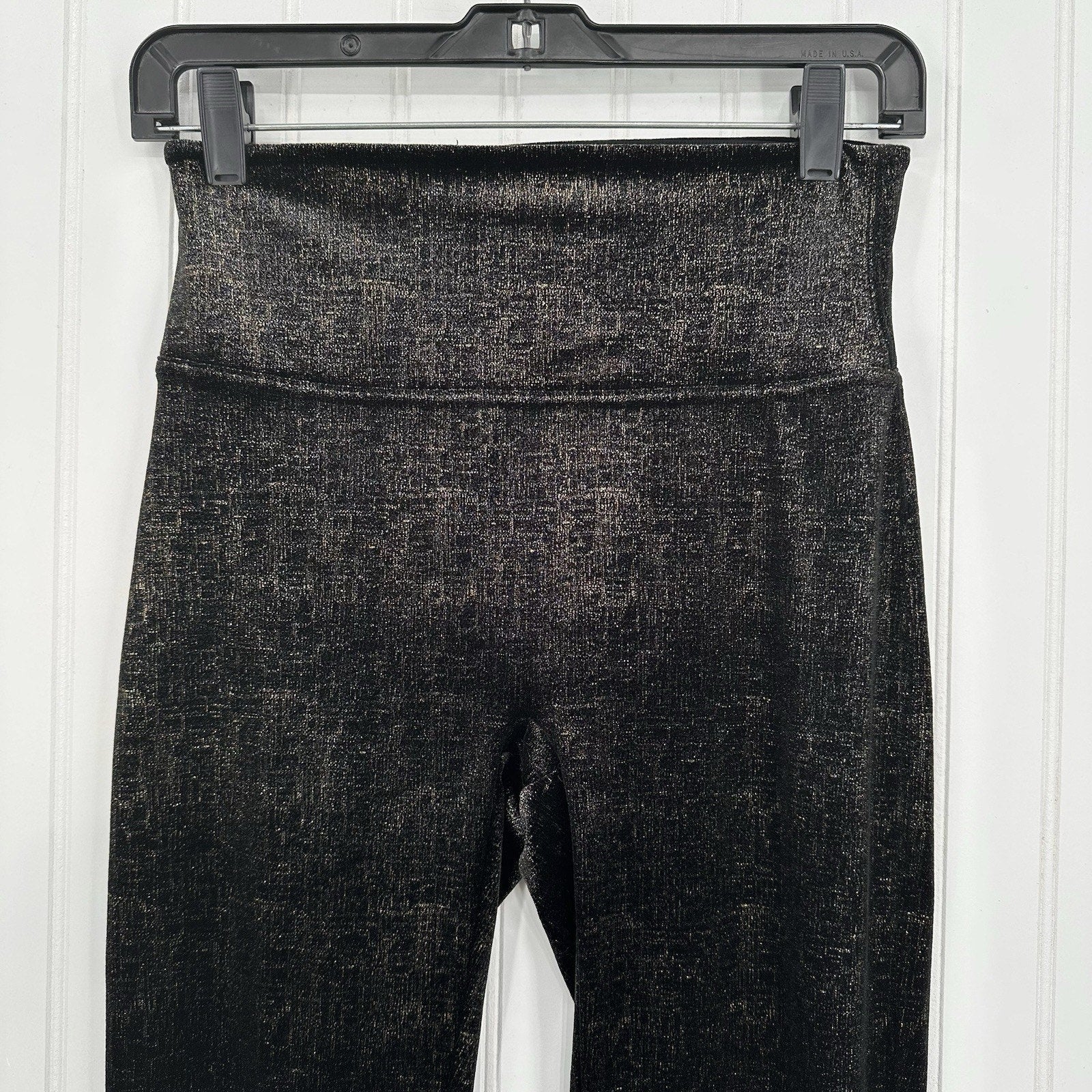 Spanx Leggings Women Velvet Shine Pants Black Gold Metallic Pull On Slimming EUC