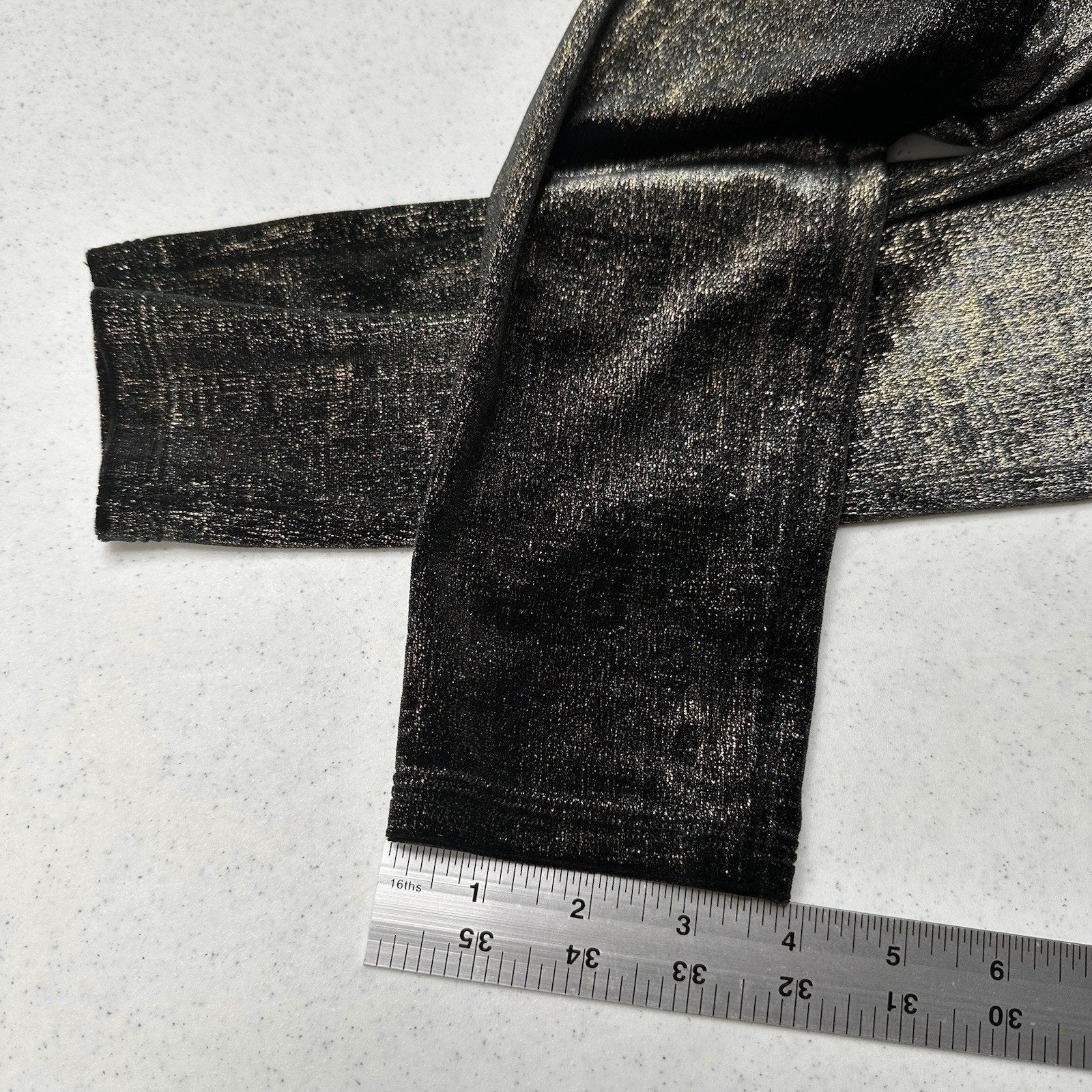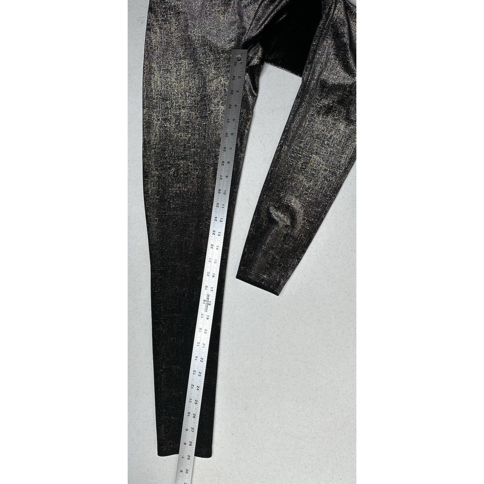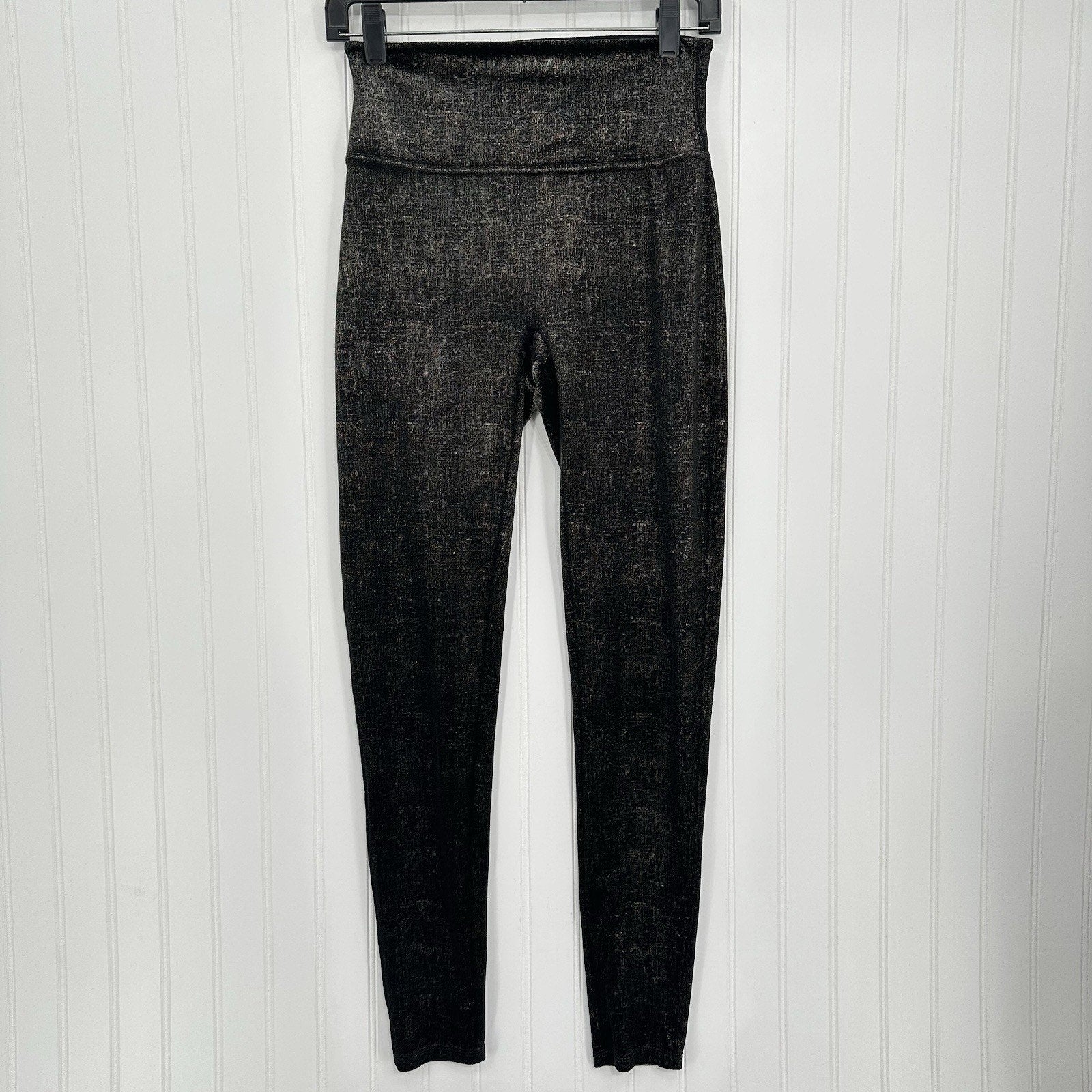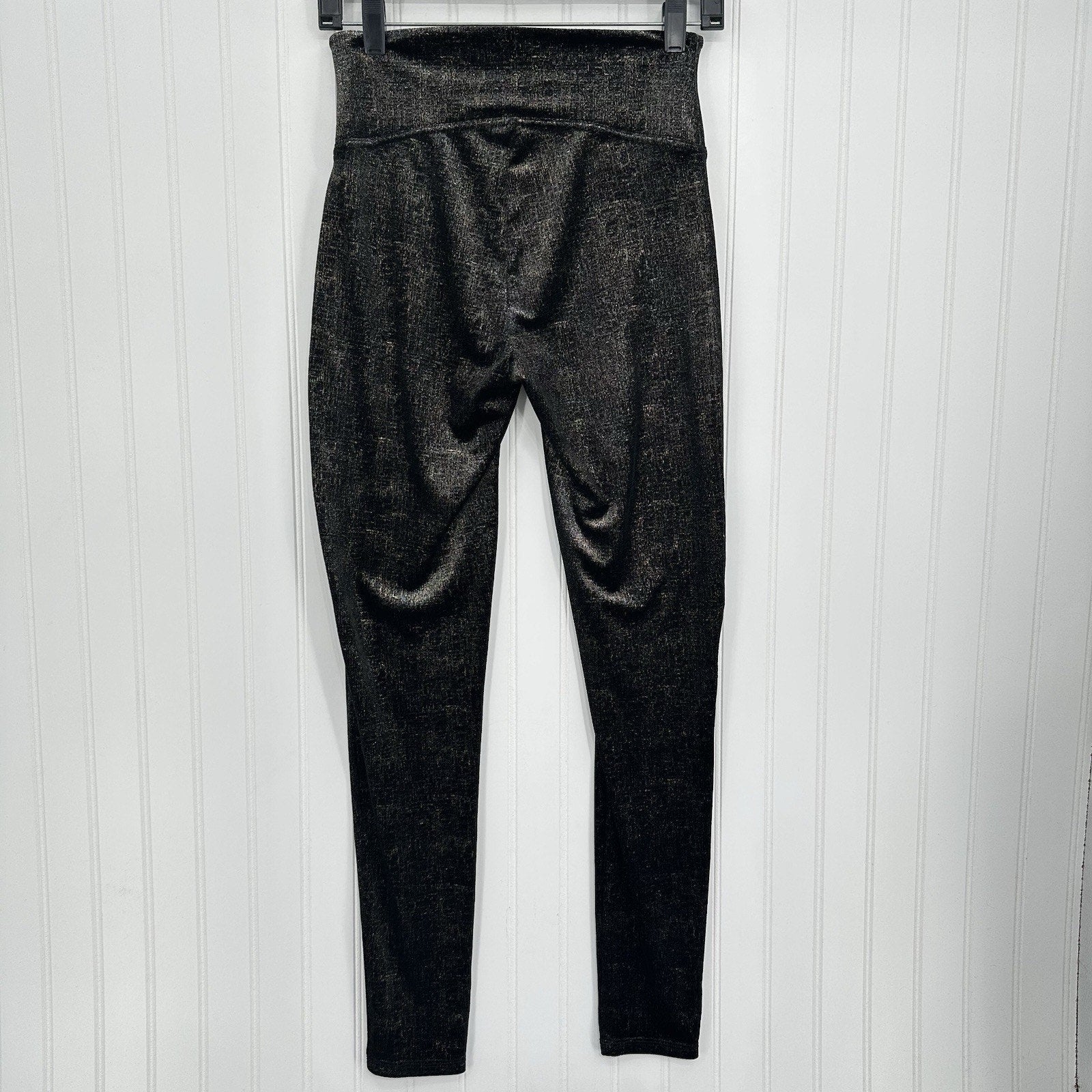 Spanx Leggings Women Velvet Shine Pants Black Gold Metallic Pull On Slimming EUC